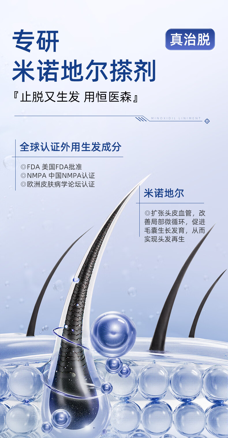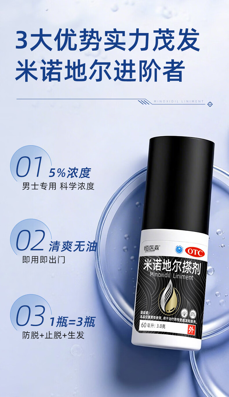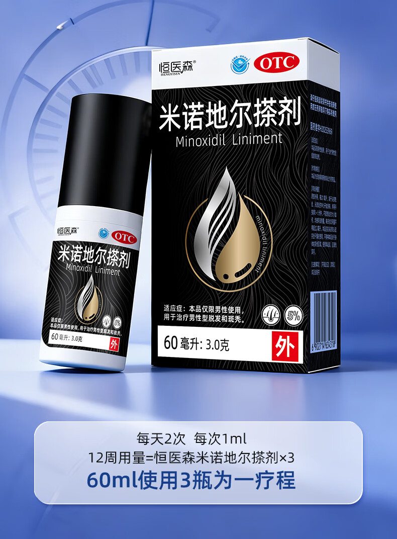 [恒医森]米诺地尔搽剂 60ml*1瓶 2盒装 60ml/瓶 5%浓度男士专用治脱发防脱生发液泡沫育发发际线增长斑秃 清爽不油腻