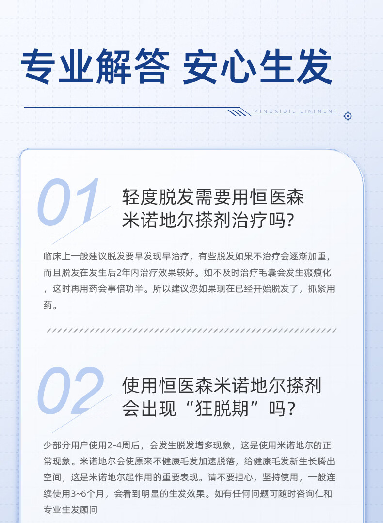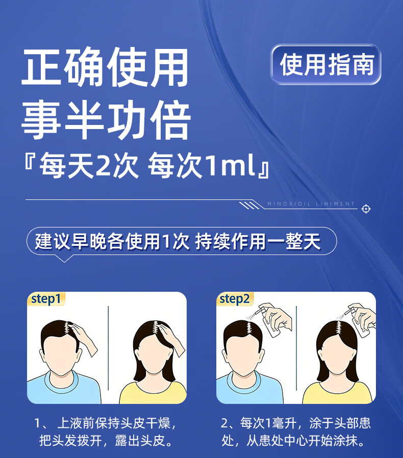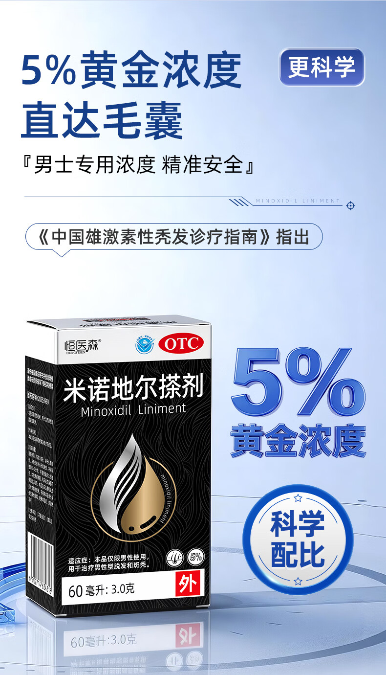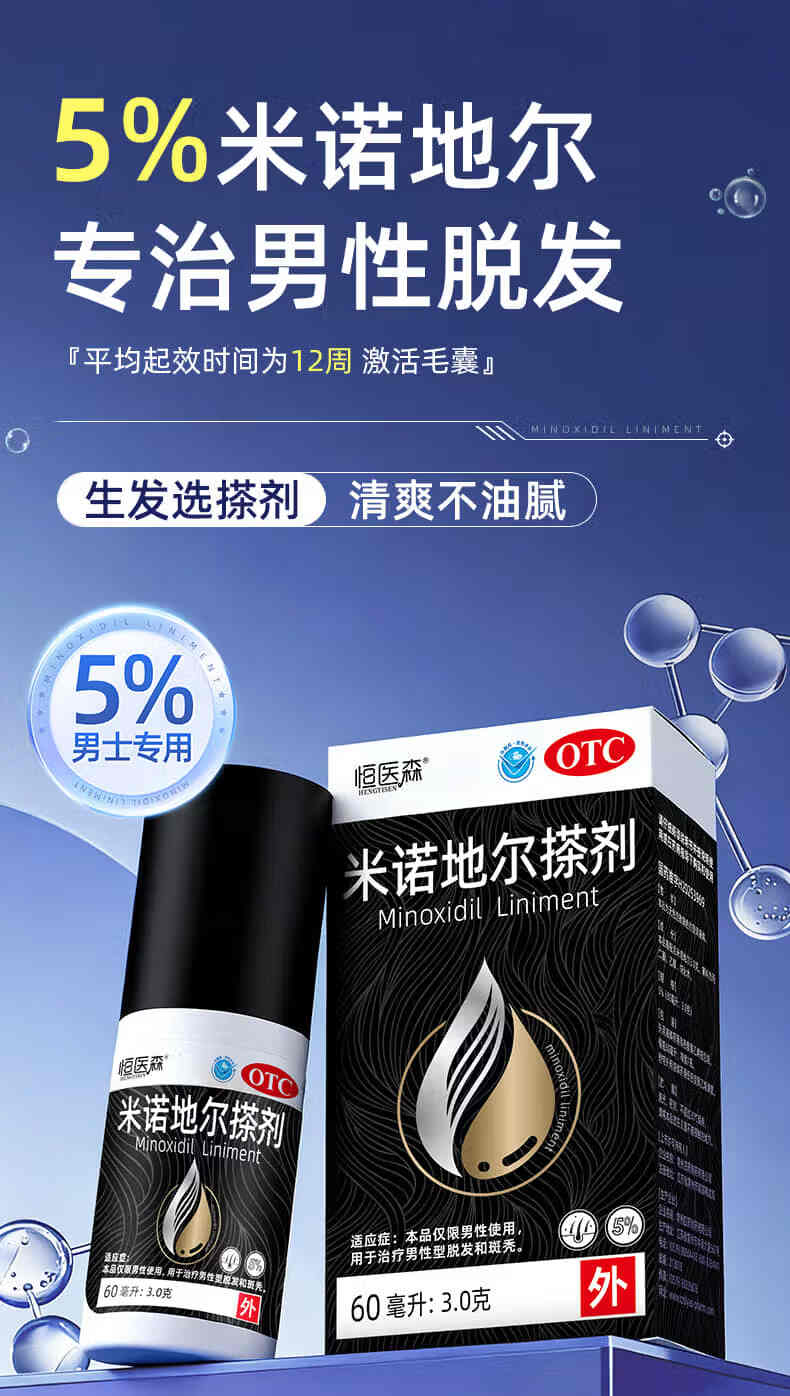 [恒医森]米诺地尔搽剂 60ml*1瓶 2盒装 60ml/瓶 5%浓度男士专用治脱发防脱生发液泡沫育发发际线增长斑秃 清爽不油腻