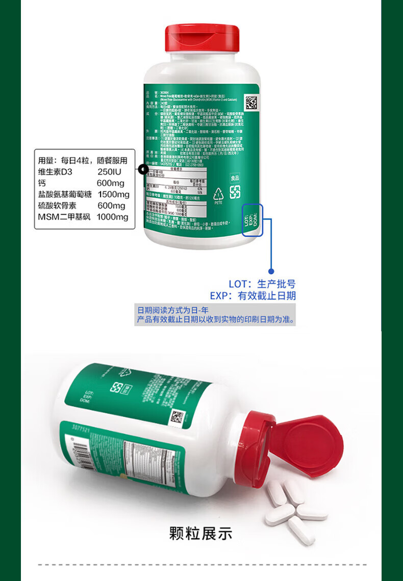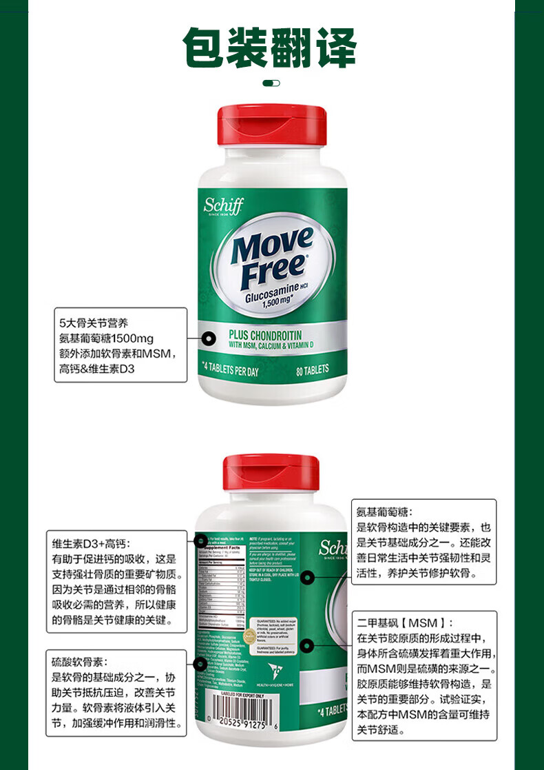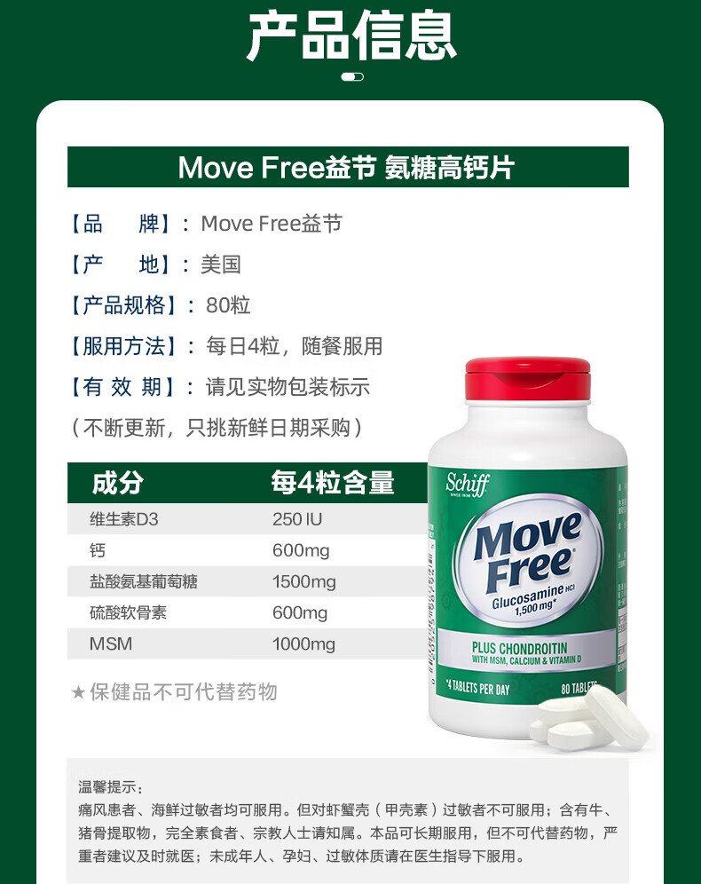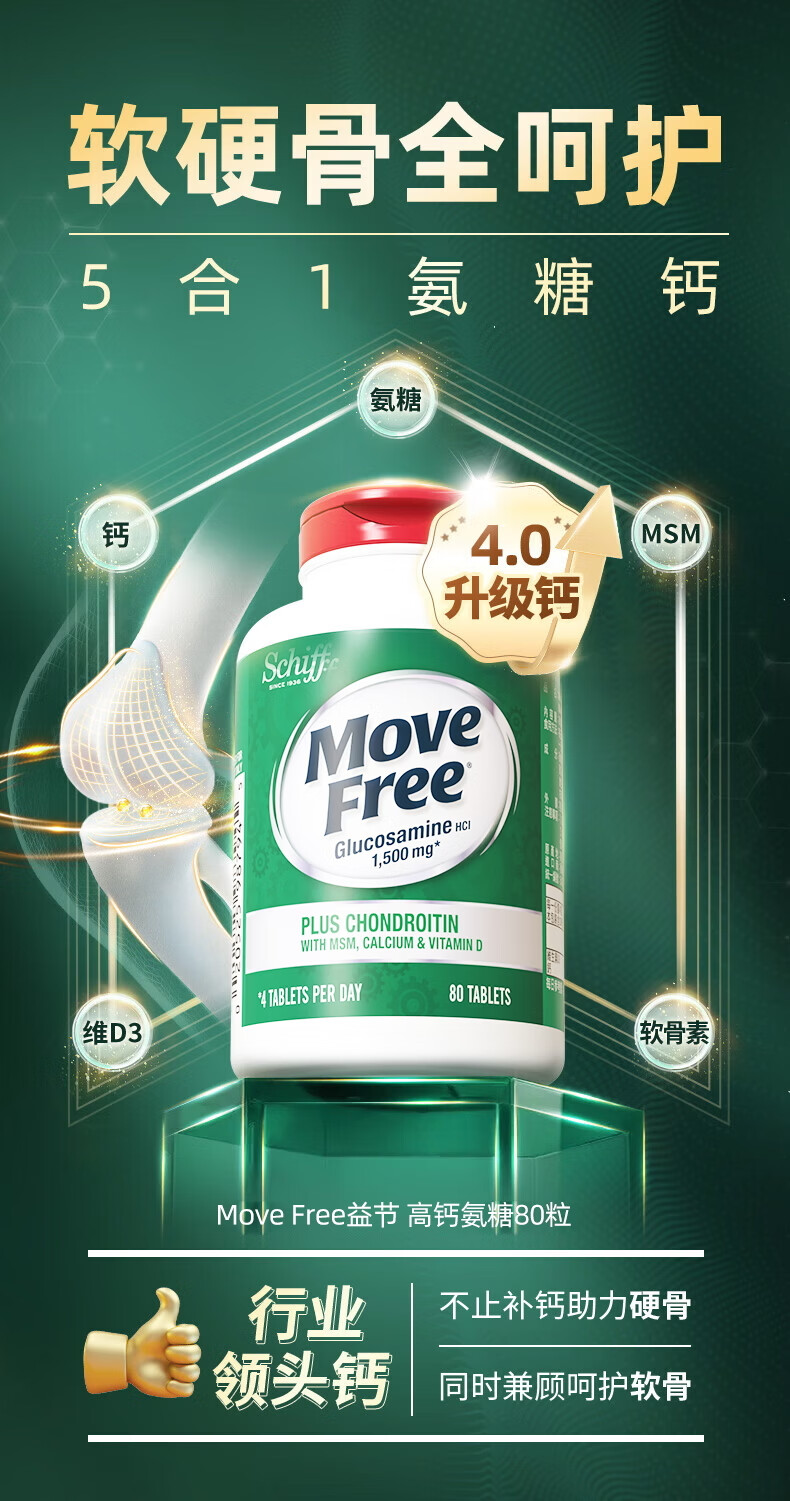 Move Free 益节高钙氨糖软骨素钙片80粒美国原装进口维骨力中老年成人补钙 【320粒】 80粒*4瓶 约3个月量