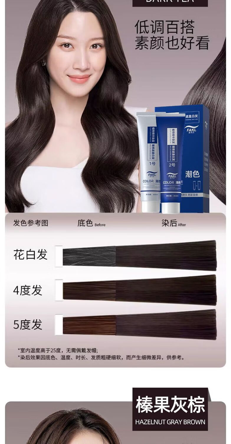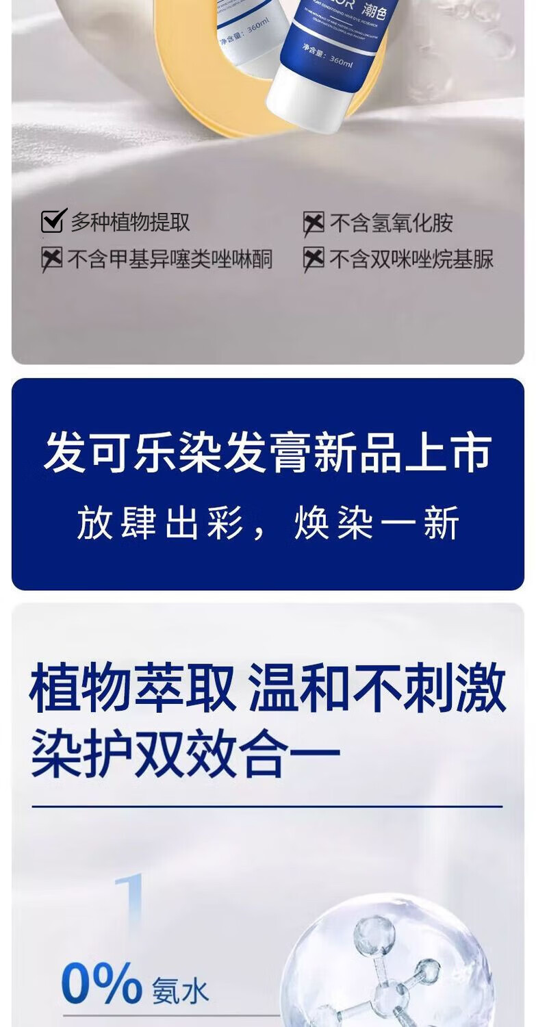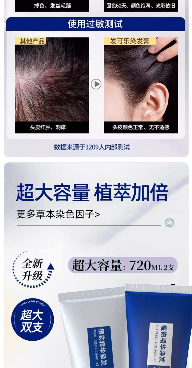 发可乐染发剂-沙龙专供-天然果油植物萃取本草植物染发膏在家轻松盖白发 【大双支】年轻潮流系一点击选择系列 可可米棕【染护合一】健康上色*720ML