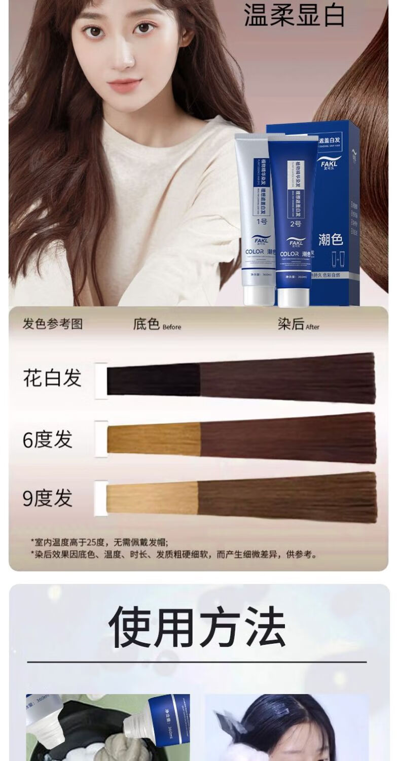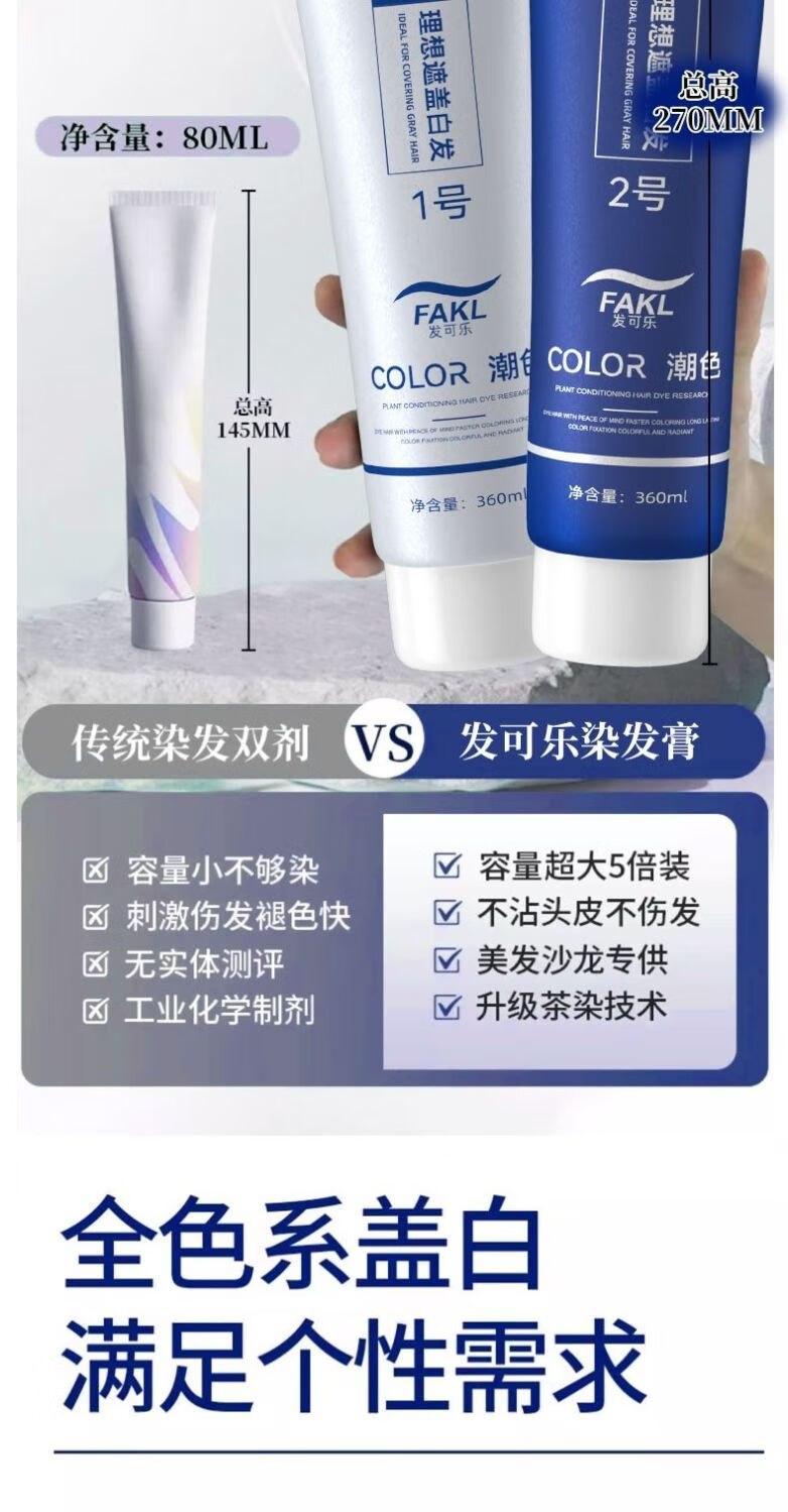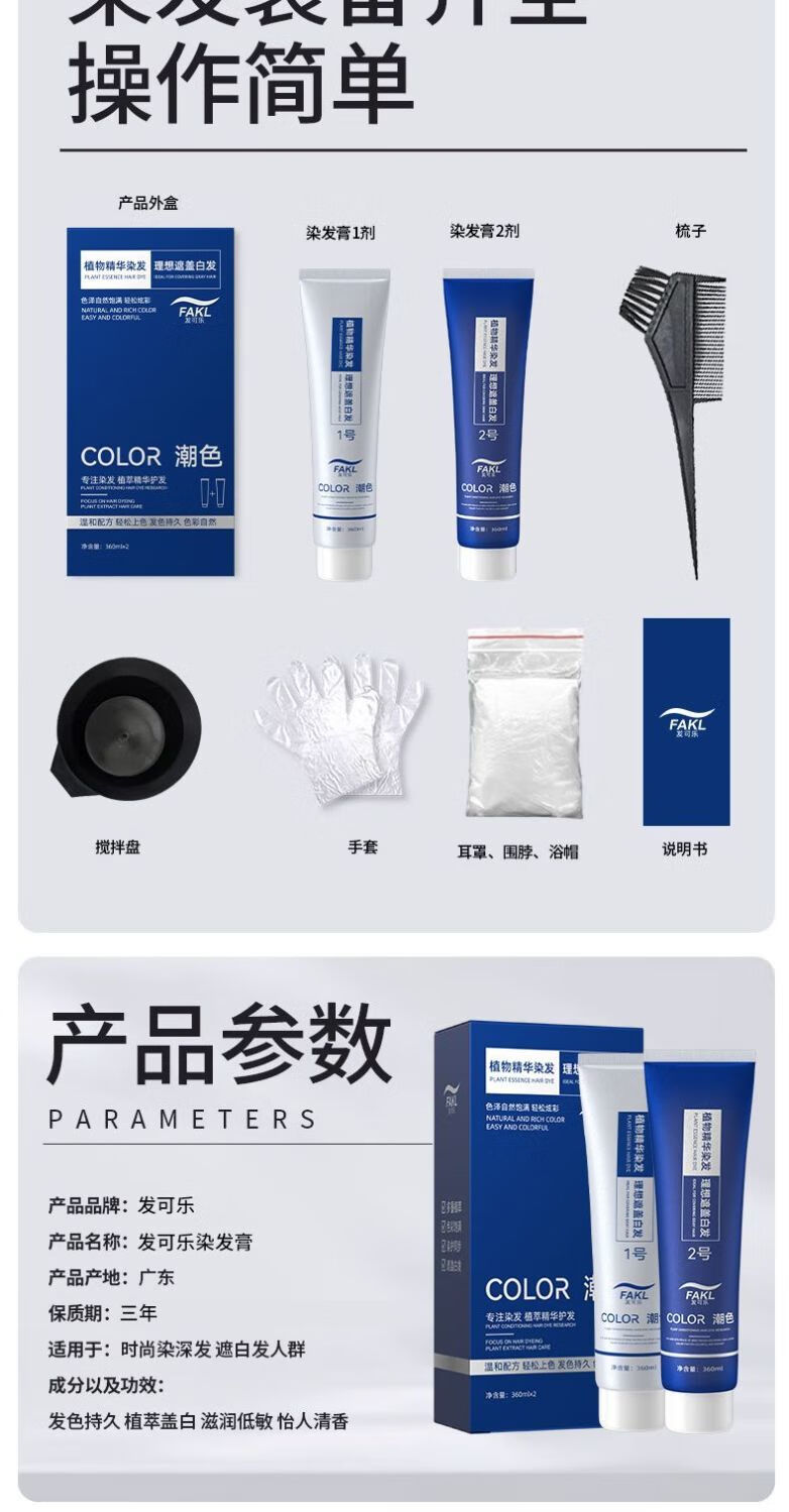 发可乐染发剂-沙龙专供-天然果油植物萃取本草植物染发膏在家轻松盖白发 【大双支】年轻潮流系一点击选择系列 可可米棕【染护合一】健康上色*720ML