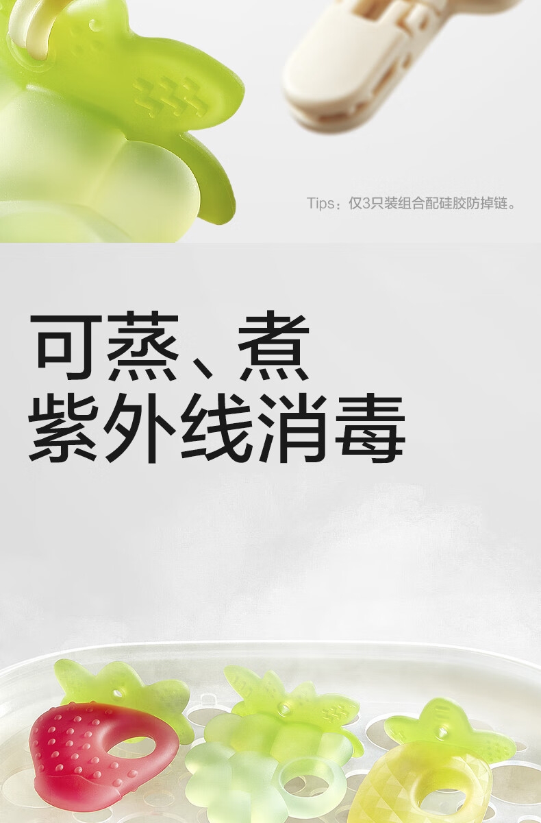 babycare宝宝牙胶磨牙咬咬胶棒婴儿玩具水果安抚牙胶婴儿用品 草莓