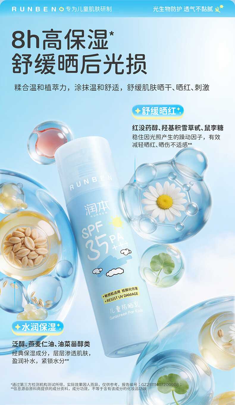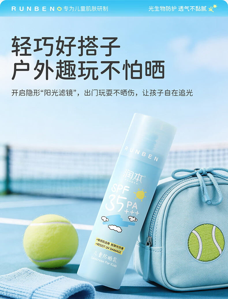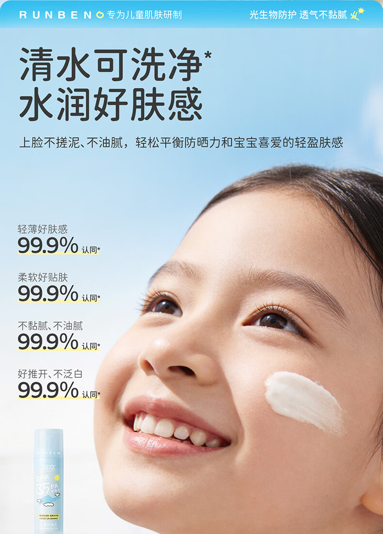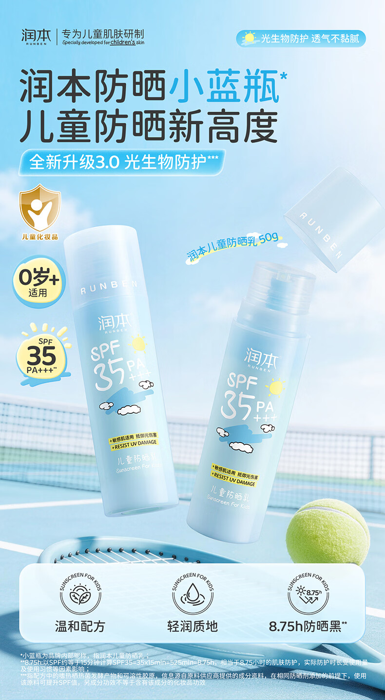 润本儿童防晒乳霜温和轻薄防晒乳50g宝宝隔离霜生物防晒乳液SPF35