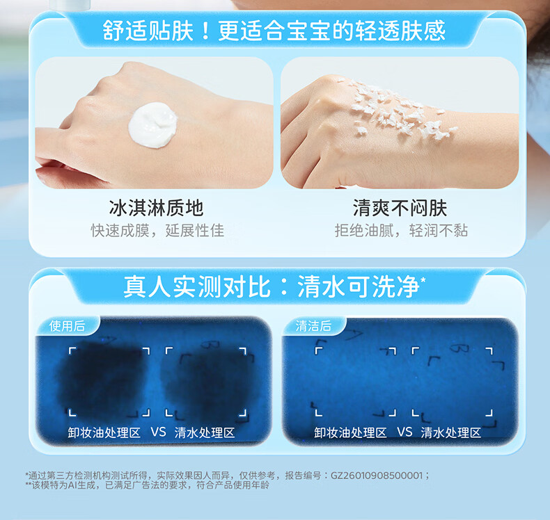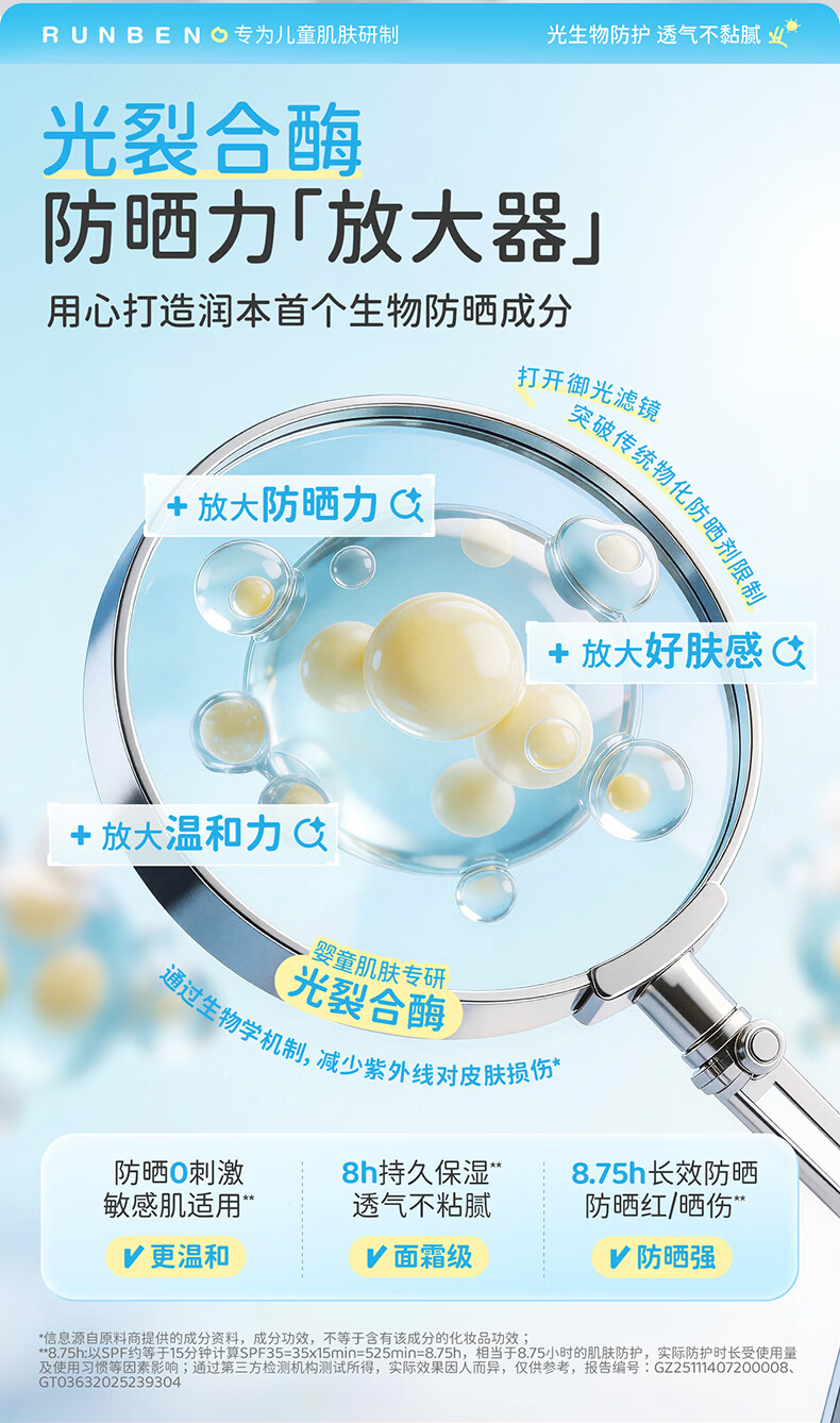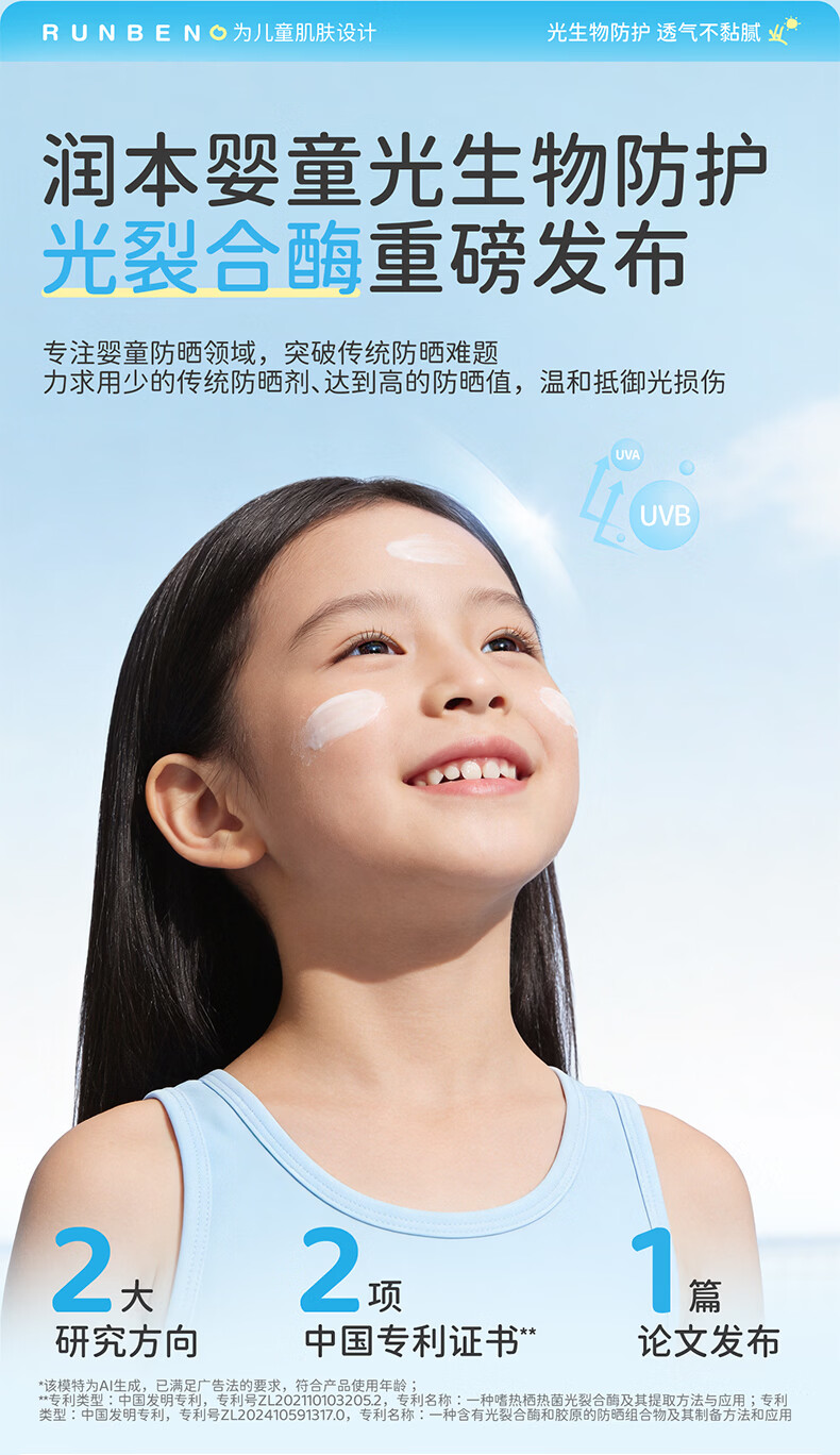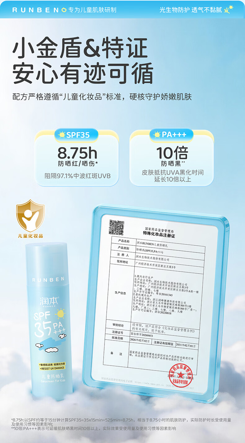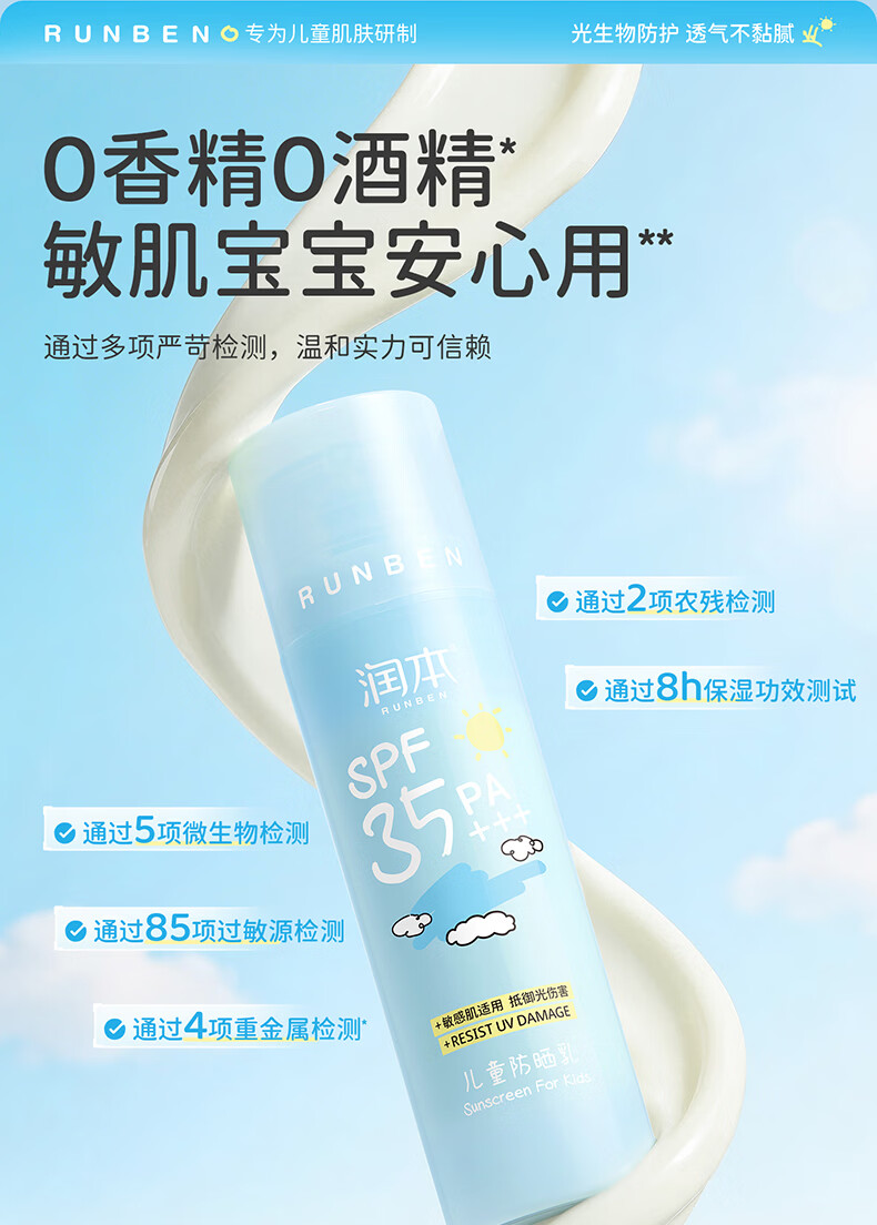 润本儿童防晒乳霜温和轻薄防晒乳50g宝宝隔离霜生物防晒乳液SPF35