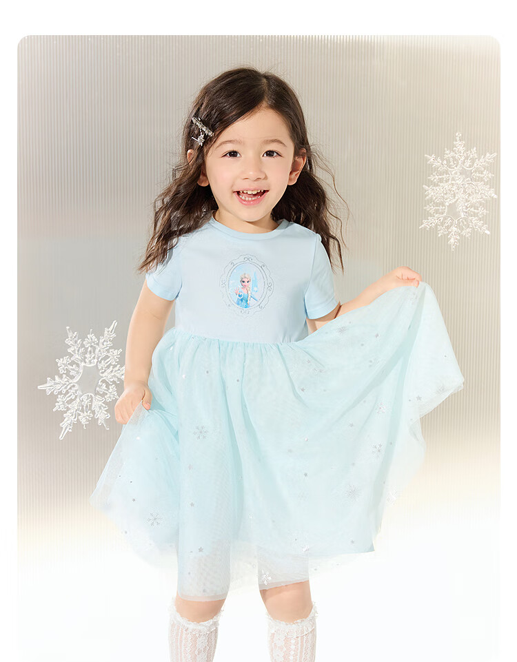 巴拉巴拉童装女童裙子儿童连衣裙爱莎公主裙夏装甜美艾莎网纱裙 蓝色调00388 100