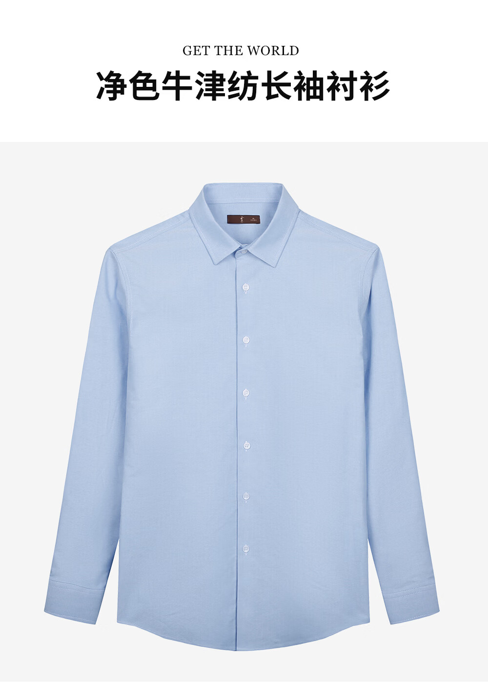才子(TRIES)男士纯色牛津纺衬衫休闲商务两穿高级质感绵柔耐穿长袖衬衣 蓝色 M (165/84A)