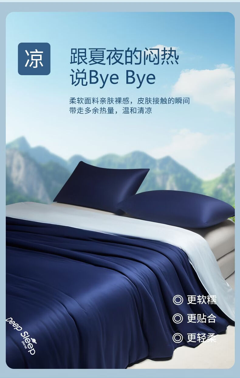 无印良品星球深睡空调被夏季单人夏凉被可机洗裸睡凉感夏被免被套被子薄款 深睡蓝【7A抗菌 双面凉感 亲肤透气】 200*230cm单夏被