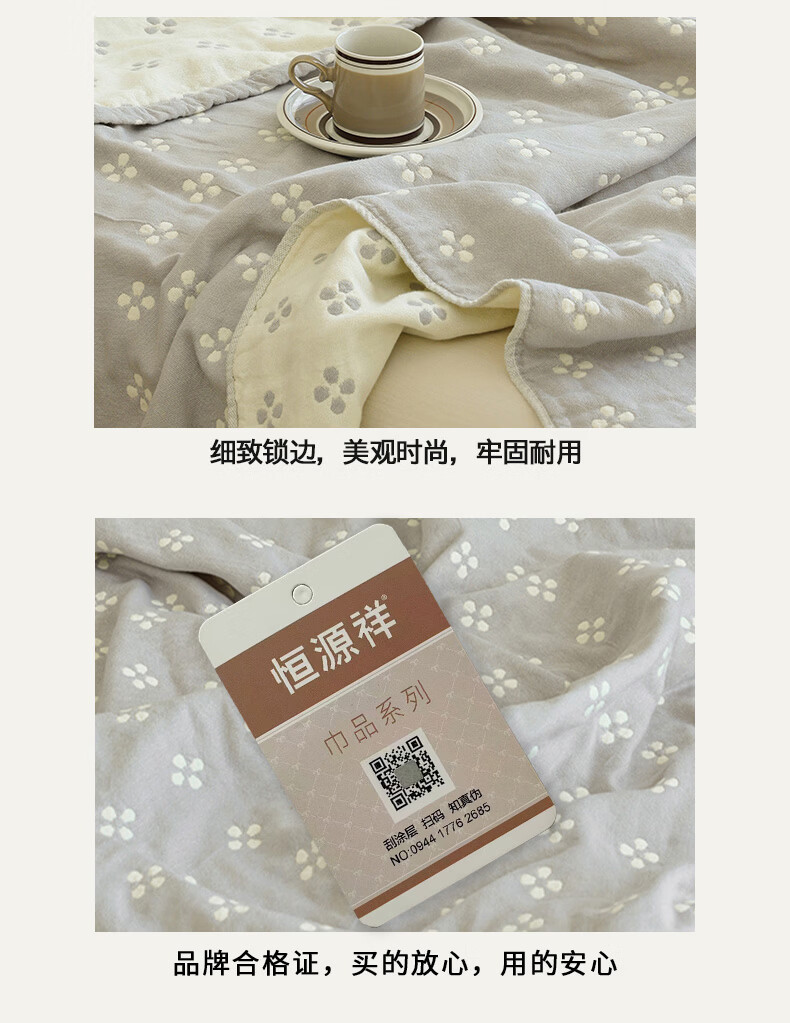 恒源祥毛巾被 A类轻柔全棉纱布简约可机洗夏季办公室披肩学生宿舍毯子 粉【A类全棉】 150cm*200cm