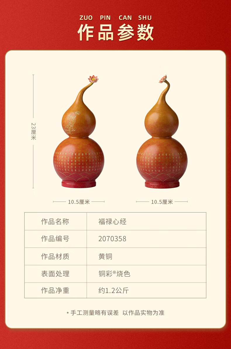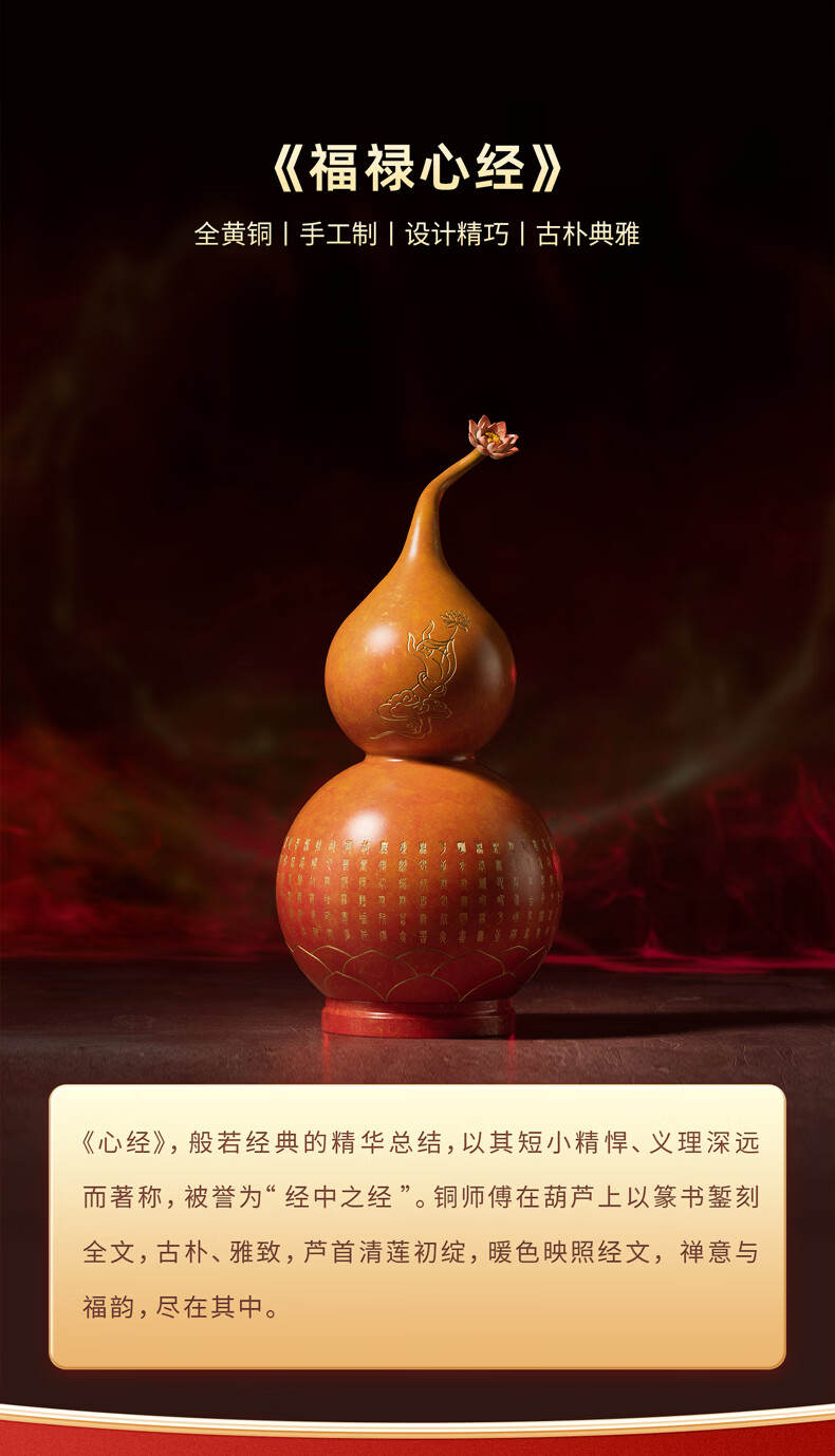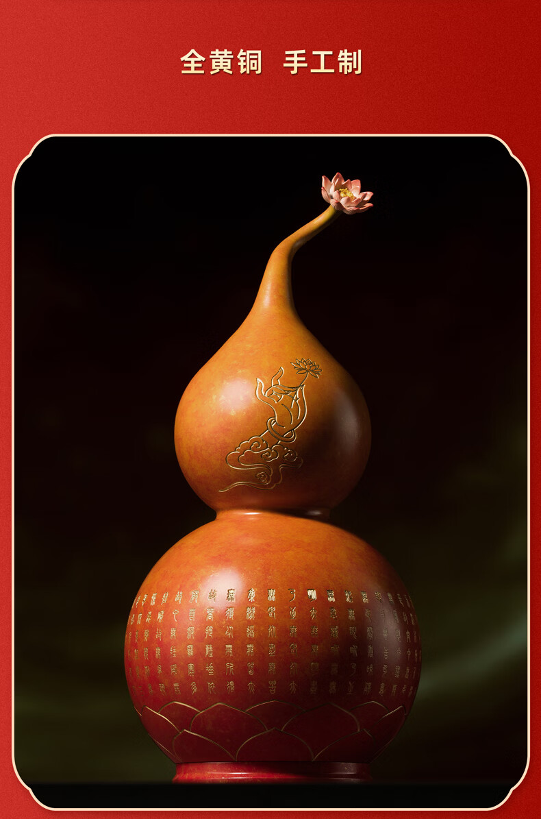 铜师傅《福禄心经》吉祥铜葫芦家居装饰品摆件 乔迁新居礼物