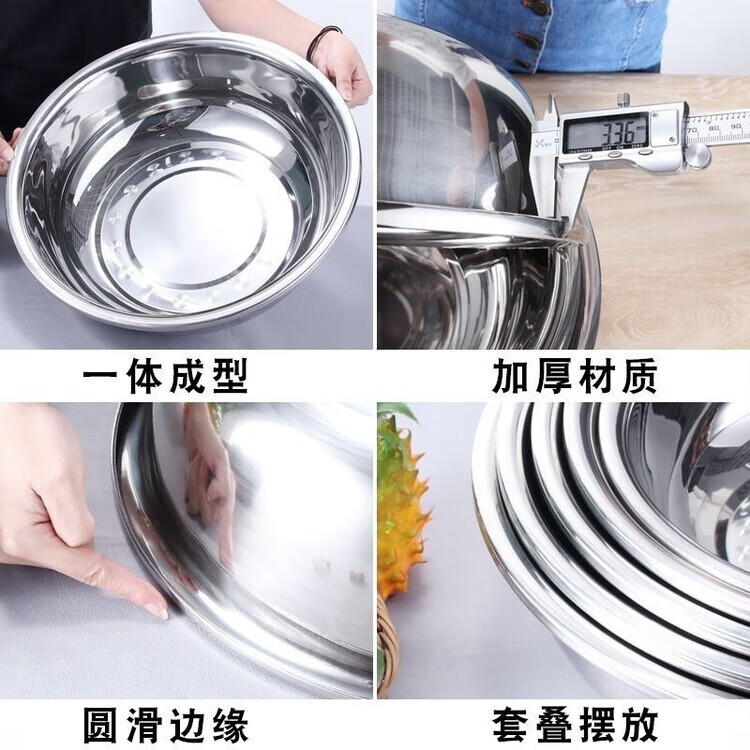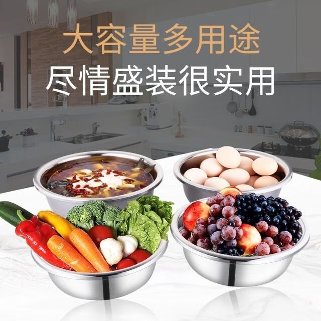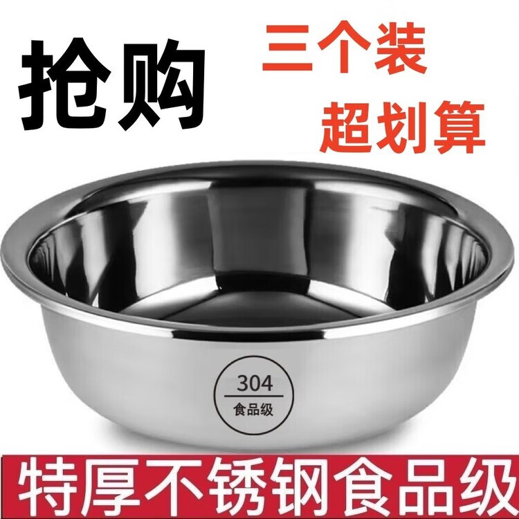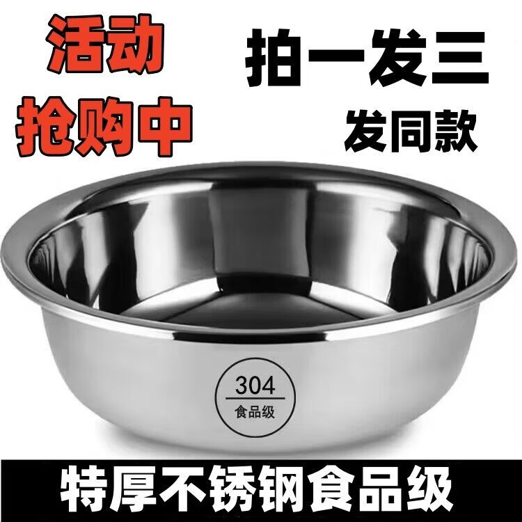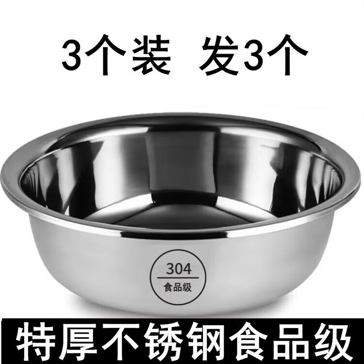 LZJV304不锈钢圆形大盆洗菜盆家商用特大面盆大号洗脚洗脸盆水煮鱼盆 食品级 29cm外径买1发3