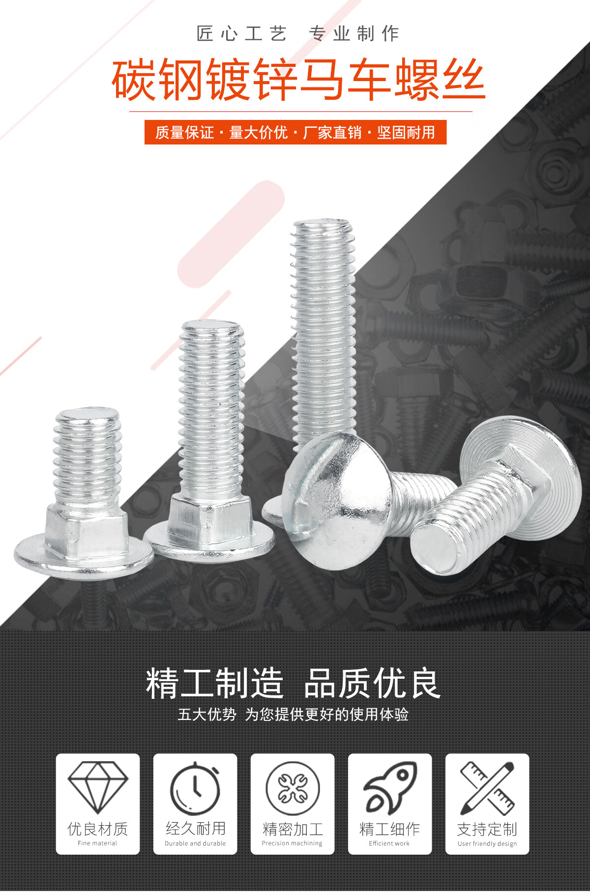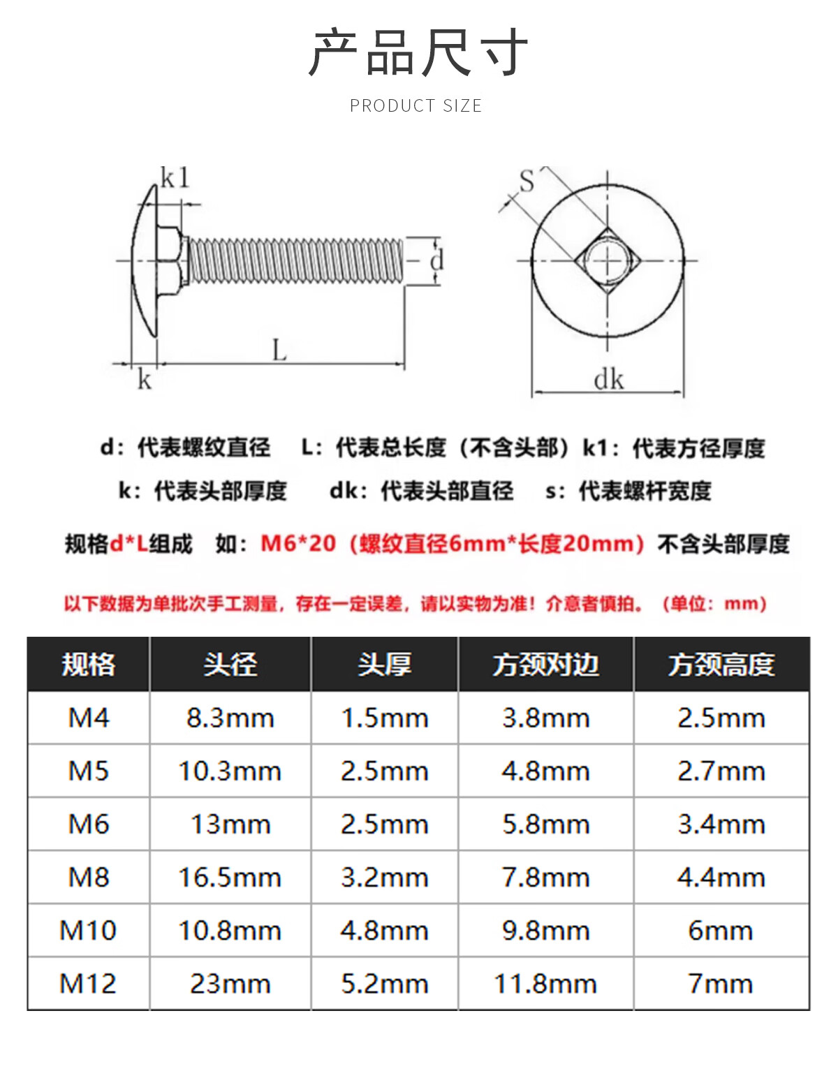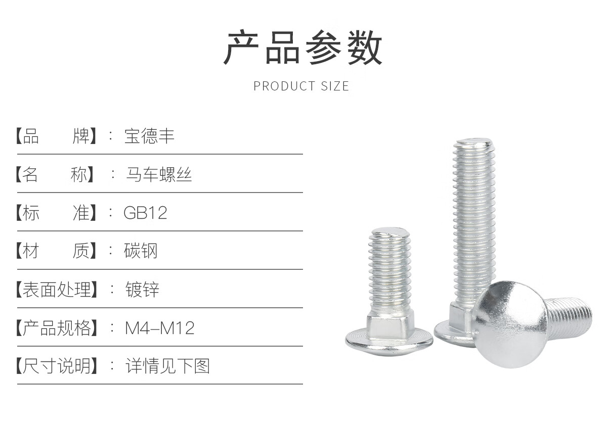 宝德丰镀锌马车螺丝大扁头半圆头桥架货架螺栓四方颈螺钉M4M5M6M8M10M12 M4x8(200只)