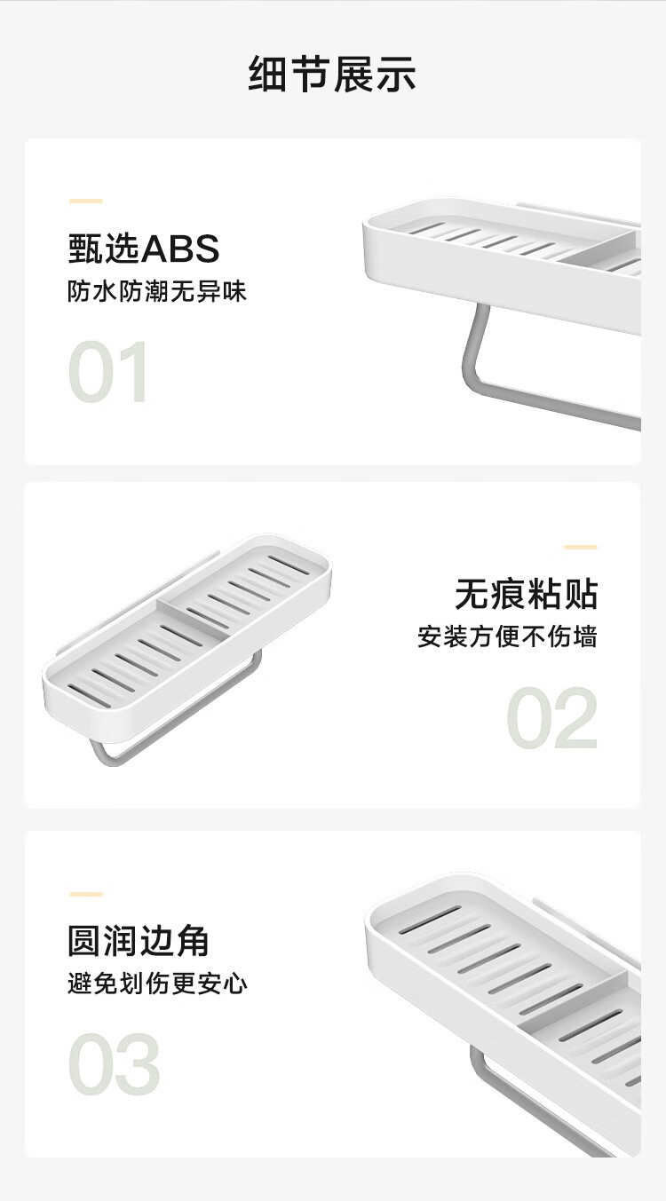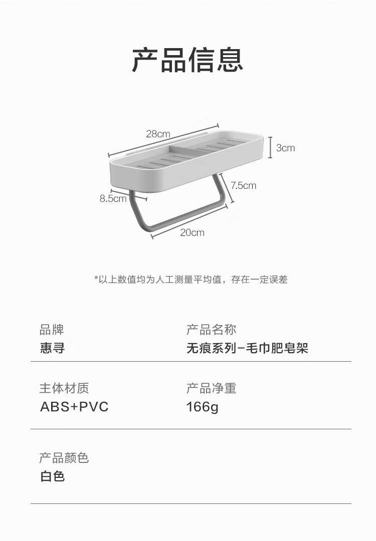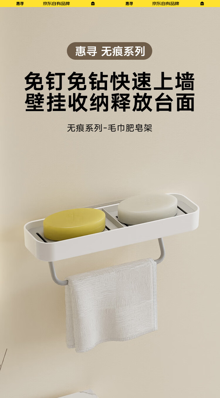 惠寻 免打孔肥皂盒 卫生间浴室洗手间毛巾置物架壁挂沥水香皂收纳盒