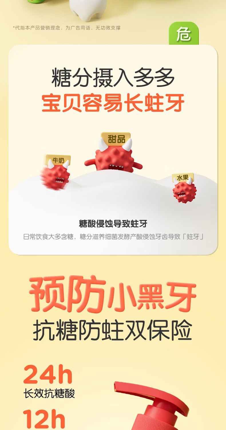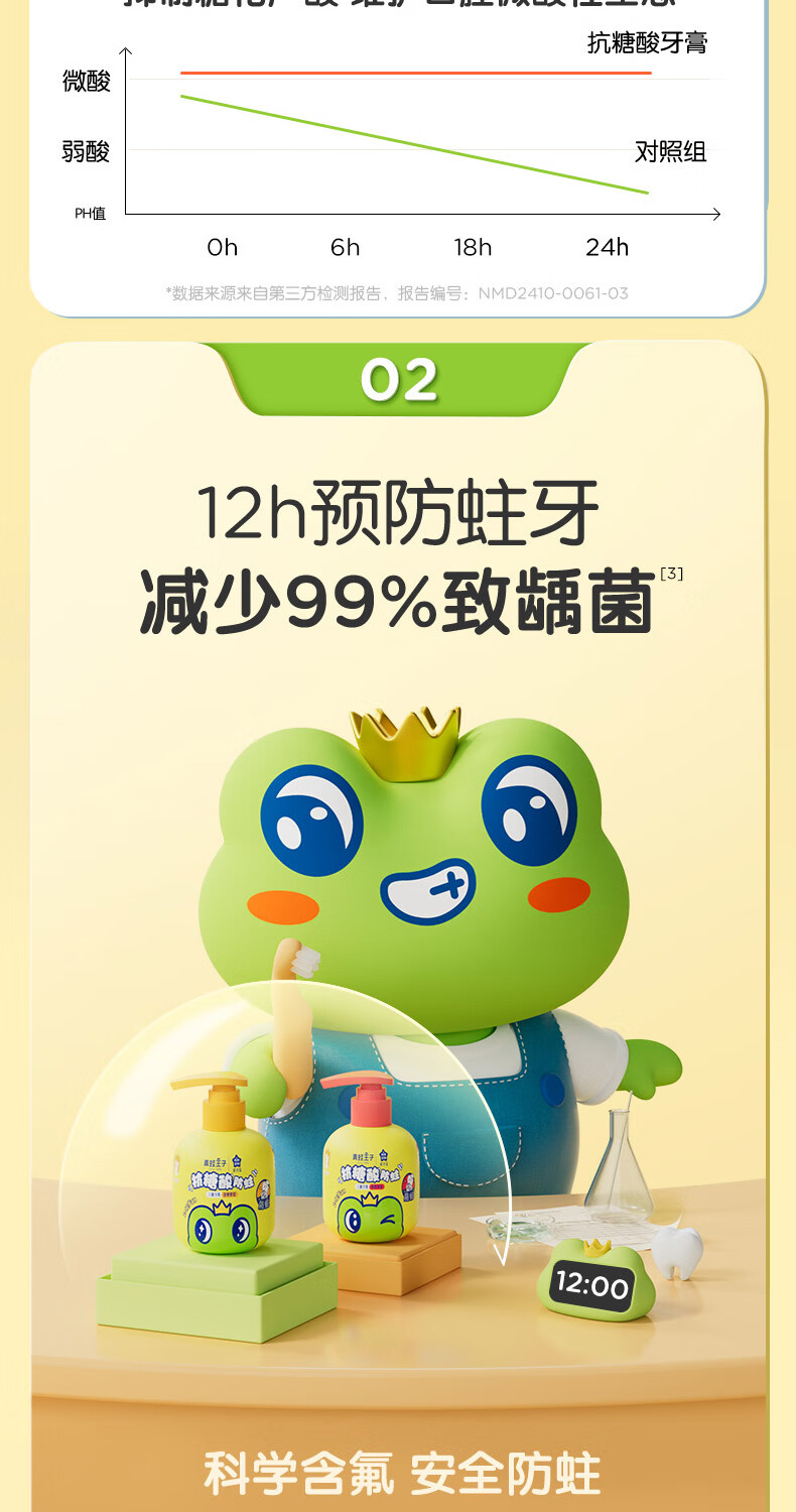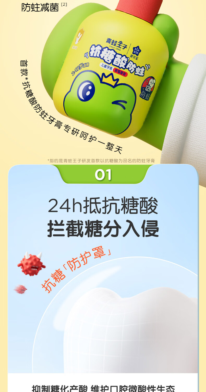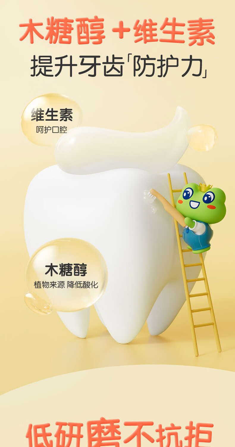 青蛙王子儿童牙膏按压式3-6-12岁 含氟防蛀抗糖酸 宝宝牙膏 草莓+香橙300g