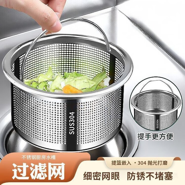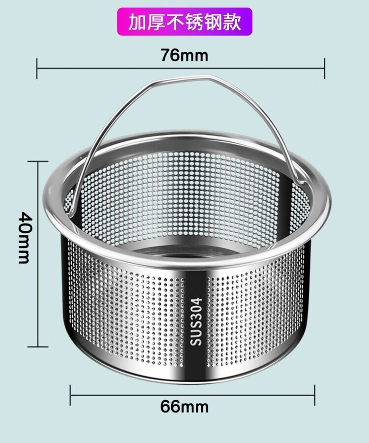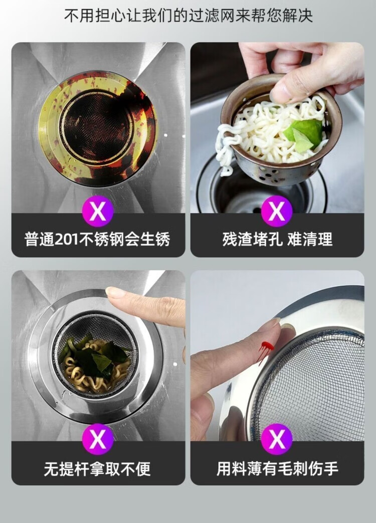GIOIO沥水篮304不锈钢过滤网洗碗池漏网家用厨房水槽网漏防下水道残渣 【特厚304比201还要好丨生锈包退】 1个装【特厚】洗碗池水槽