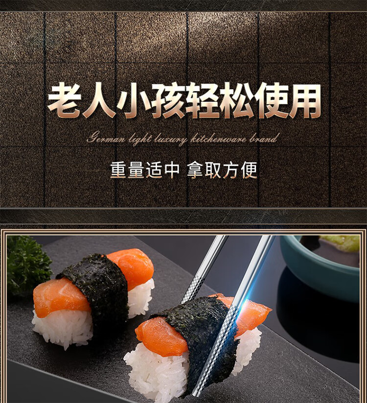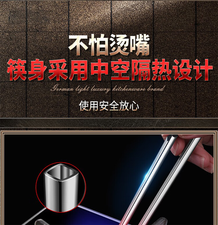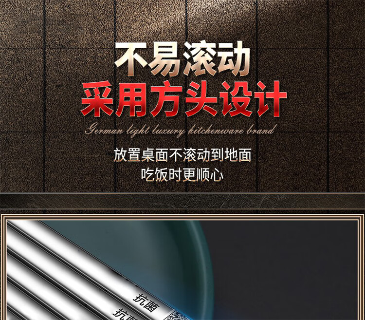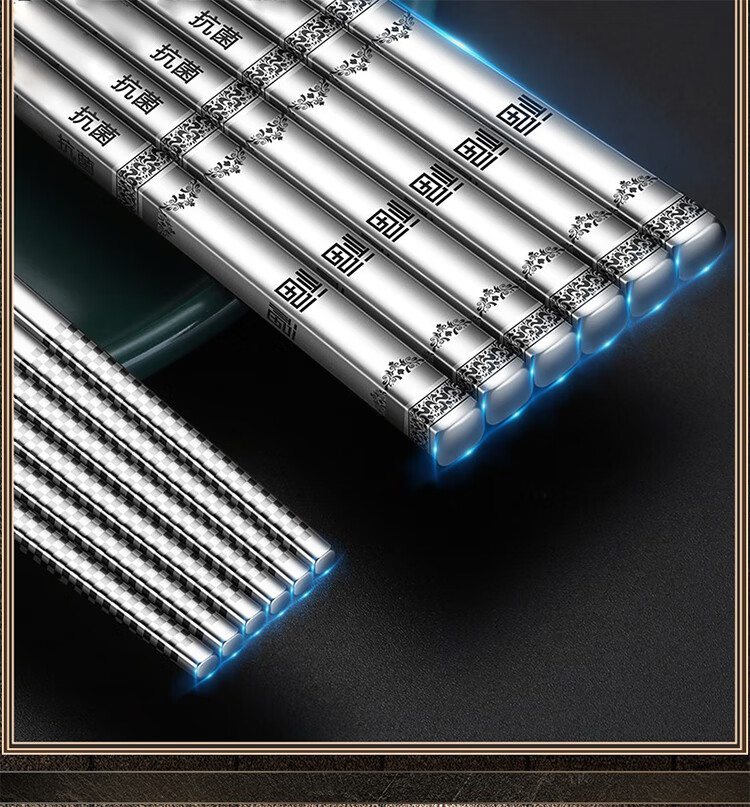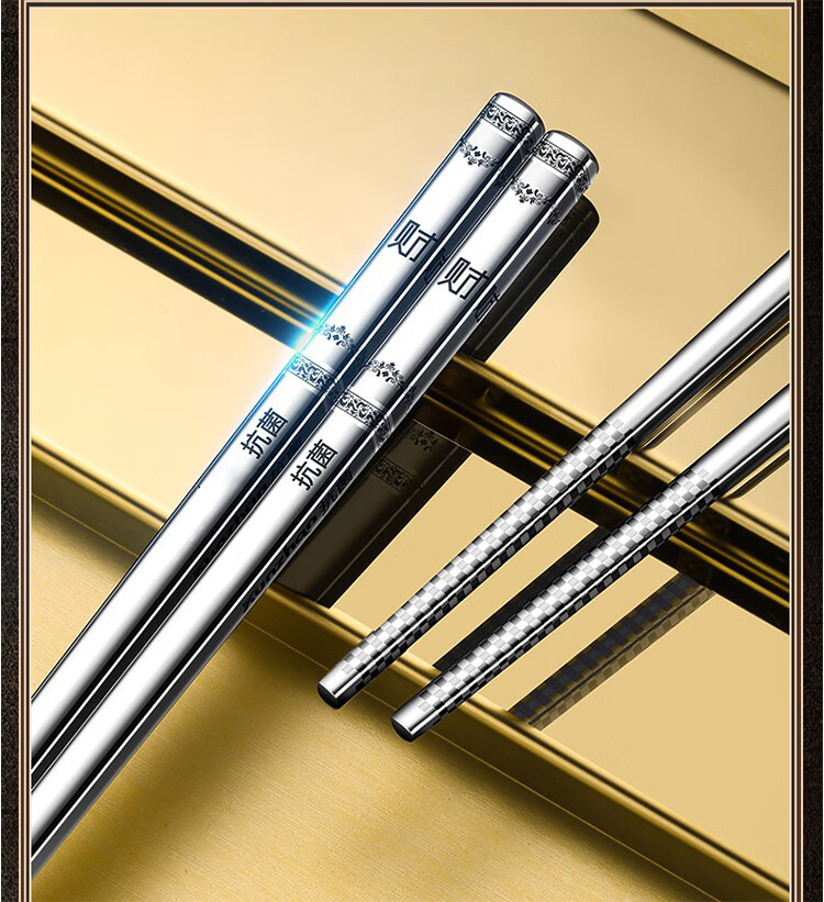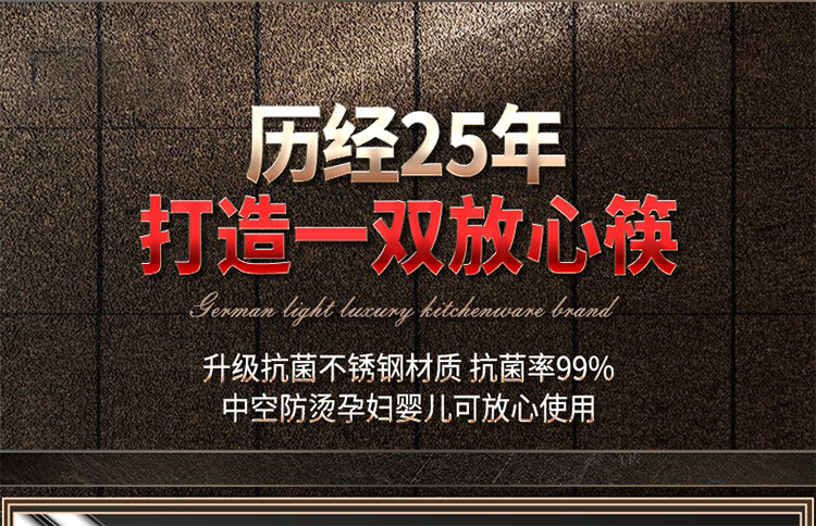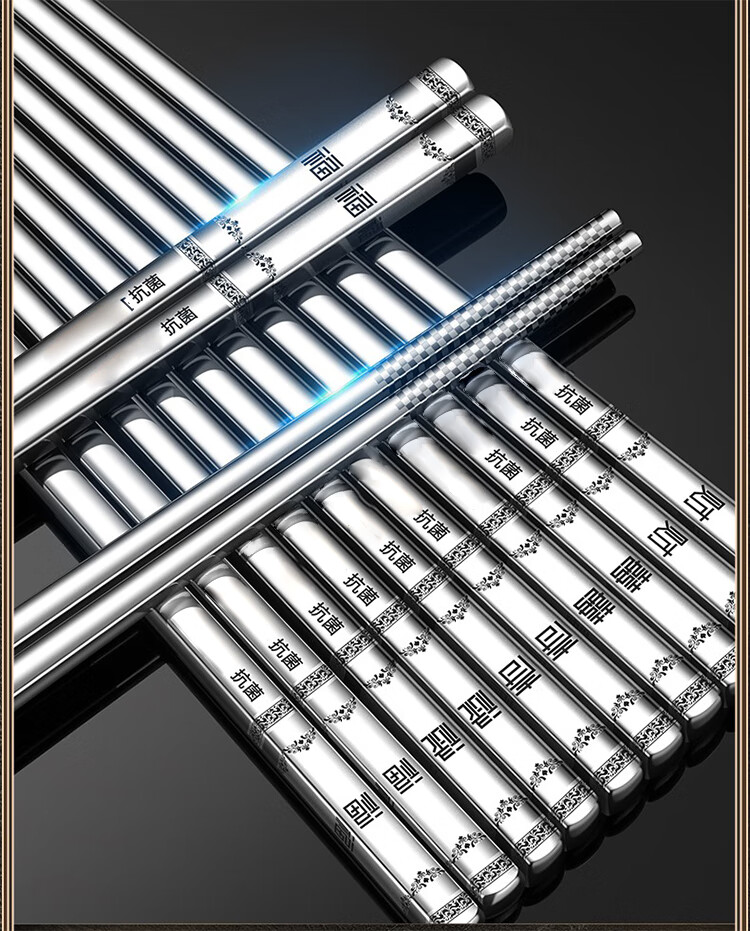 筏芯【德国】抗菌不锈钢筷子家用防滑316食品级防霉高档304筷子新款 【抗菌专利不锈钢】5双装-福星高照款(5个花色各1双)