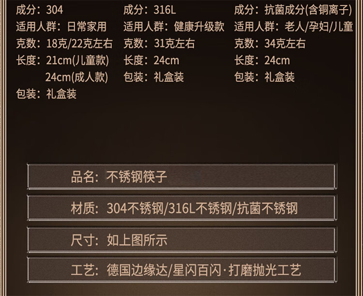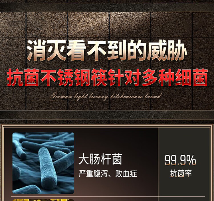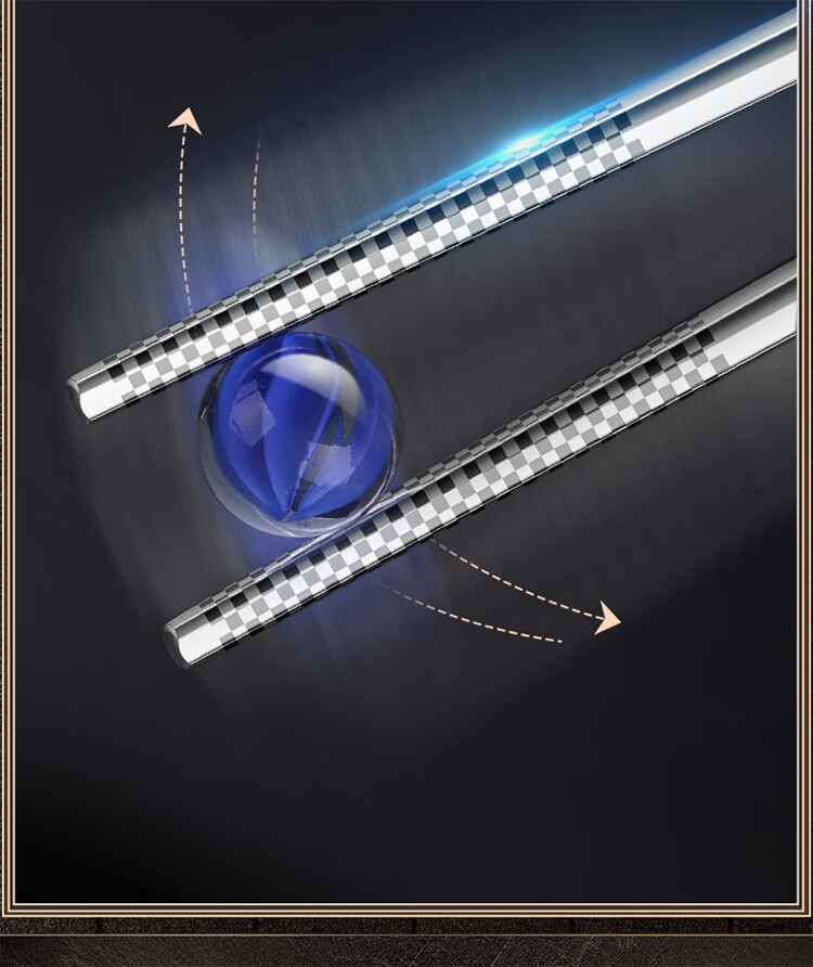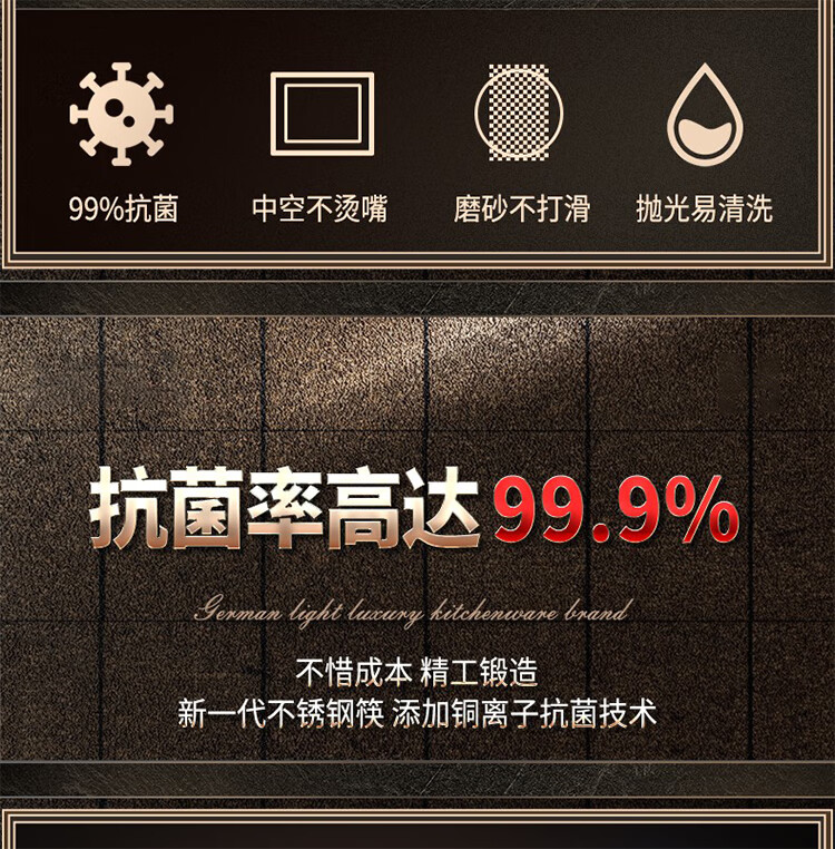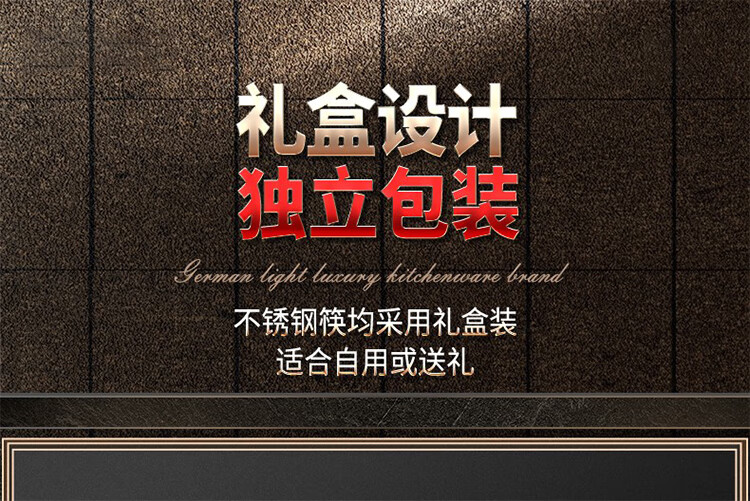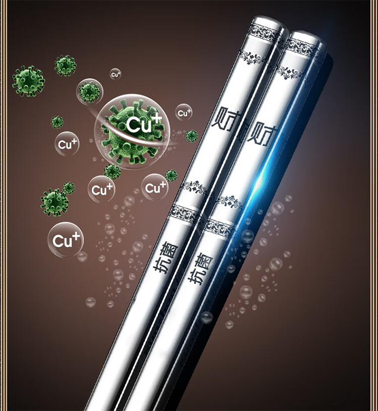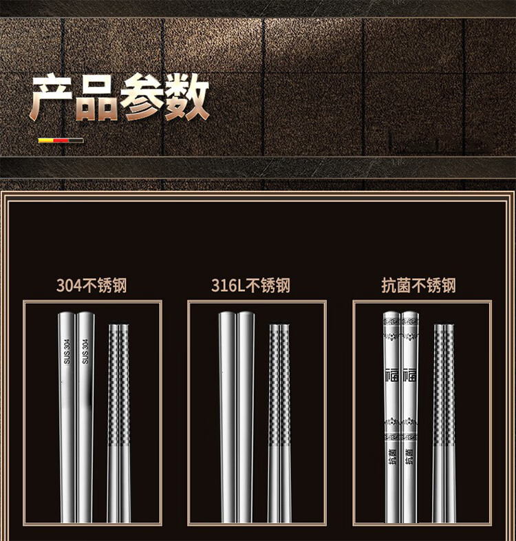 筏芯【德国】抗菌不锈钢筷子家用防滑316食品级防霉高档304筷子新款 【抗菌专利不锈钢】5双装-福星高照款(5个花色各1双)