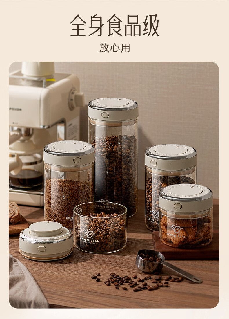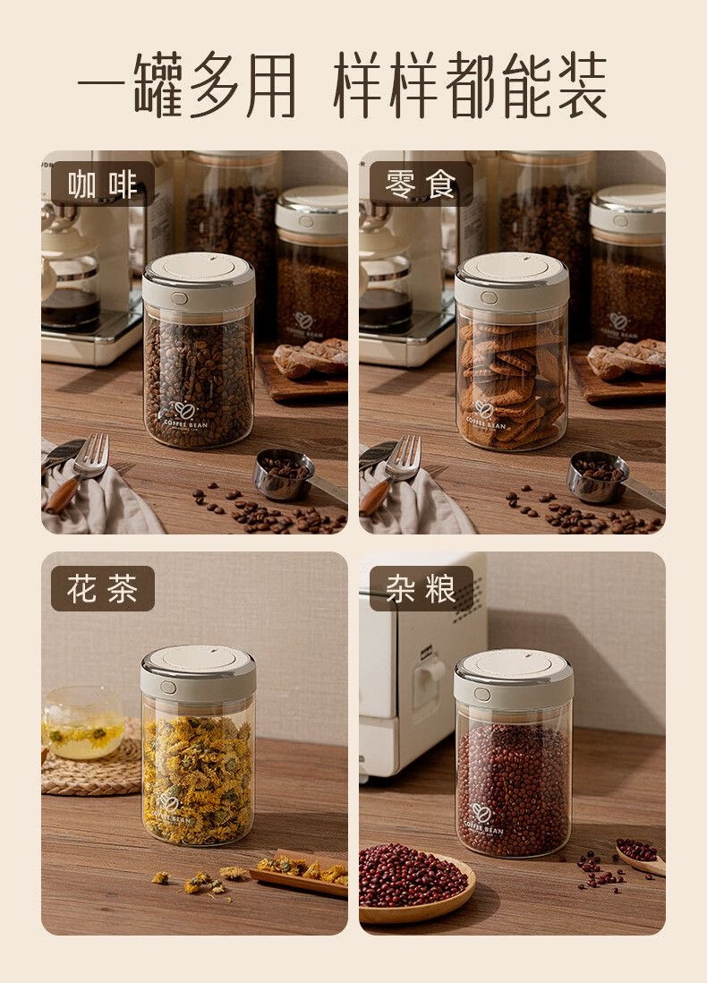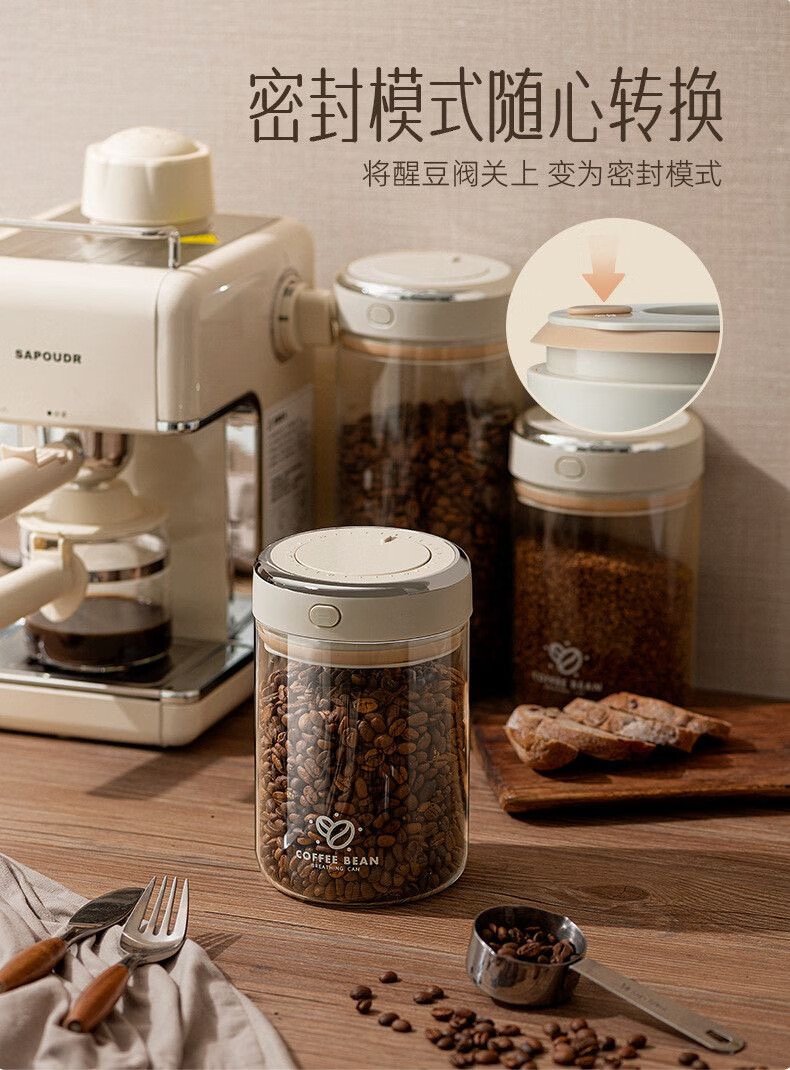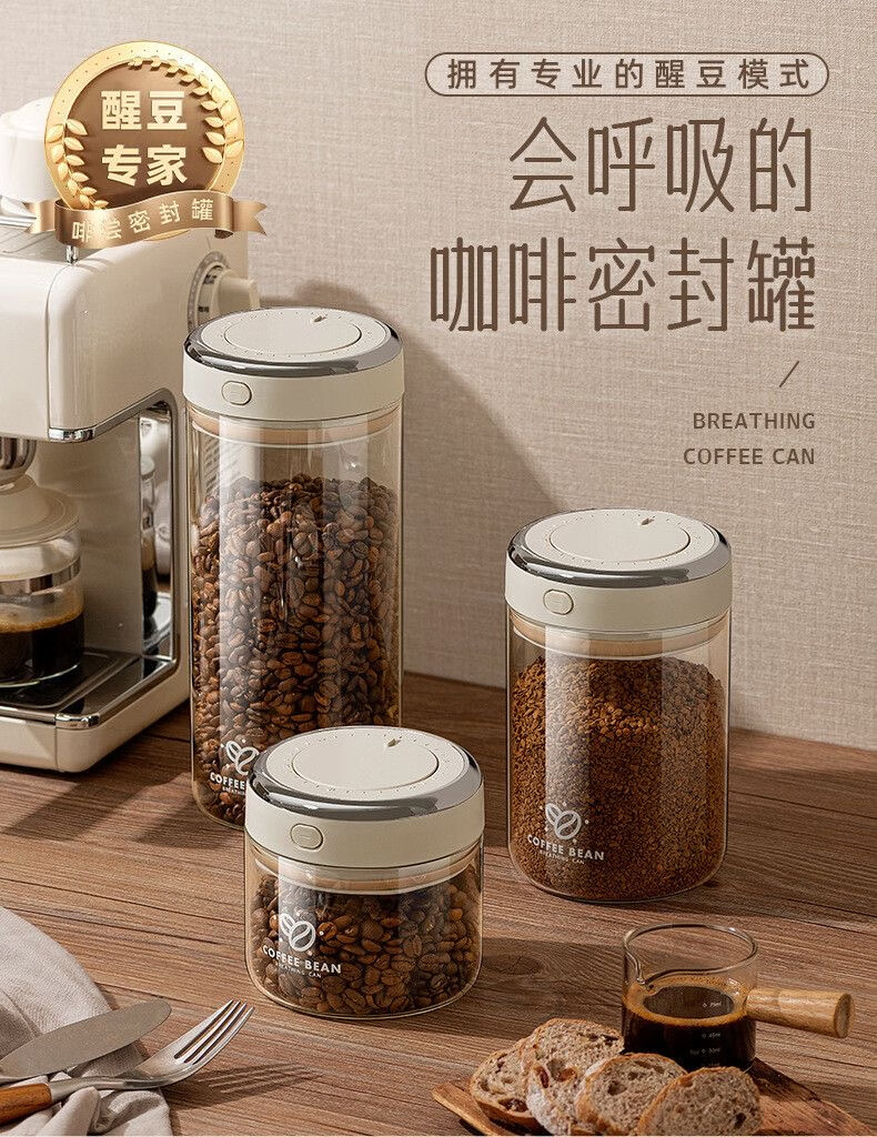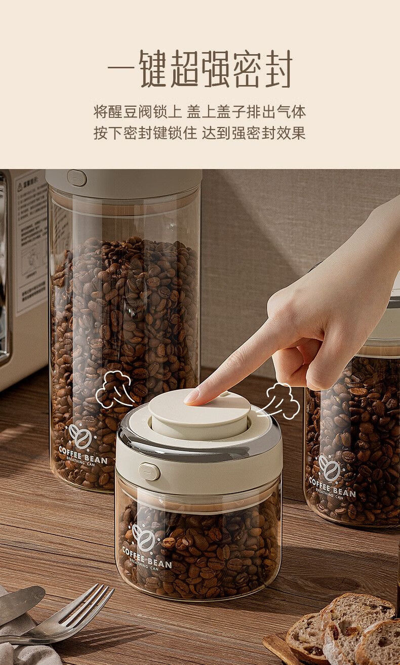 吱凡日本食品级咖啡豆真空密封罐醒豆养豆防潮储存罐茶叶五谷杂粮收纳 真空密封罐1100ml 1个