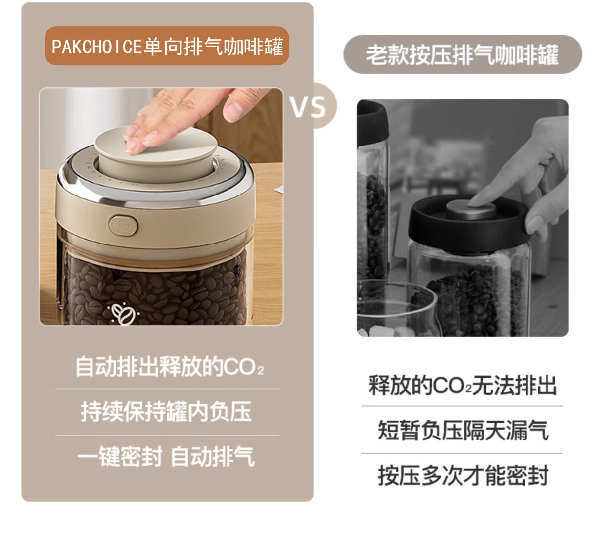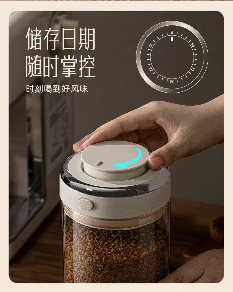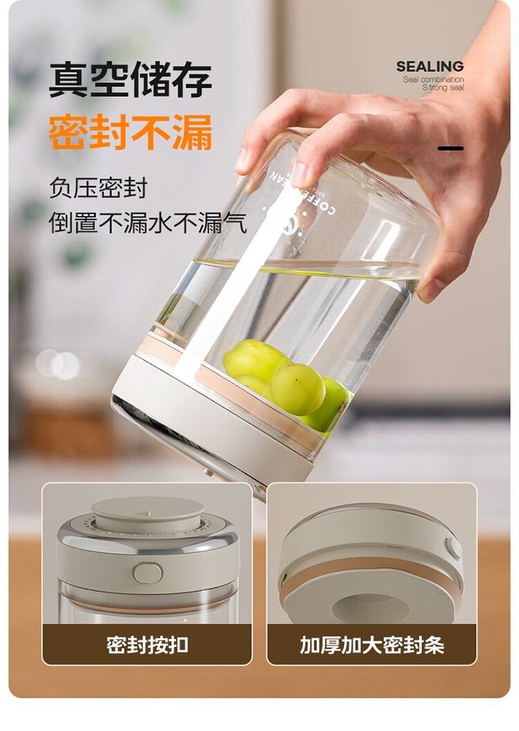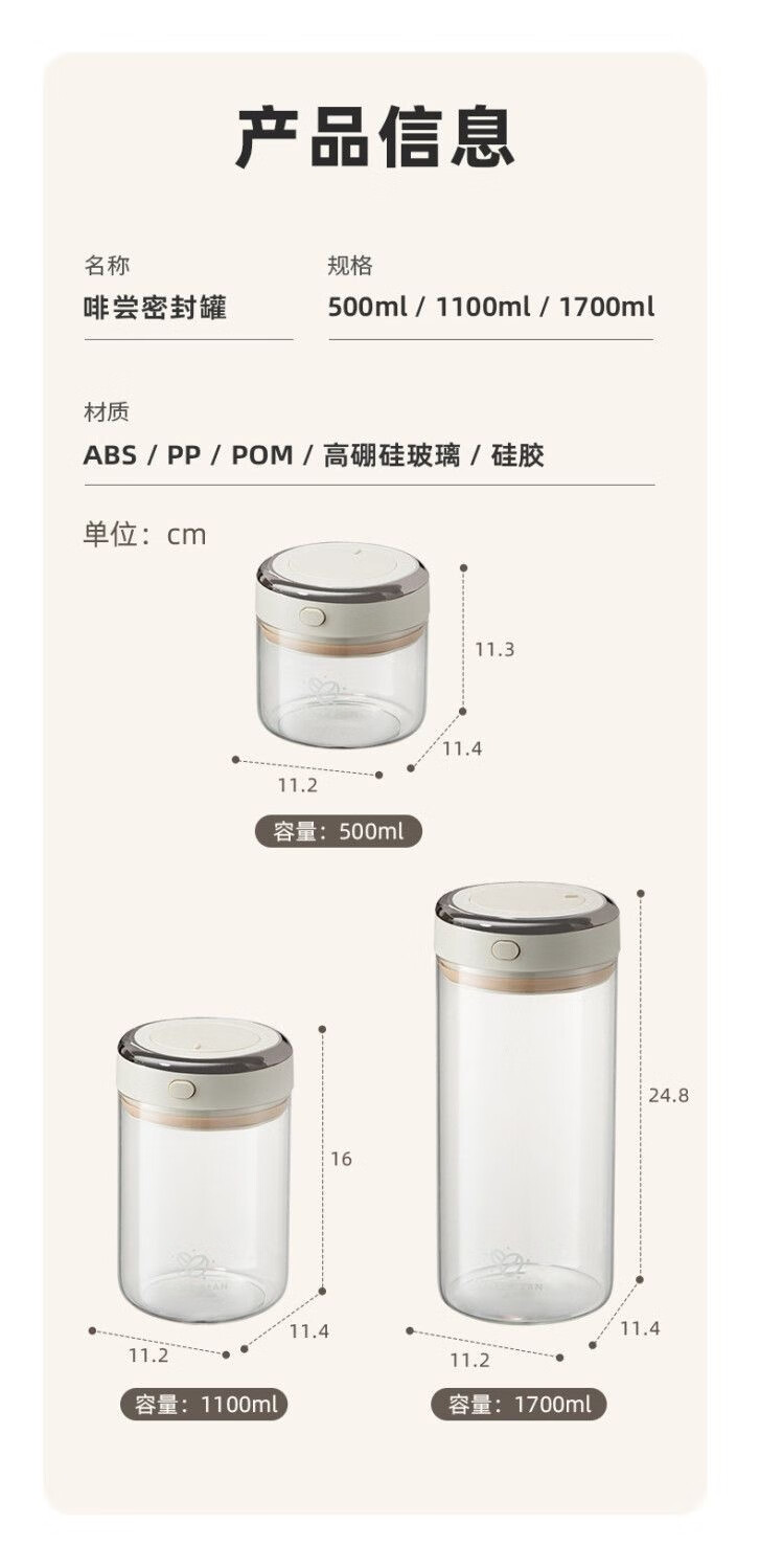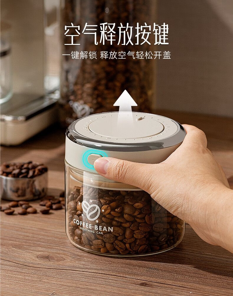 吱凡日本食品级咖啡豆真空密封罐醒豆养豆防潮储存罐茶叶五谷杂粮收纳 真空密封罐1100ml 1个