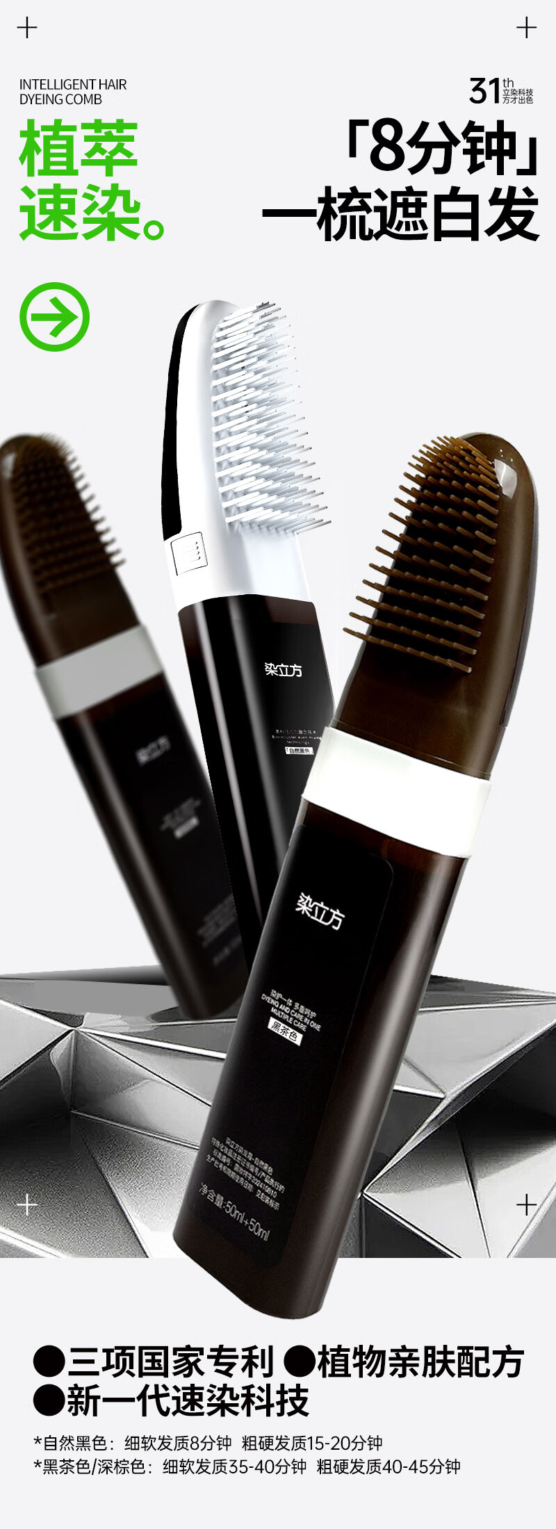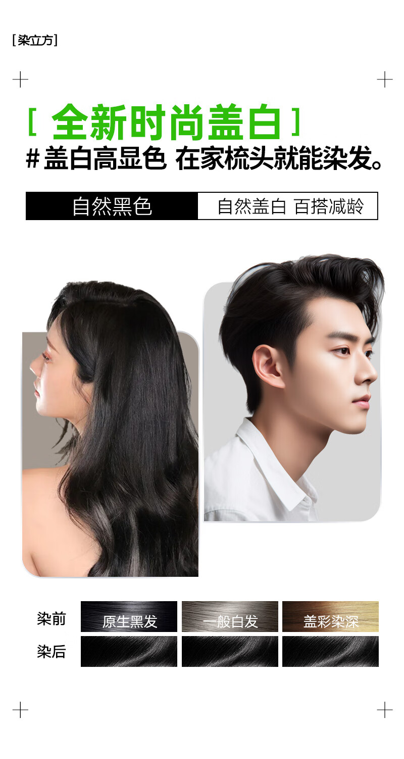 染立方易染梳染发膏植物精华染发梳男女无刺激不沾头皮遮盖白发黑茶色