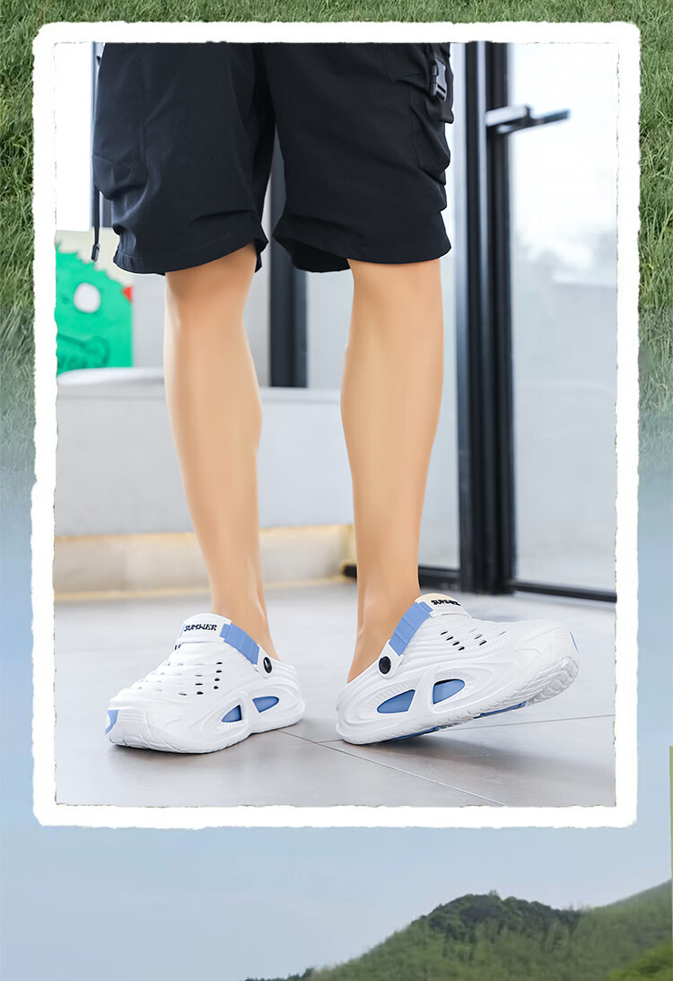 森馬洞洞鞋男夏季外穿踩屎感防滑耐磨厚底凉鞋男士开车运动溯溪沙滩鞋 灰色【基础款】 38-39 【现货秒发】