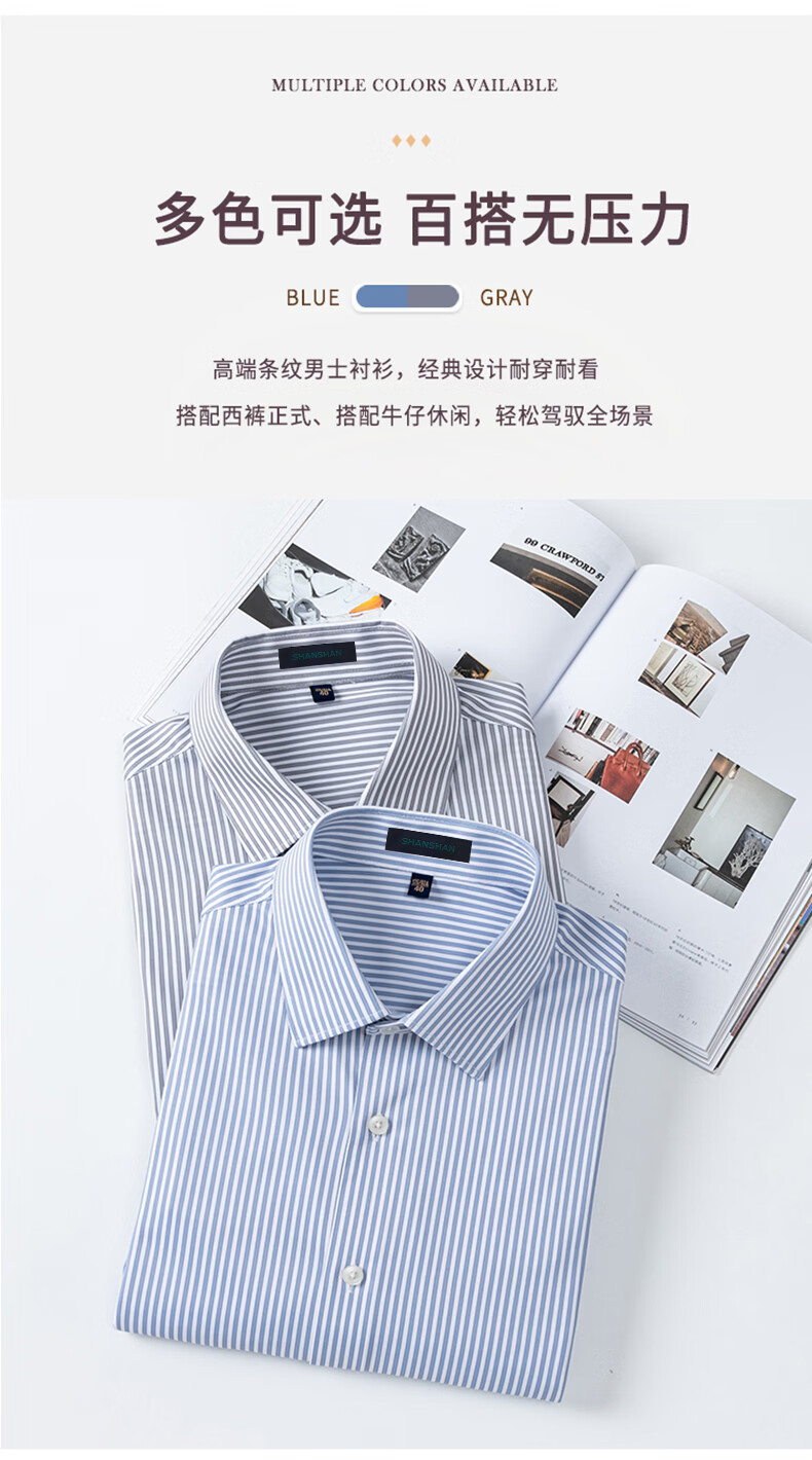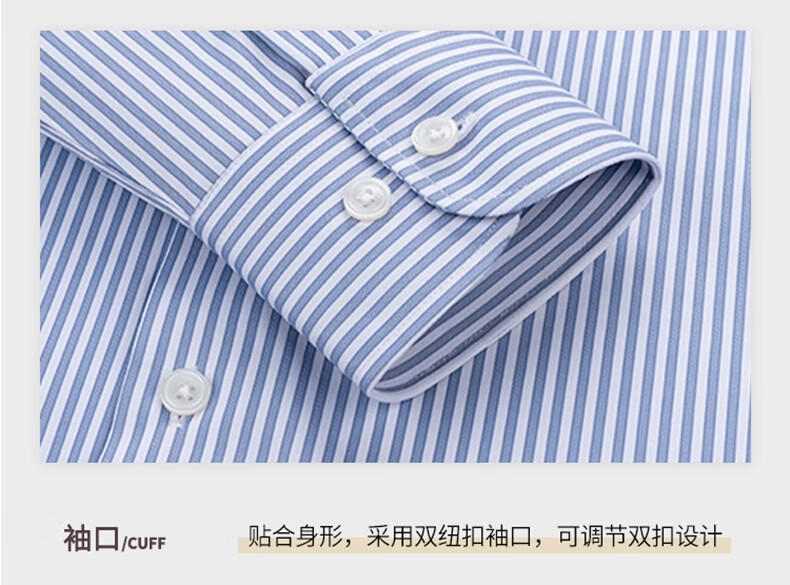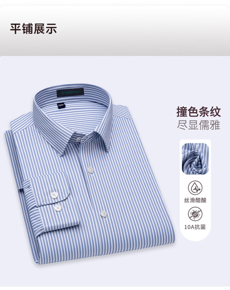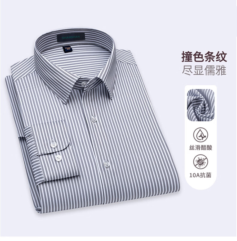 SHANSHAN杉杉【10A抗菌】男士长袖衬衫春季新款商务休闲条纹衬衫男上衣 蓝条纹 38 /170