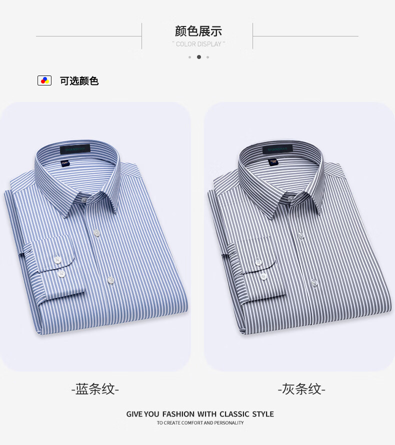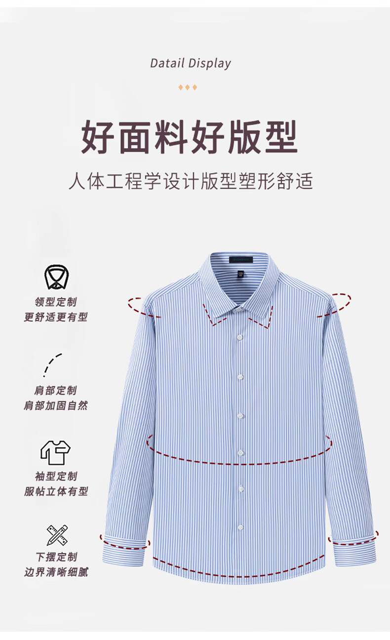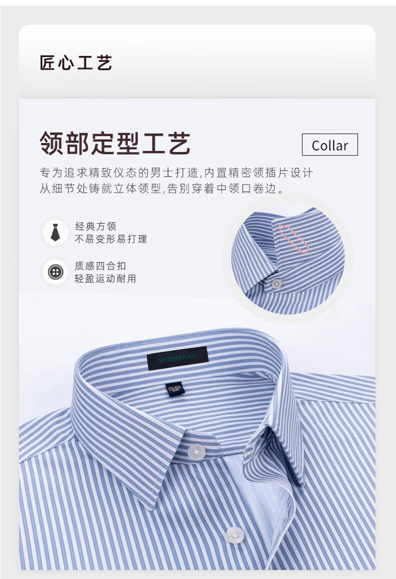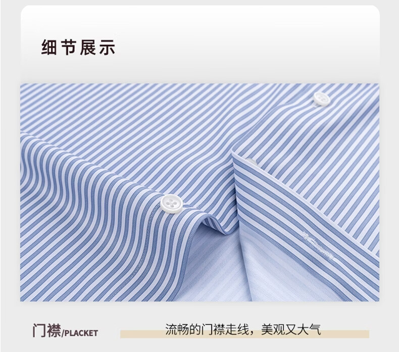 SHANSHAN杉杉【10A抗菌】男士长袖衬衫春季新款商务休闲条纹衬衫男上衣 蓝条纹 38 /170