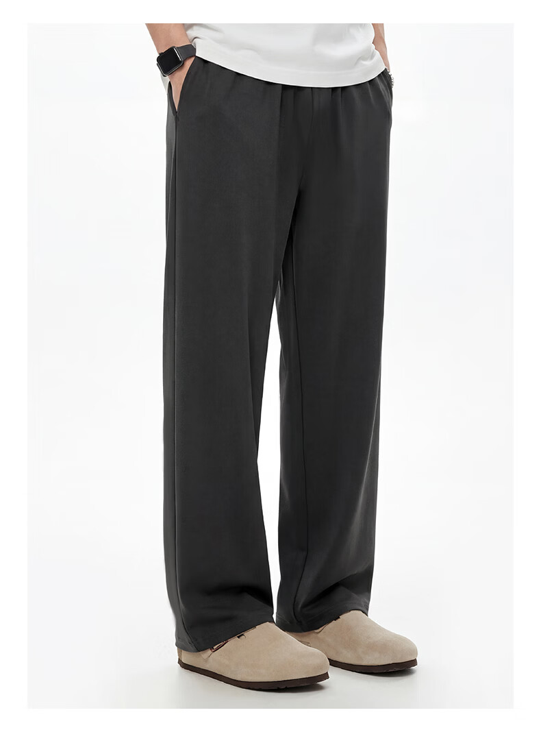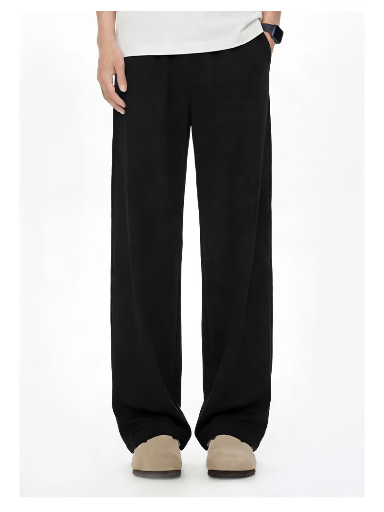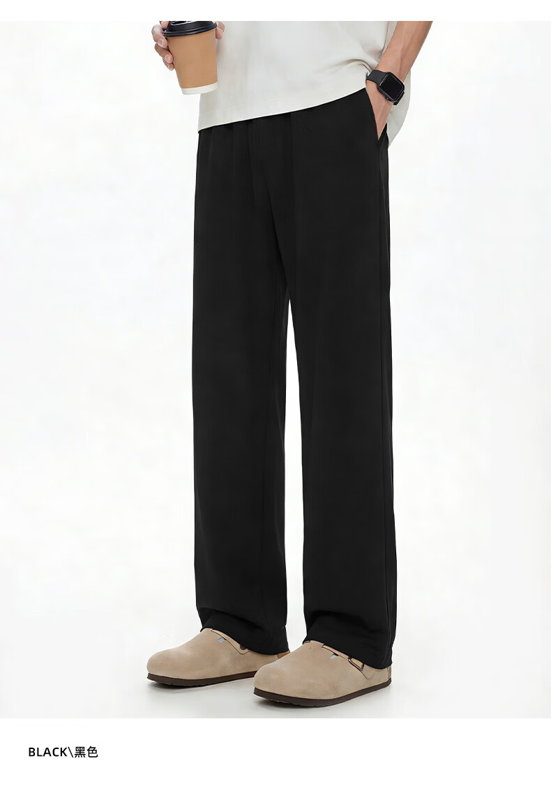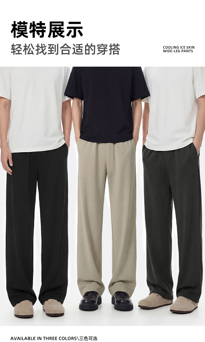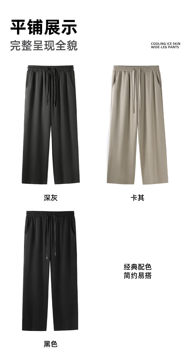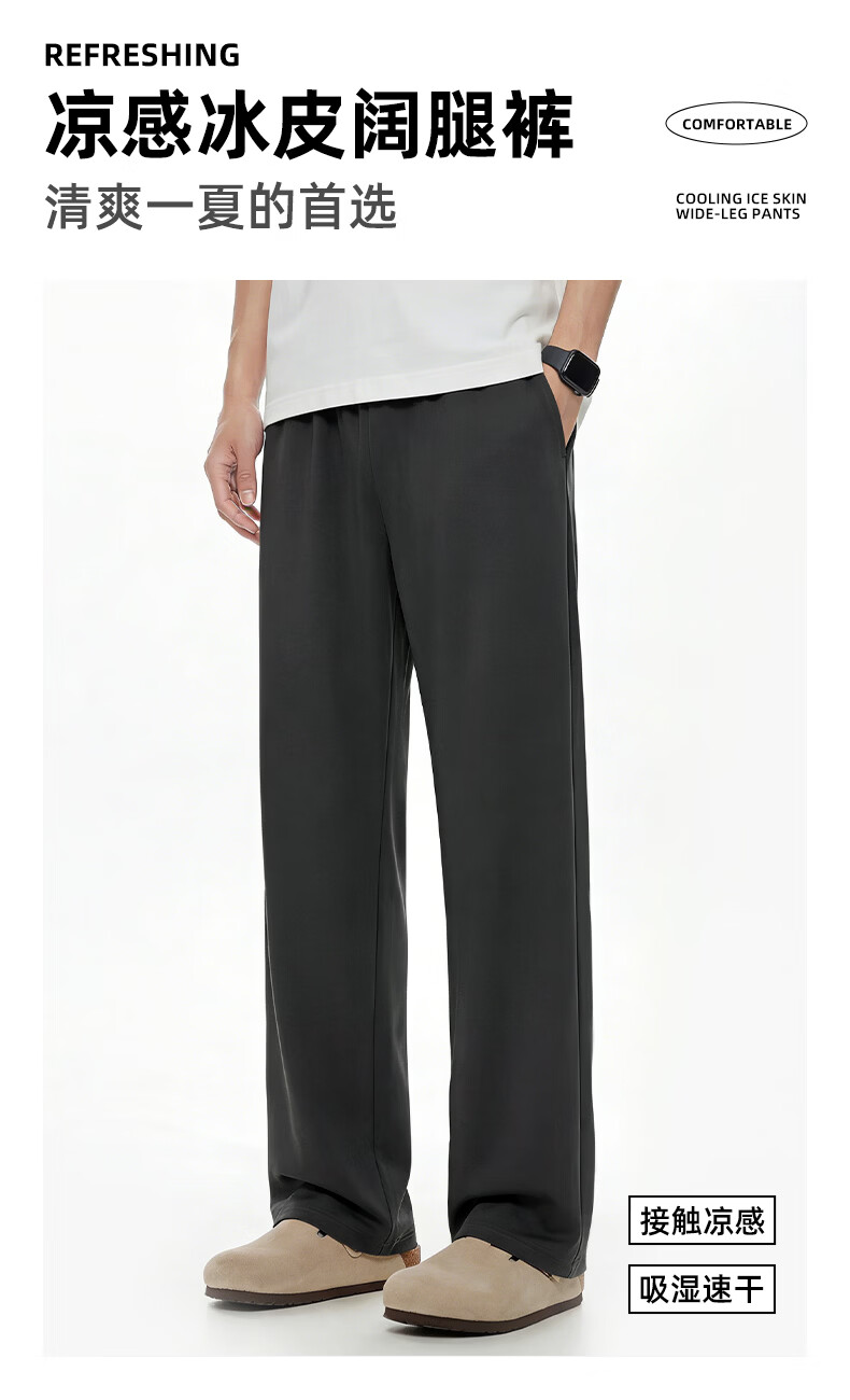 真维斯(Jeanswest)冰丝阔腿休闲裤男士夏季潮牌垂感显瘦宽松防晒运动裤薄款直筒长裤 卡其 斜点杠紫_K M
