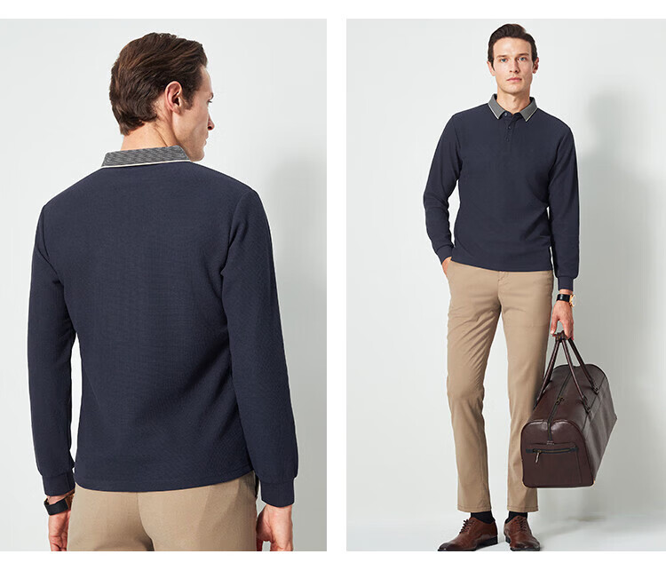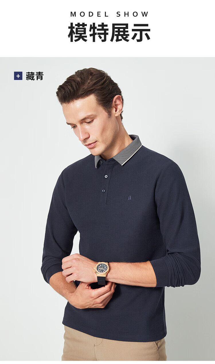 杉杉(FIRS)华夫格长袖t恤男春秋新款蚕丝柔软舒适透气内搭中年休闲上衣 深灰色 M (170/88A)