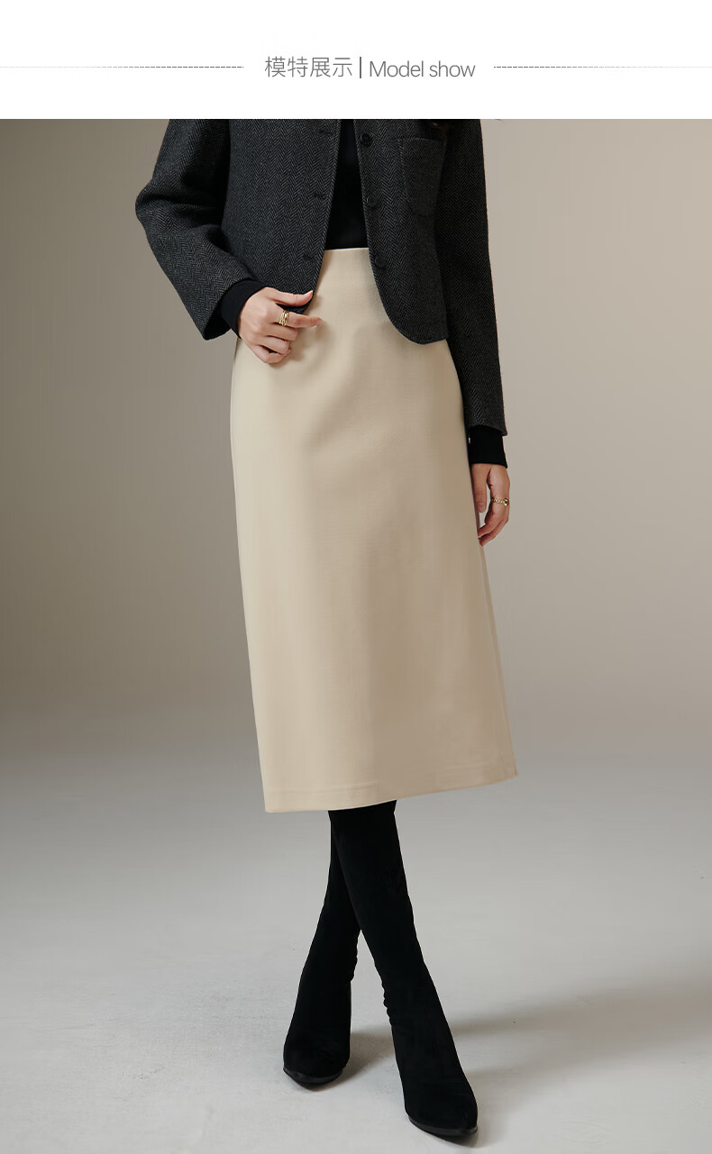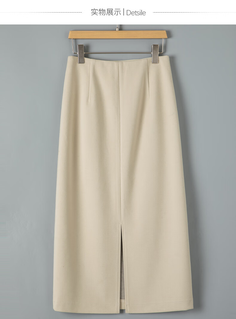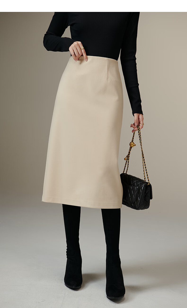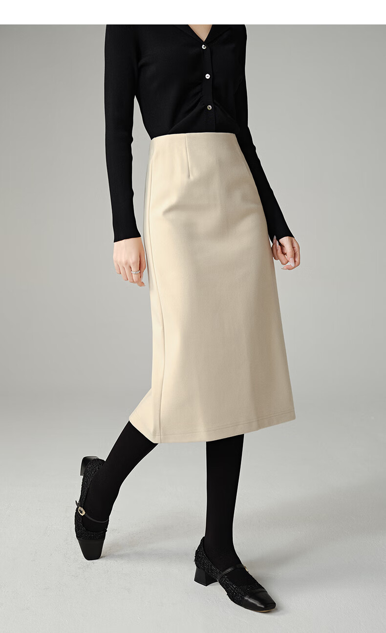 晚白【专享】冬款时尚百搭加厚保暖毛呢半裙高腰直筒及膝半裙 杏色 L