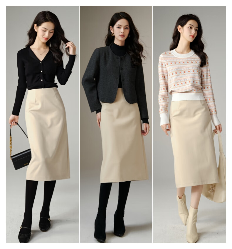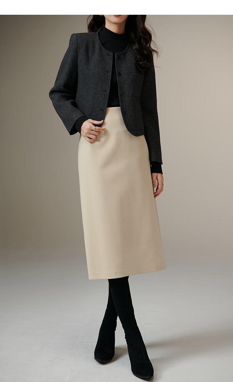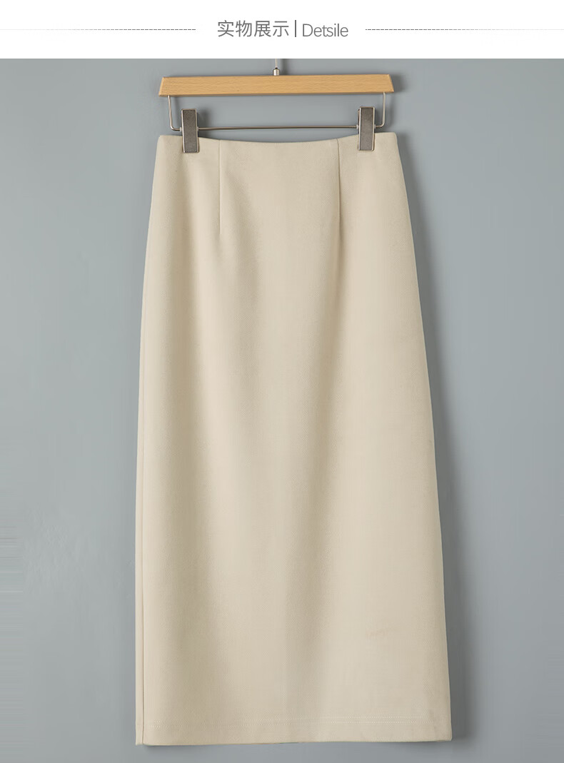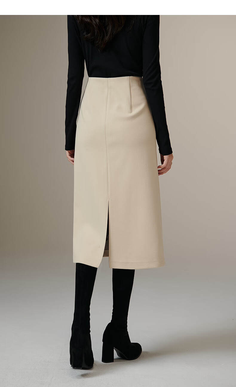 晚白【专享】冬款时尚百搭加厚保暖毛呢半裙高腰直筒及膝半裙 杏色 L