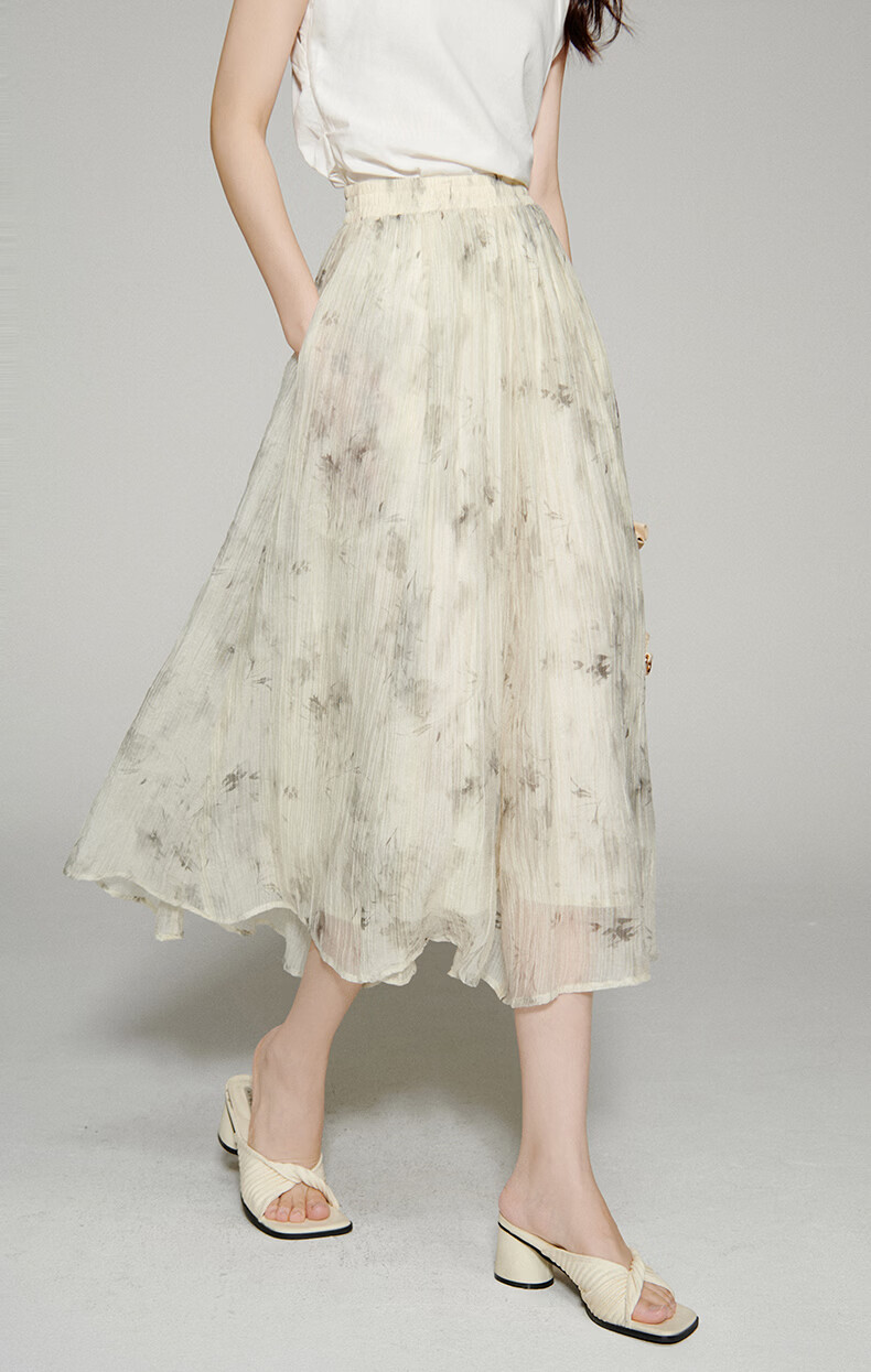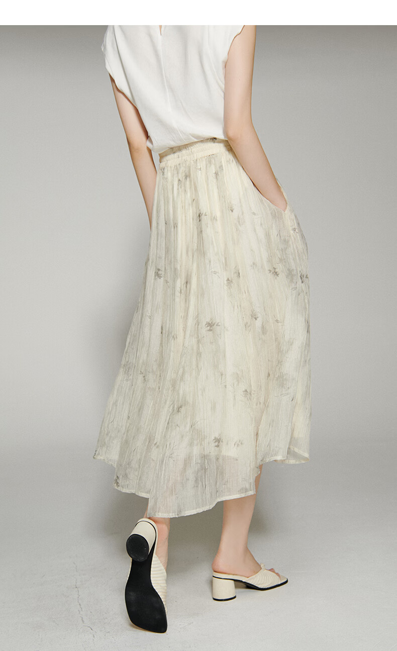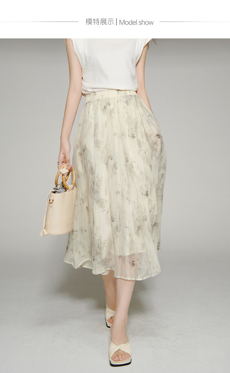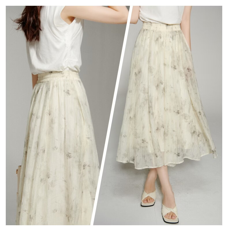 晚白【新品】2026年春款仙气轻盈印花半裙莱赛尔天丝清爽大摆半身裙 花色 L
