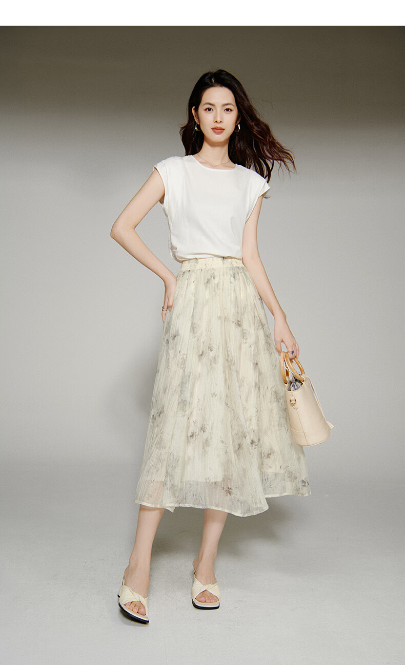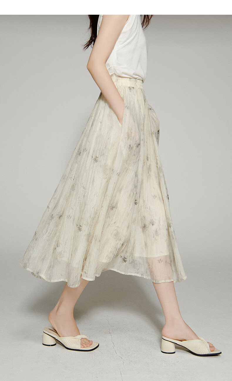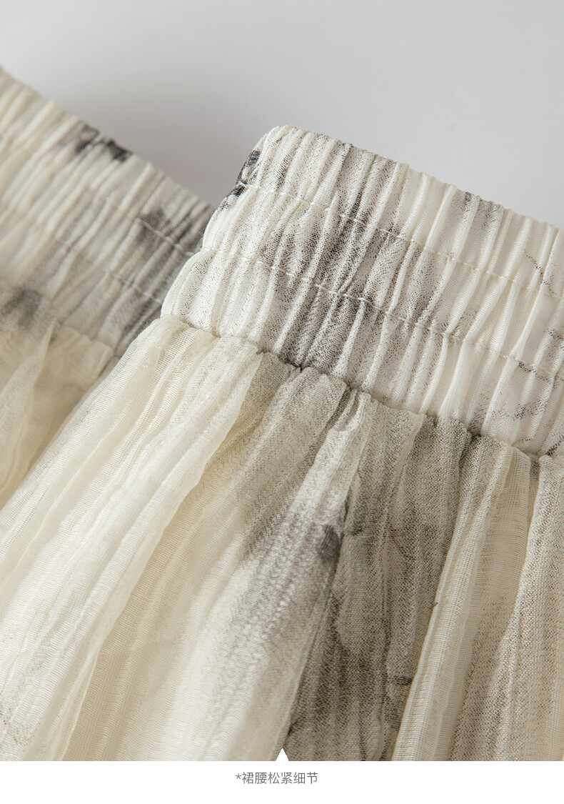 晚白【新品】2026年春款仙气轻盈印花半裙莱赛尔天丝清爽大摆半身裙 花色 L
