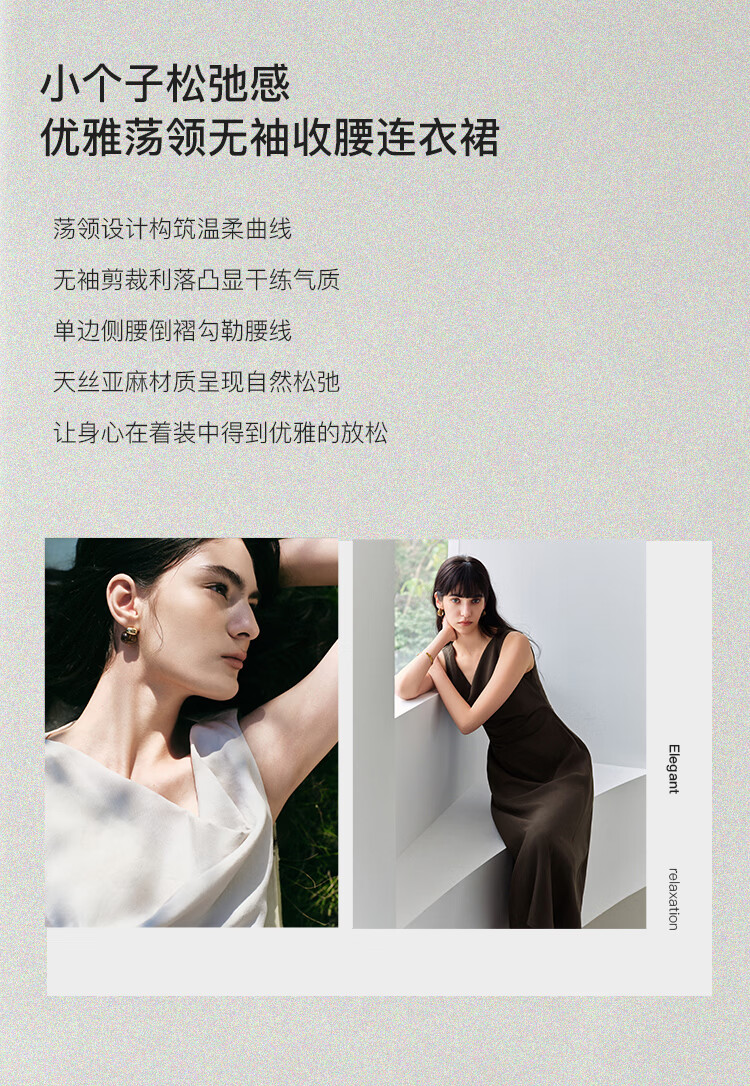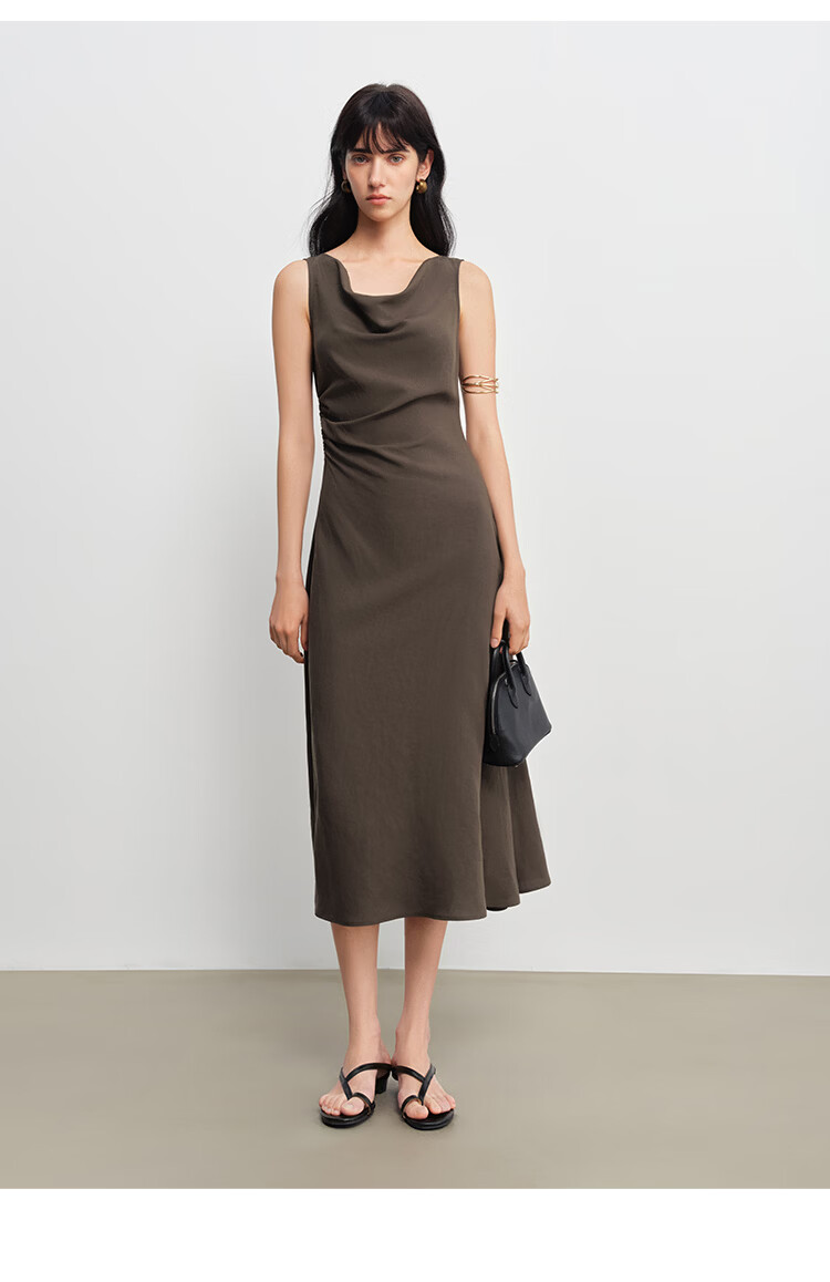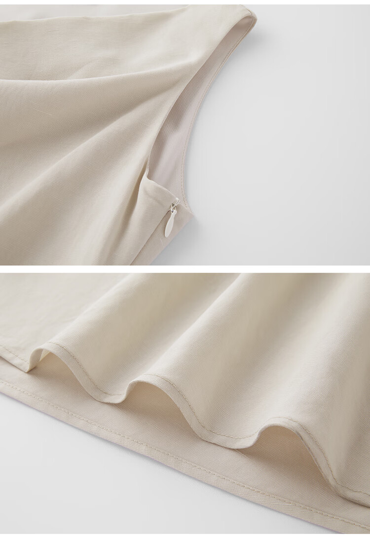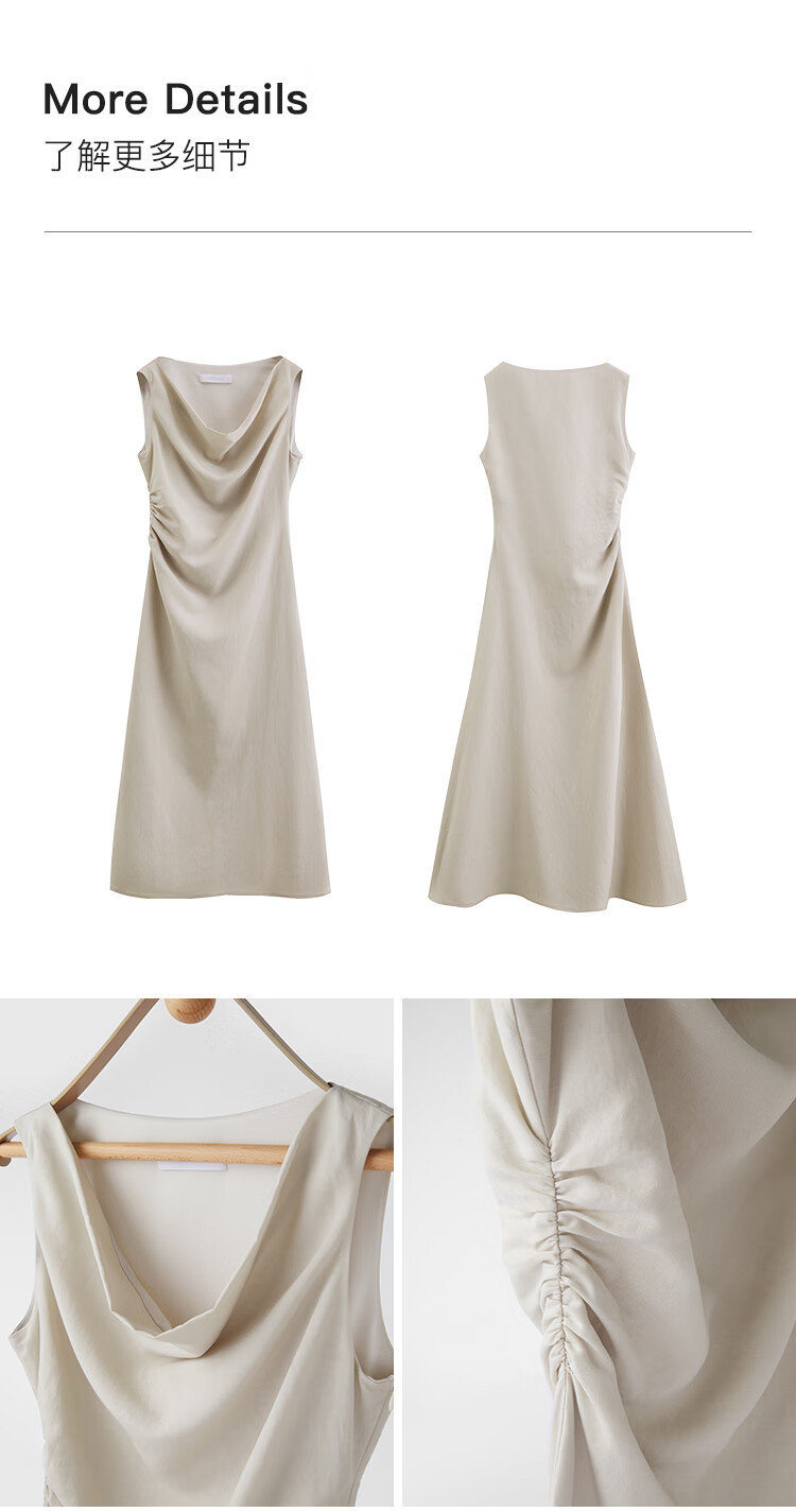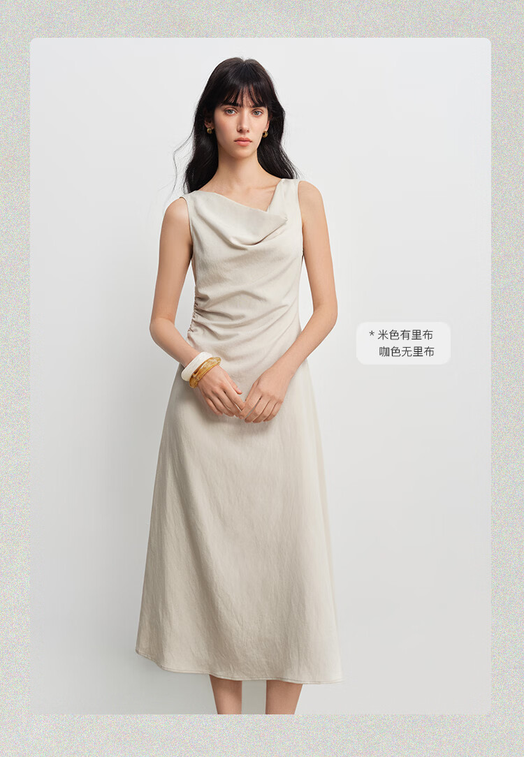 自巧小个子高级感荡领无袖收腰连衣裙女2026春季新款显瘦掐腰裙子 巧米色 M (尺码:4)