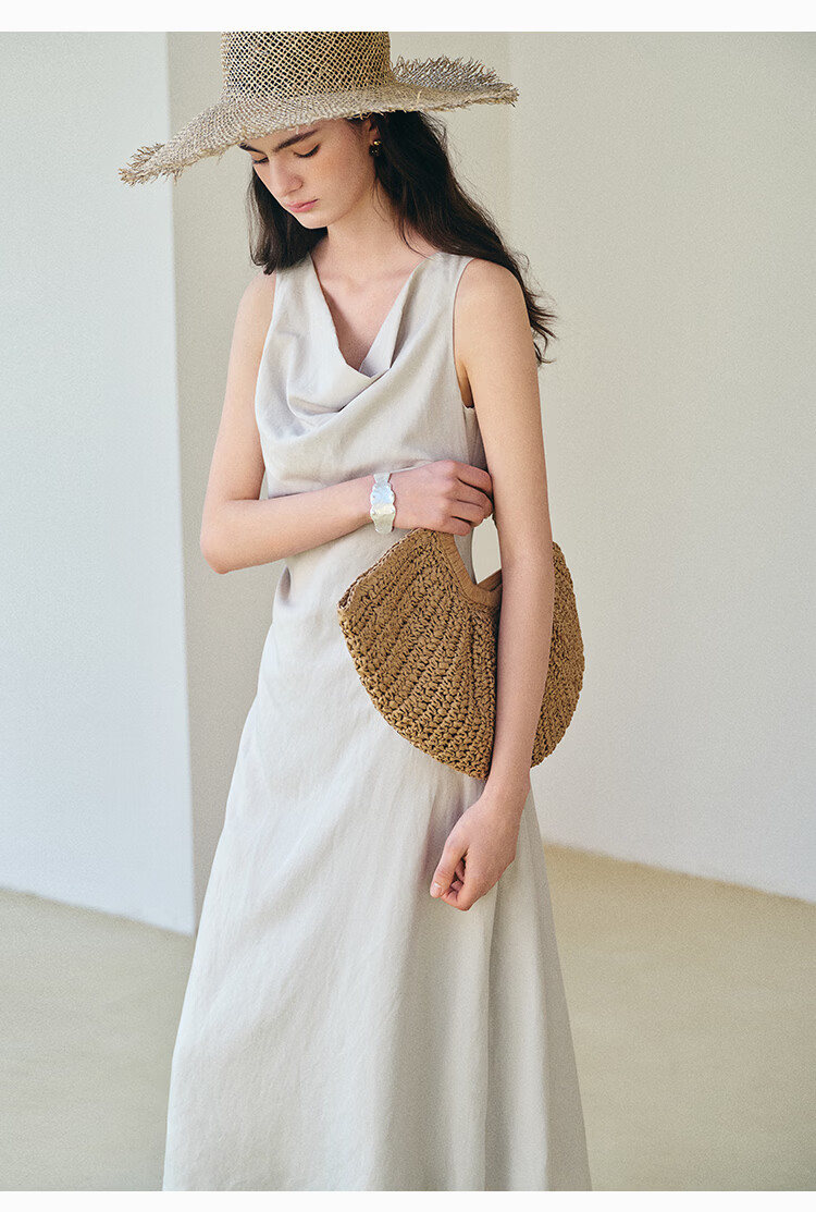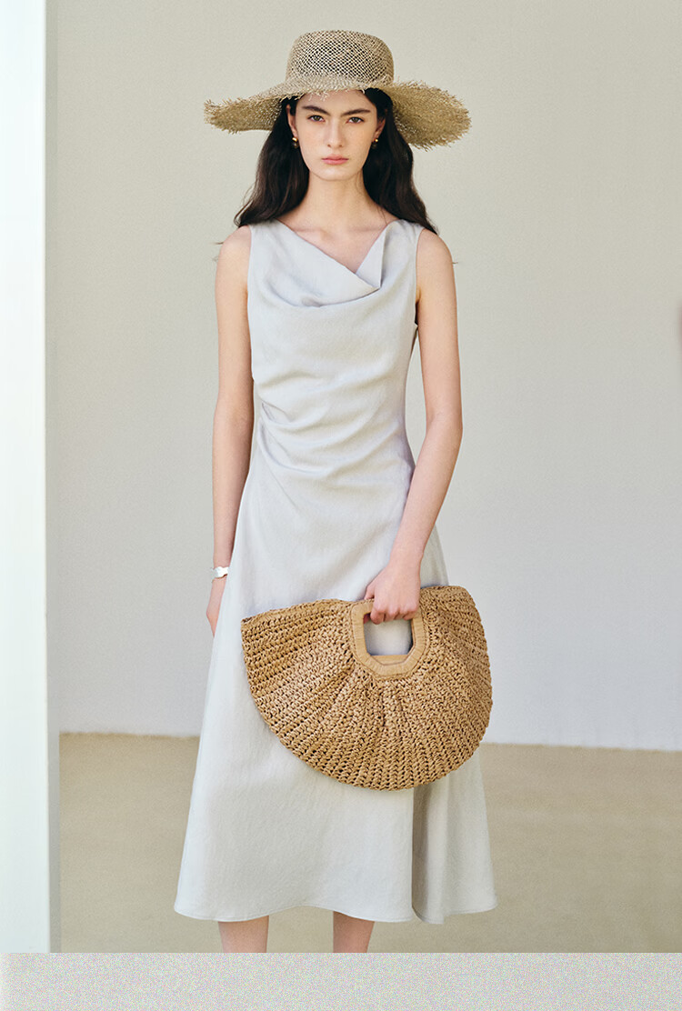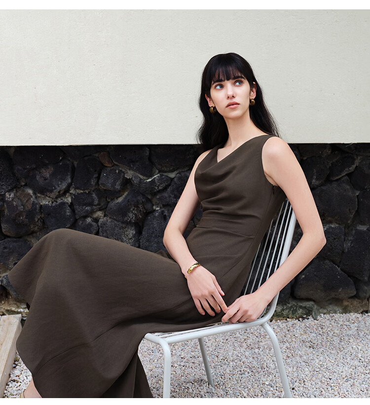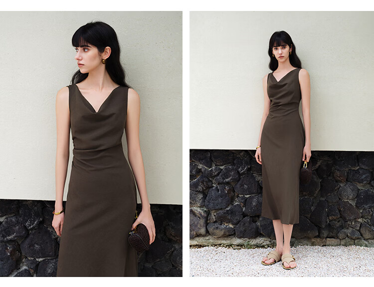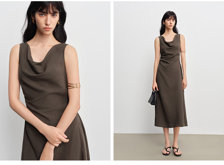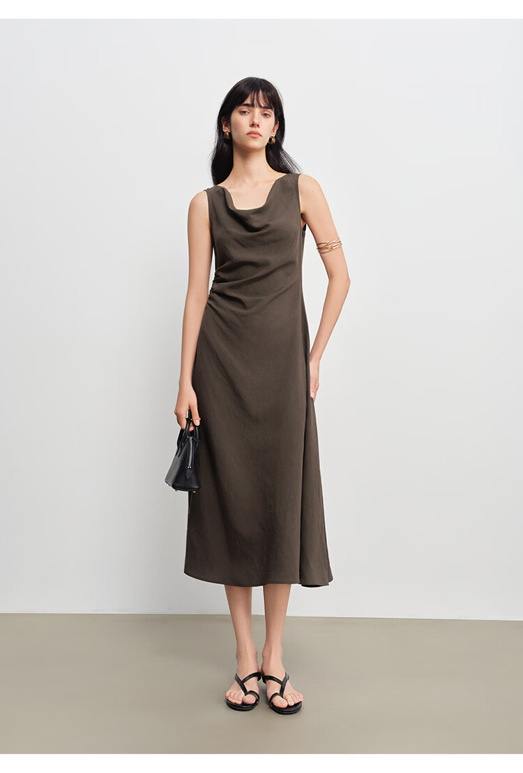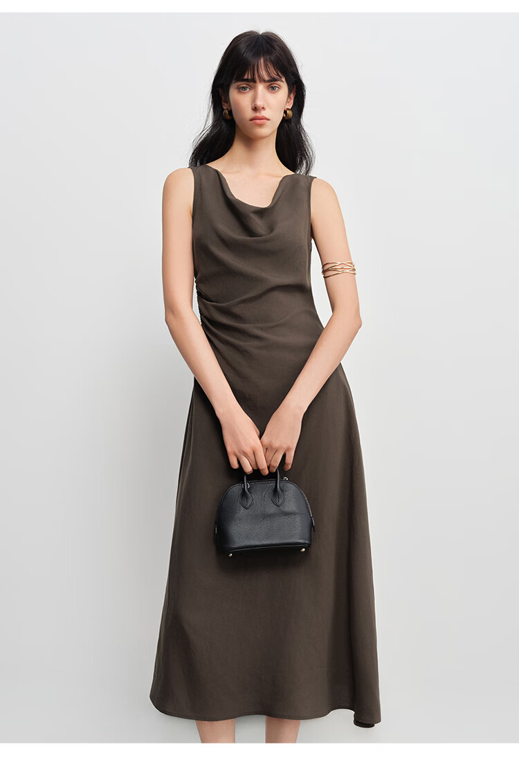 自巧小个子高级感荡领无袖收腰连衣裙女2026春季新款显瘦掐腰裙子 巧米色 M (尺码:4)