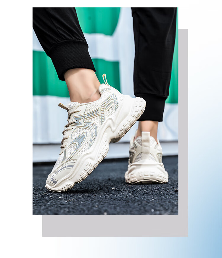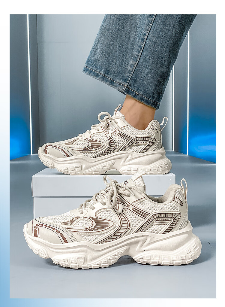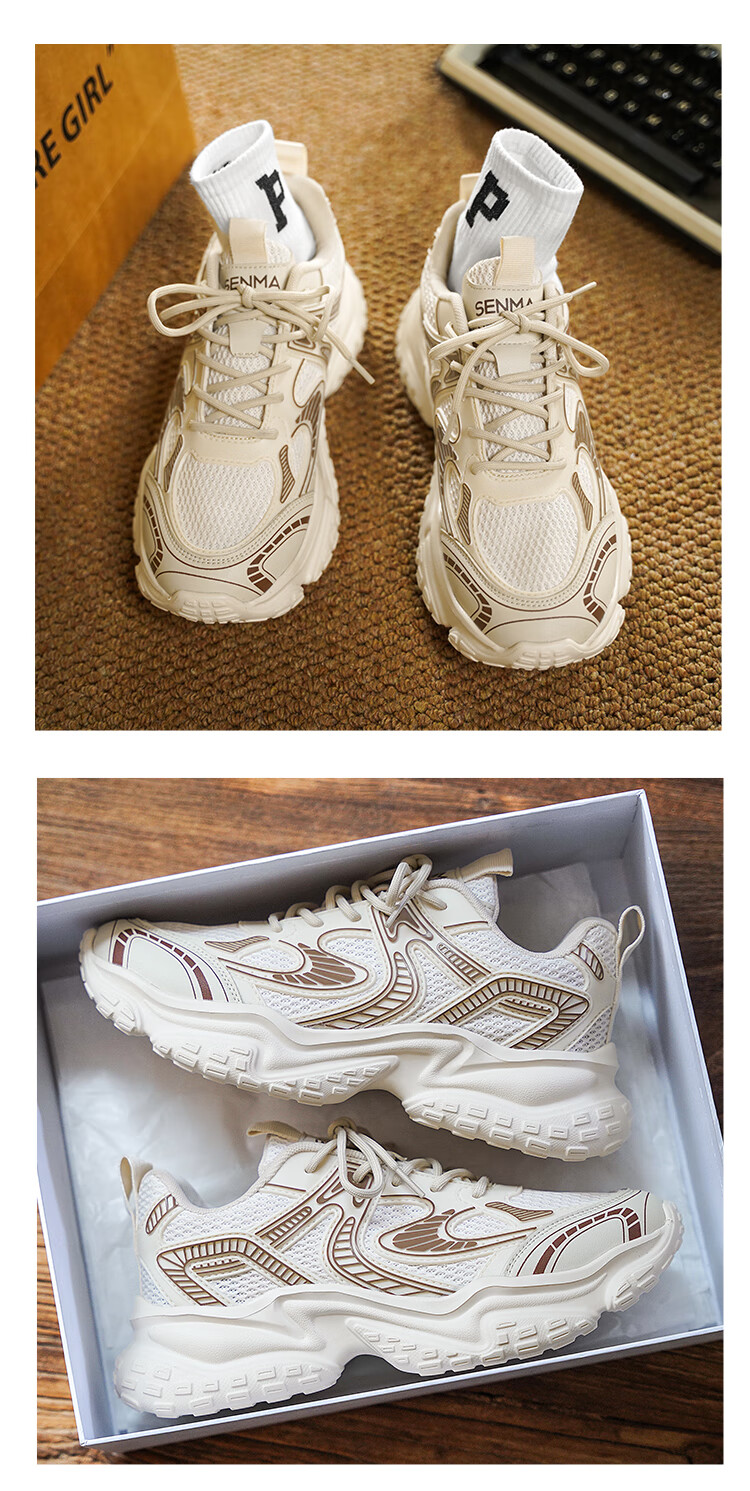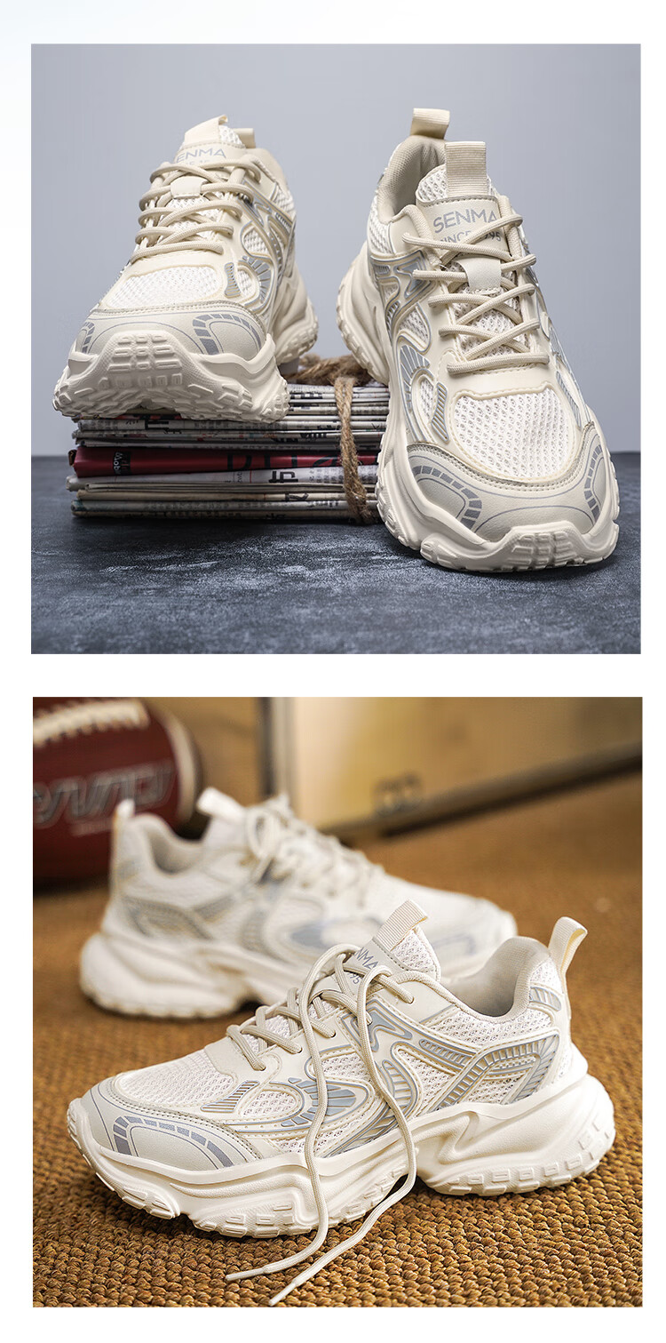 森馬男鞋2026新款夏季网面透气高级感厚底增高男士休闲运动跑步老爹鞋 米灰【升级款】 42 标准码数/现货秒发