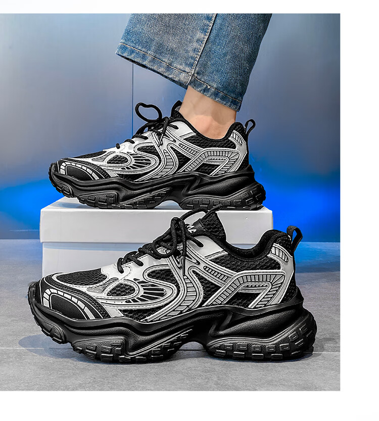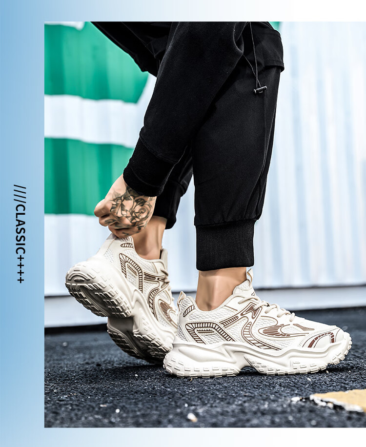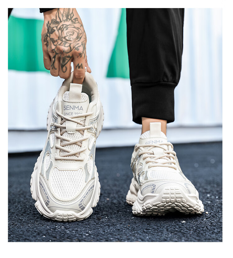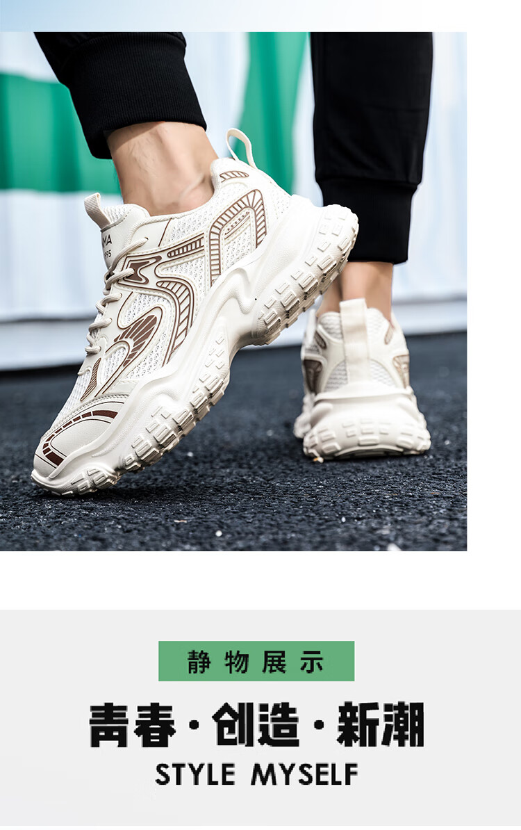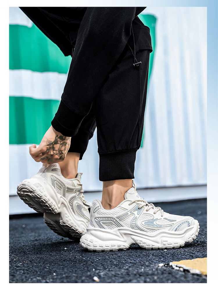 森馬男鞋2026新款夏季网面透气高级感厚底增高男士休闲运动跑步老爹鞋 米灰【升级款】 42 标准码数/现货秒发
