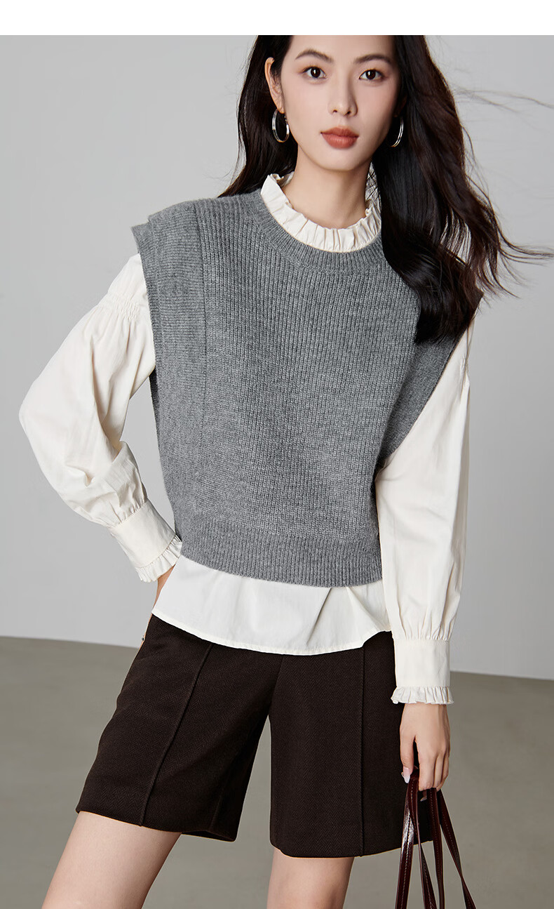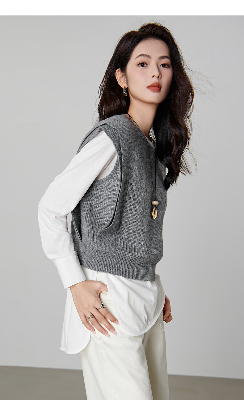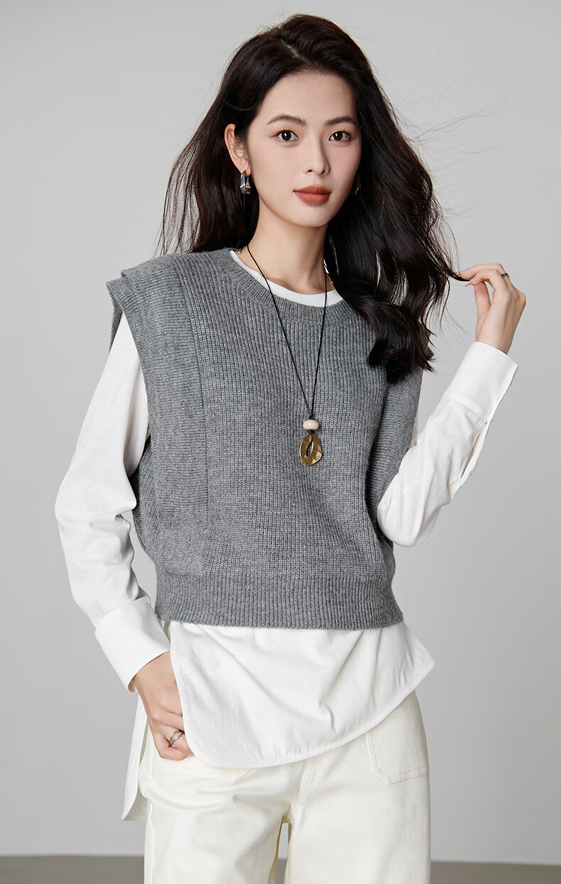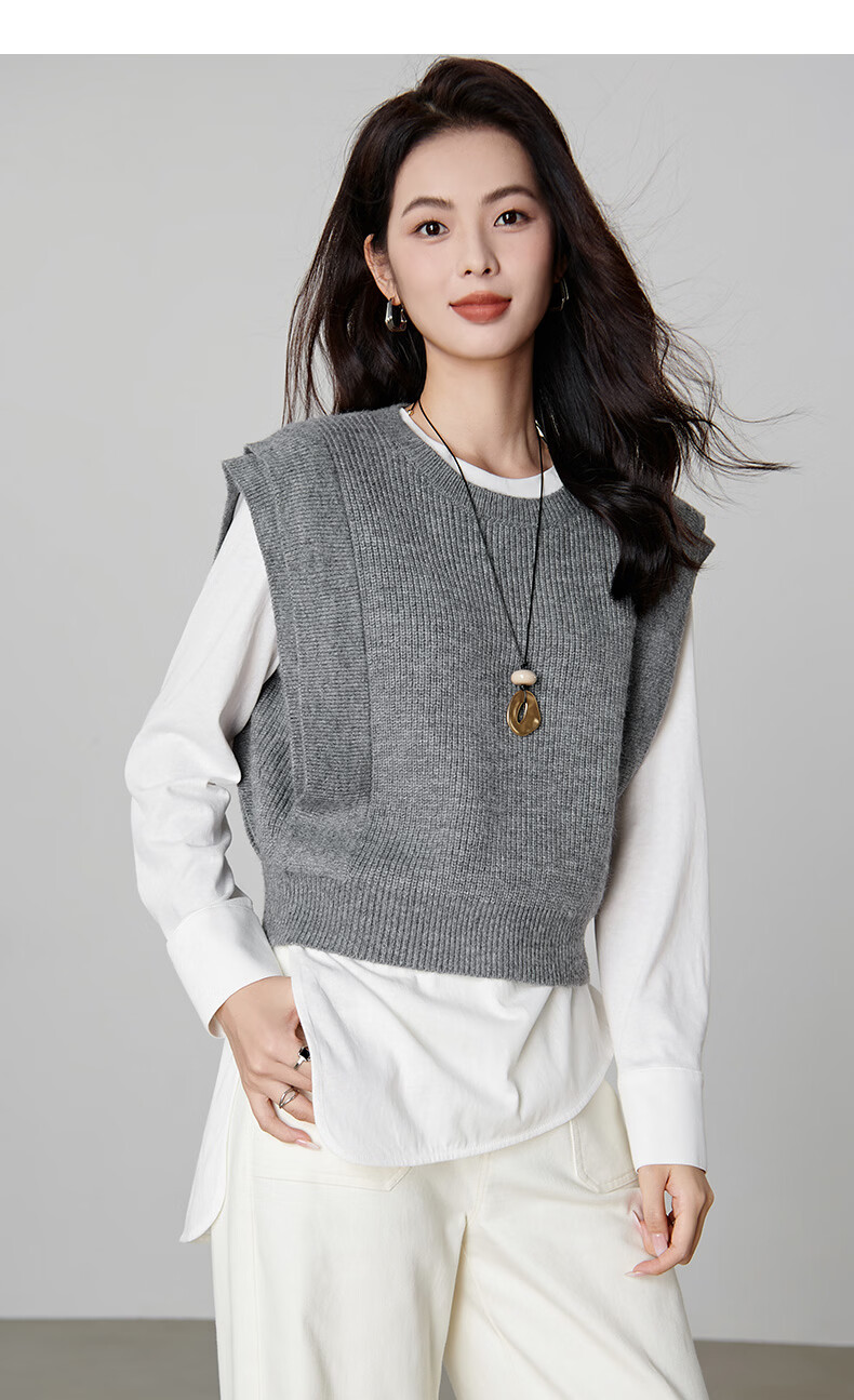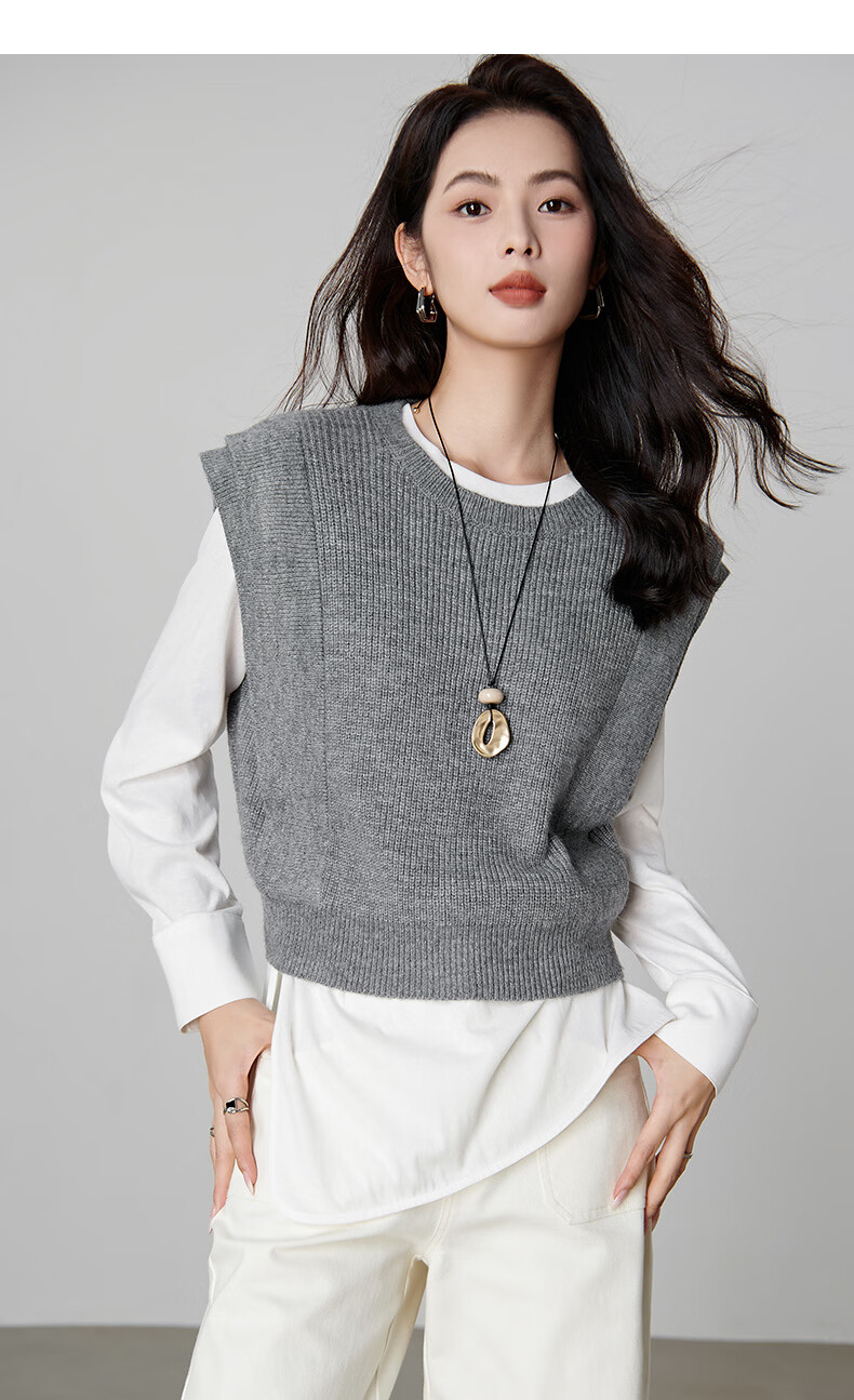 晚白【新品】2026春款法式慵懒风上衣舒适百搭格雷灰气质针织马甲女 灰色 S