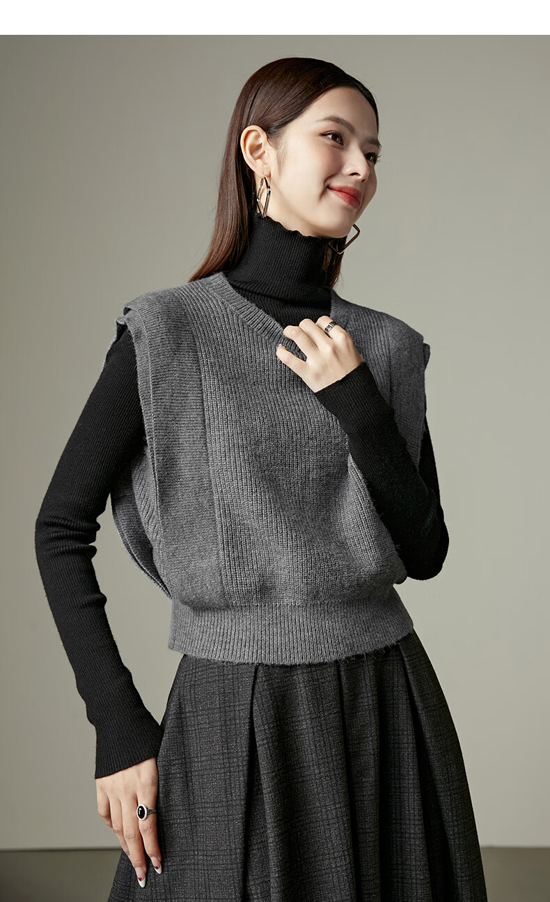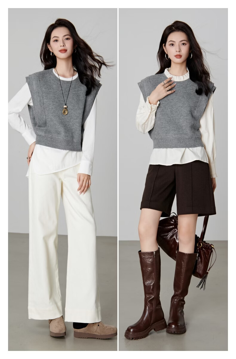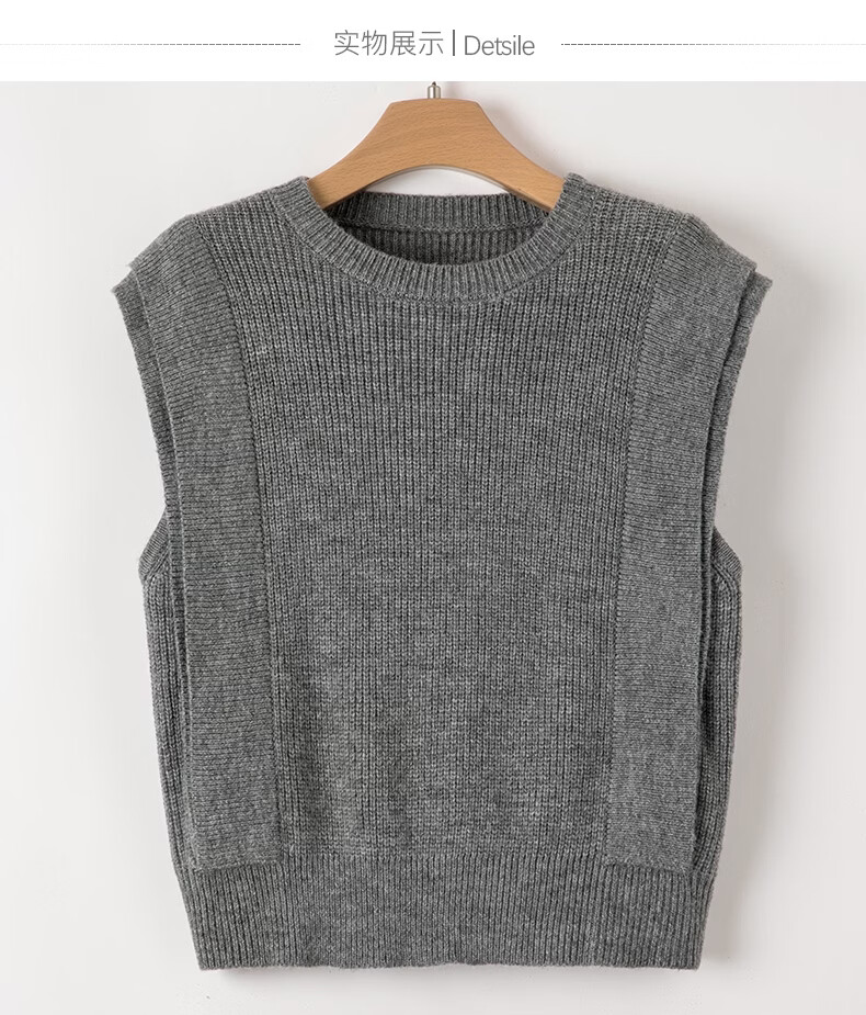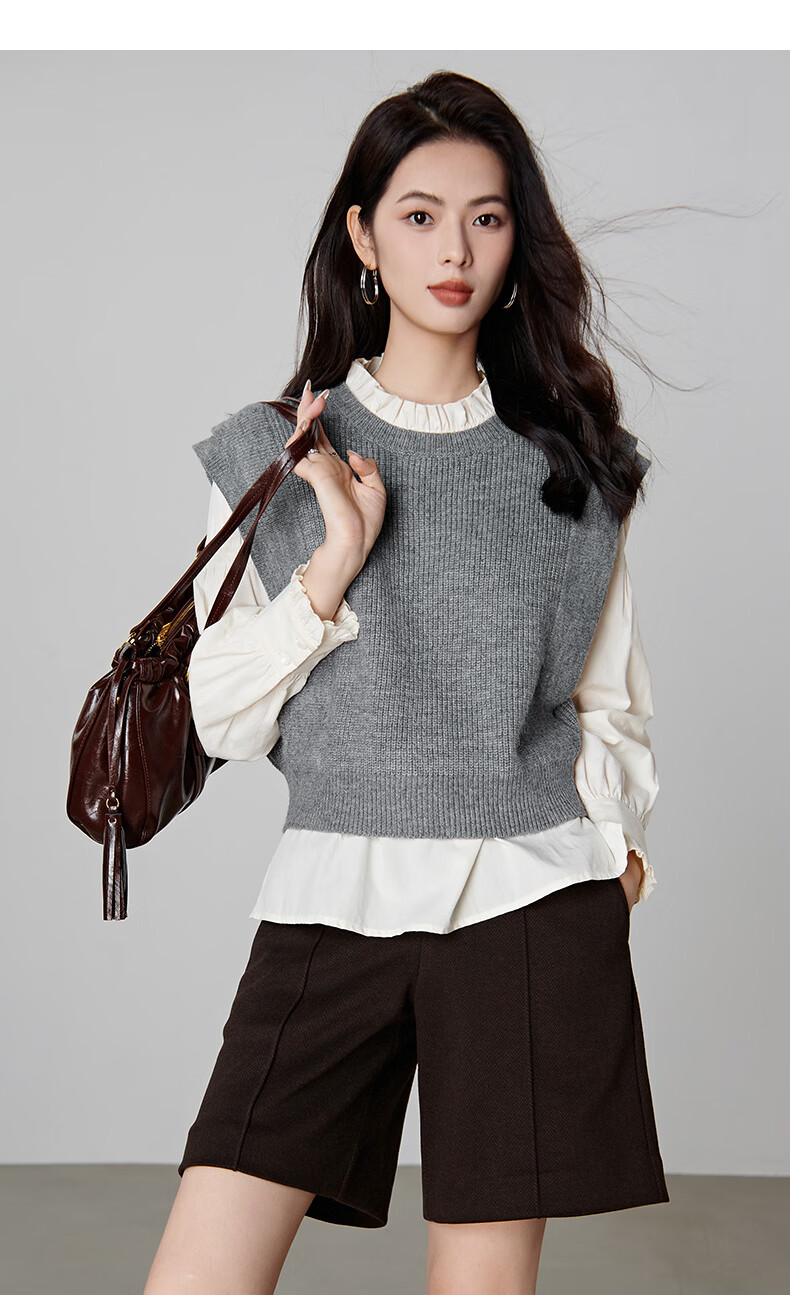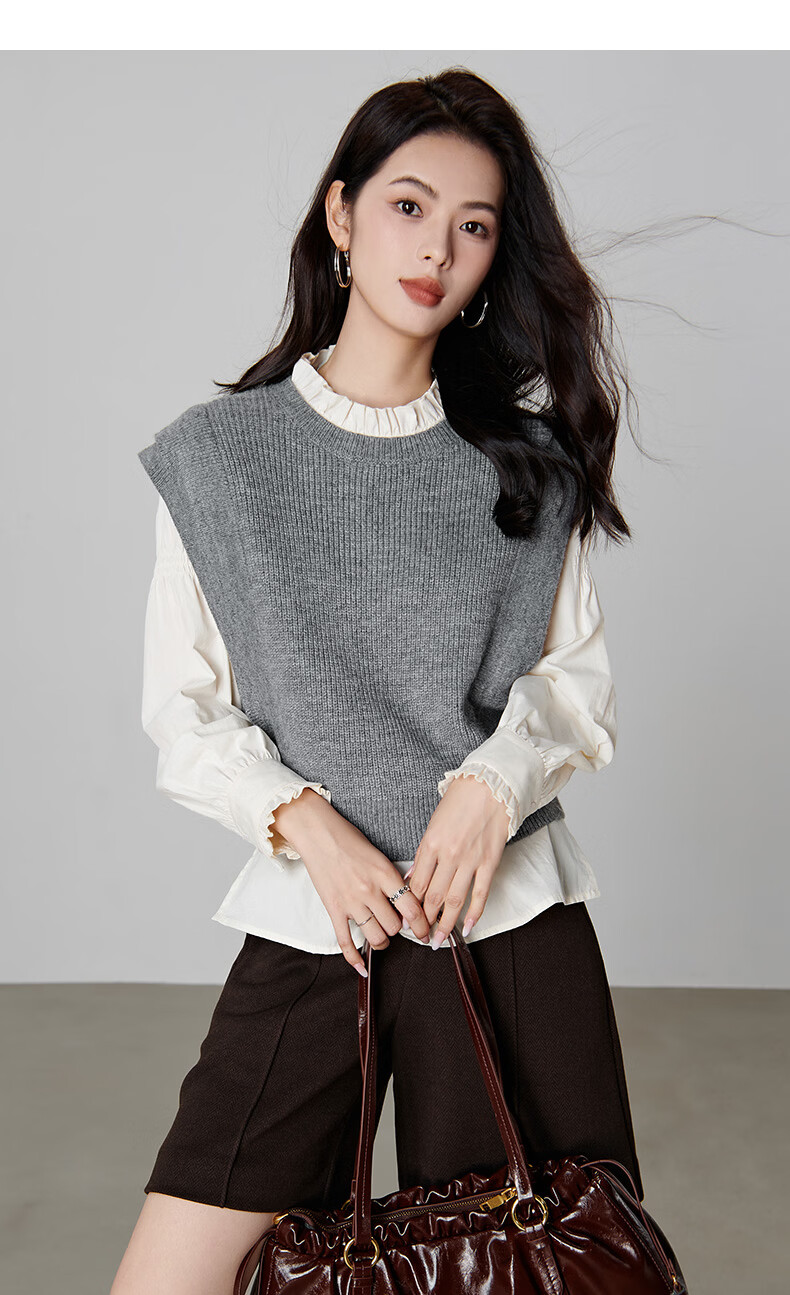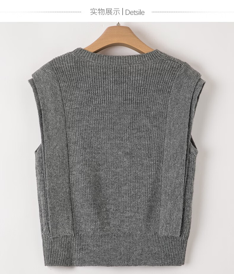 晚白【新品】2026春款法式慵懒风上衣舒适百搭格雷灰气质针织马甲女 灰色 S