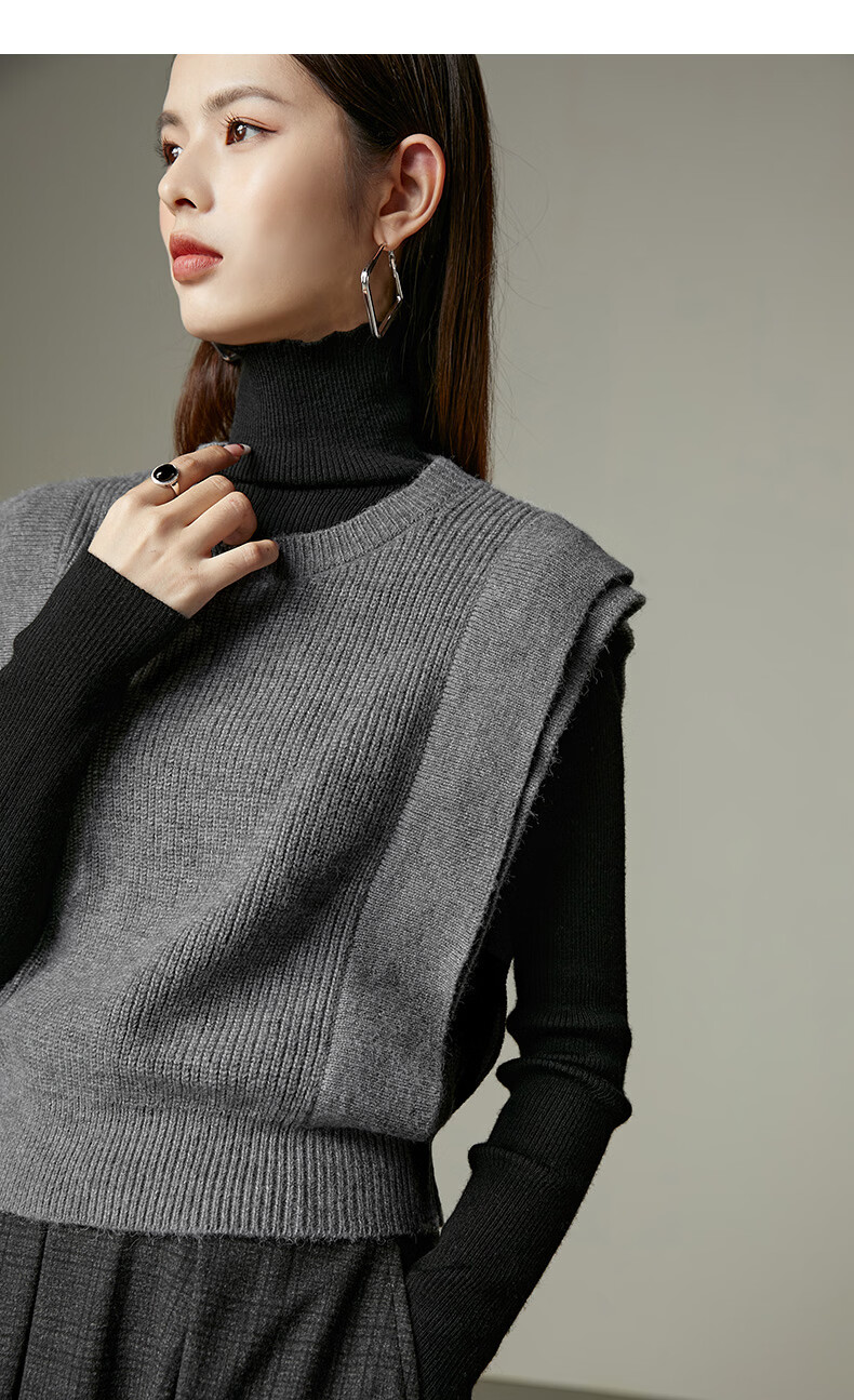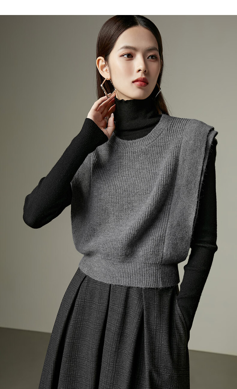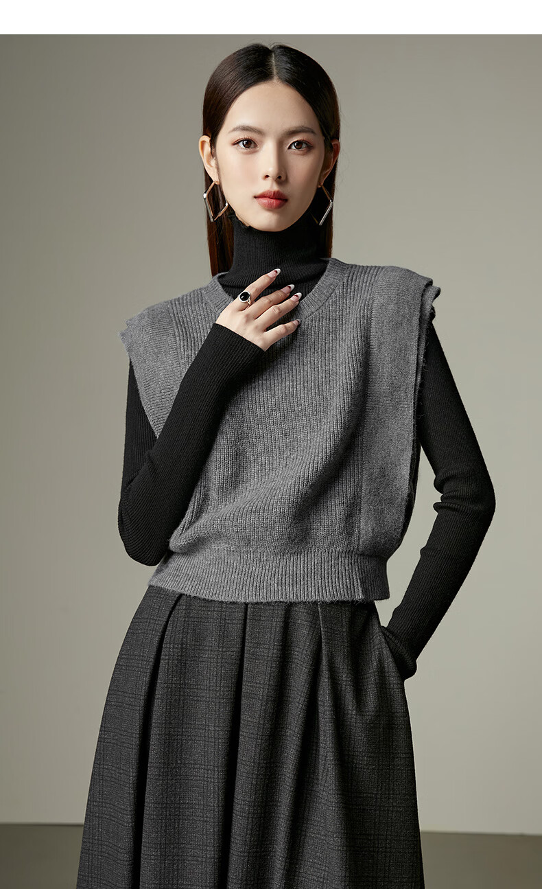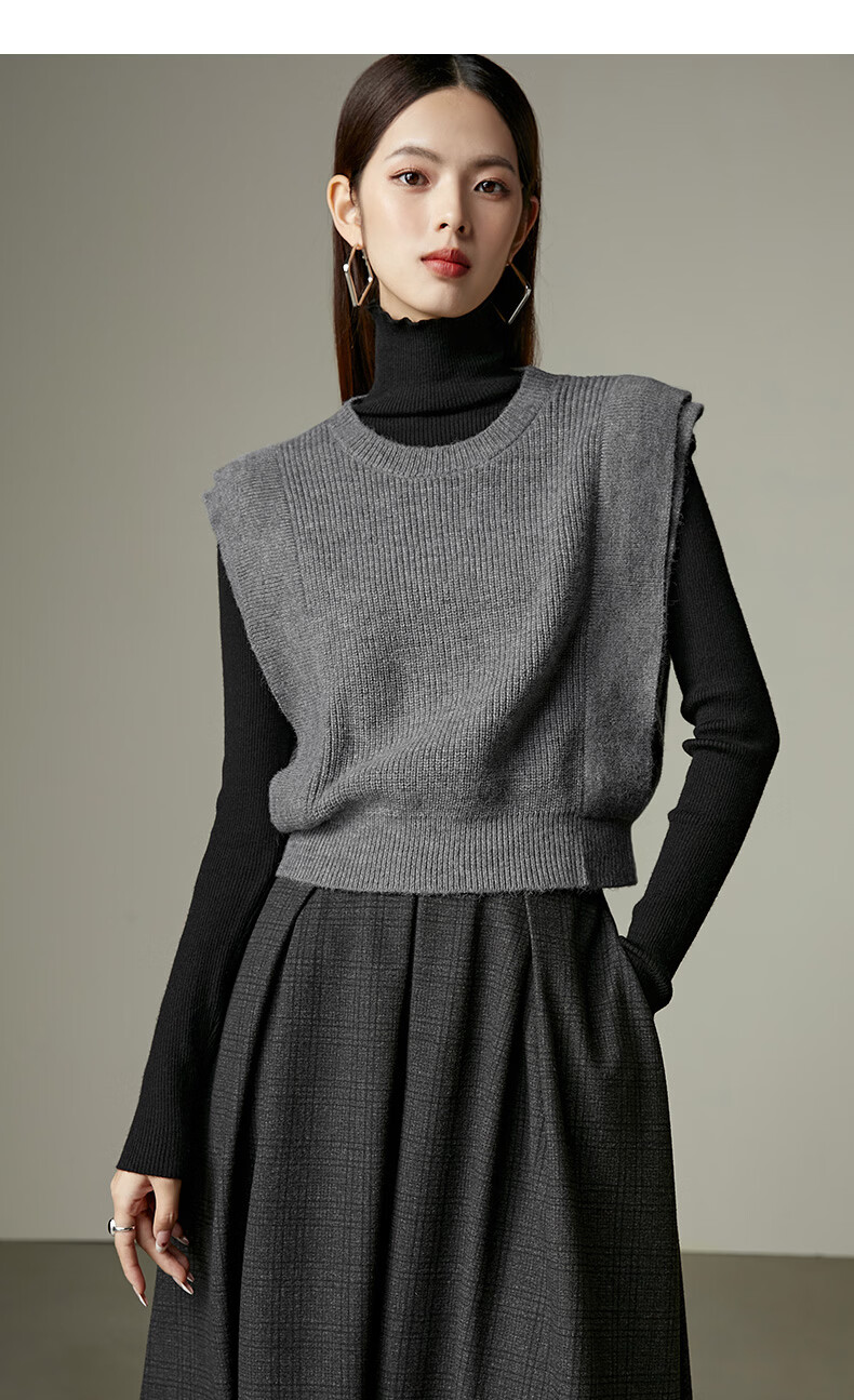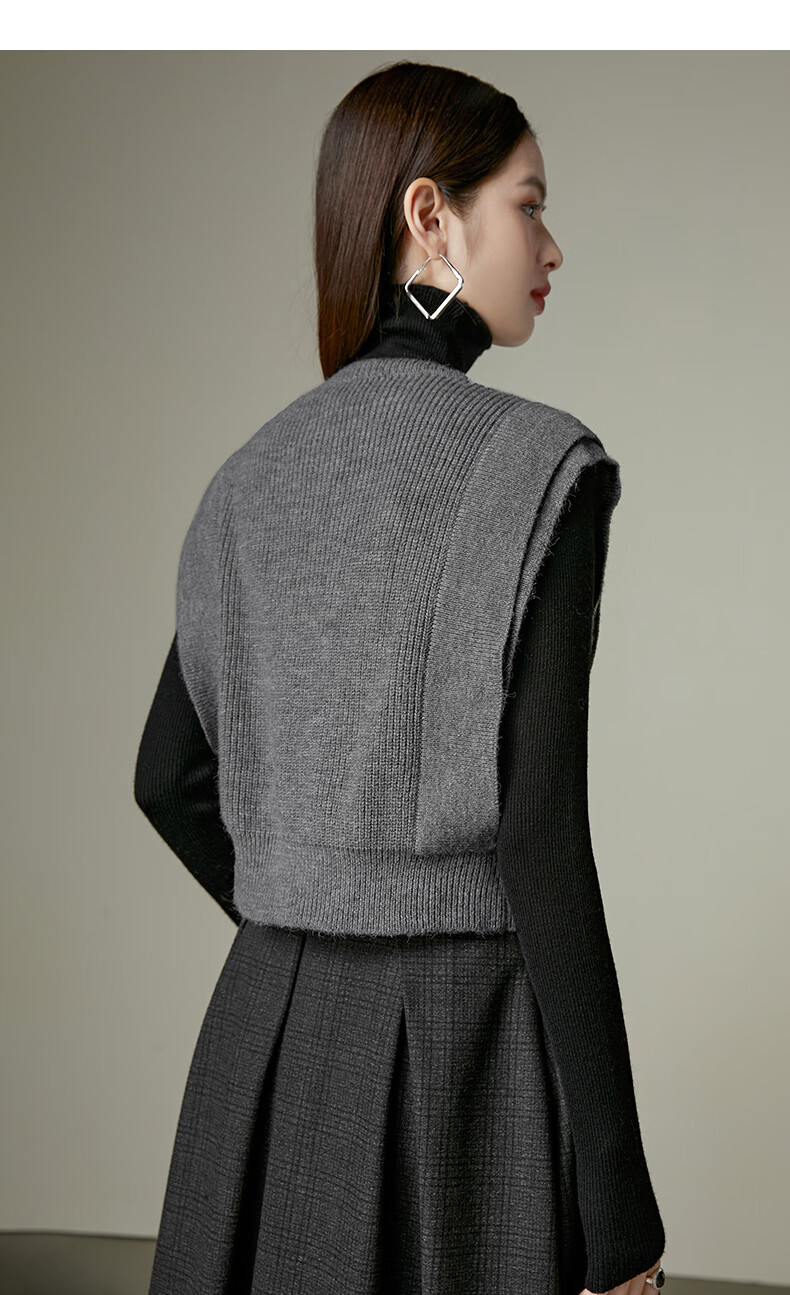 晚白【新品】2026春款法式慵懒风上衣舒适百搭格雷灰气质针织马甲女 灰色 S