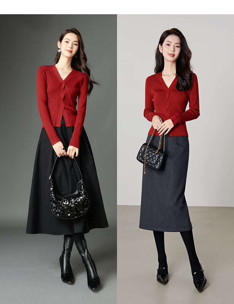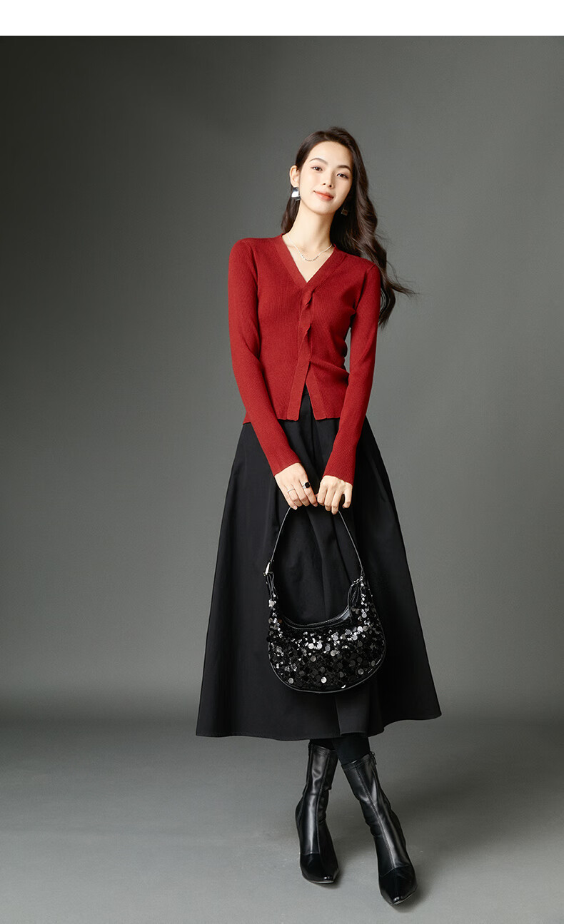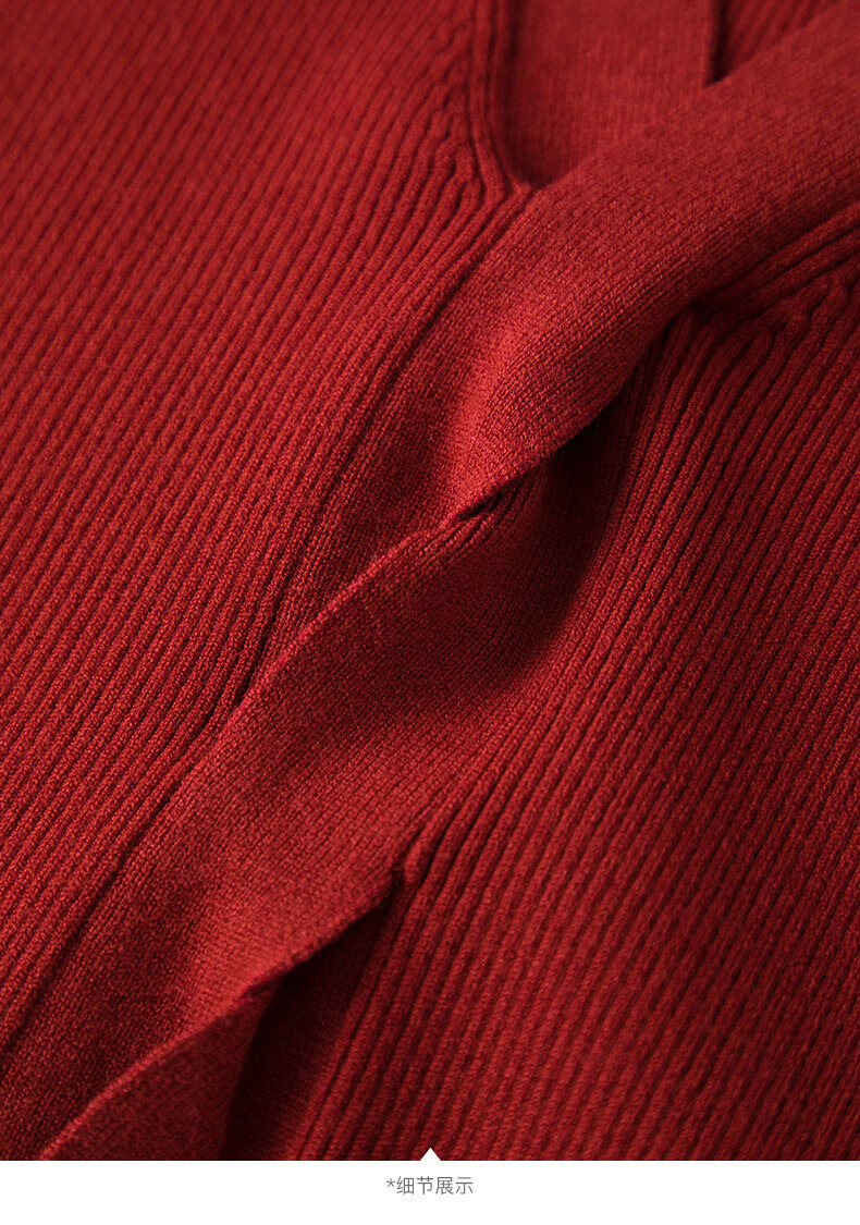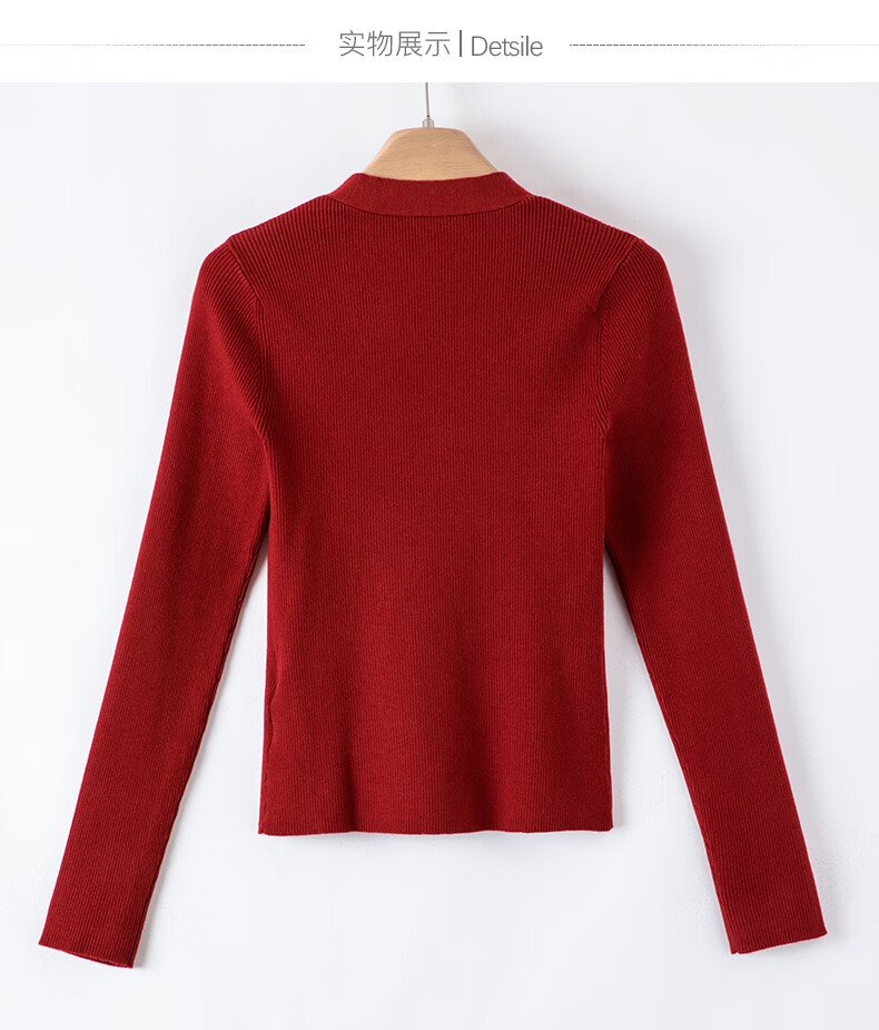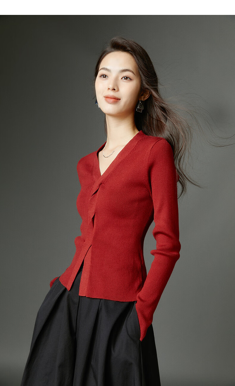 晚白【新品】2026春款时尚设计感骐骥红毛衣V领显瘦套头针织衫 红色 L