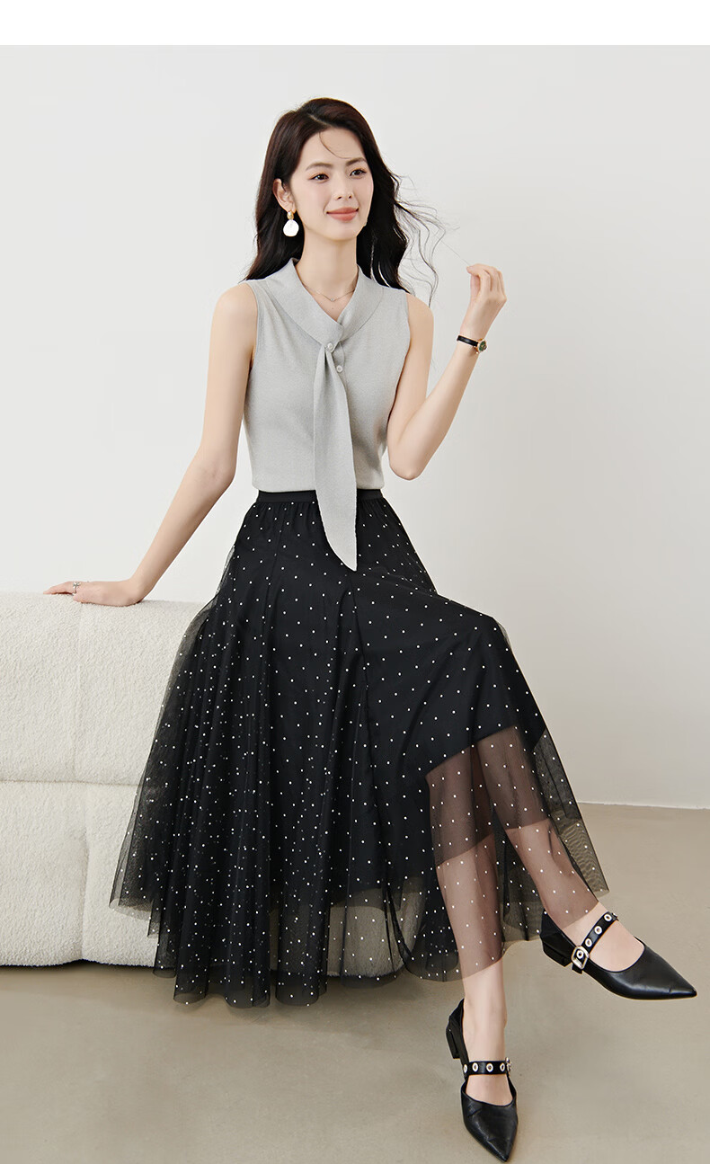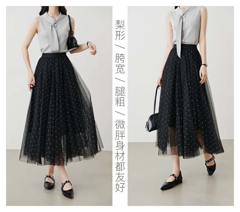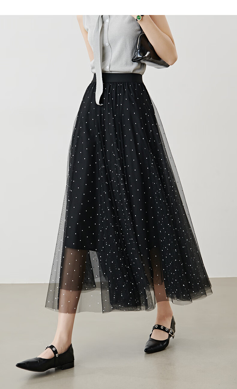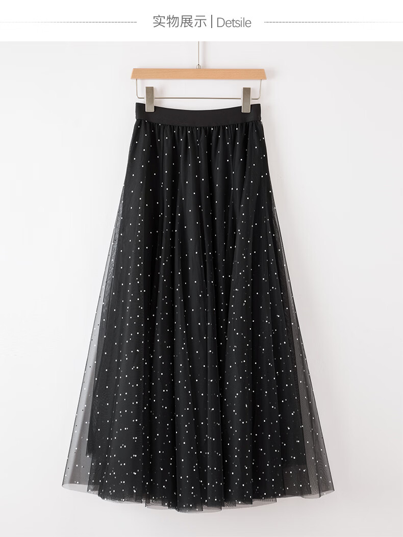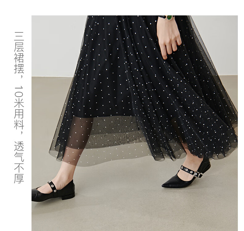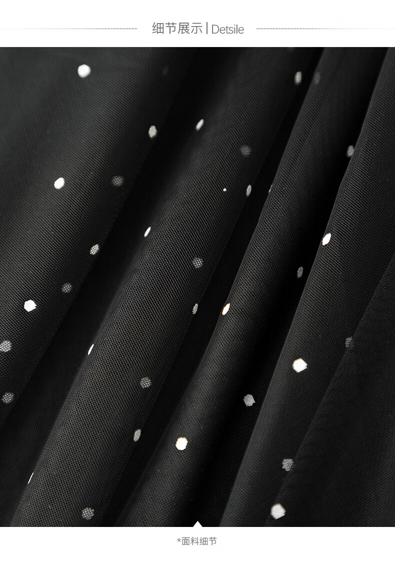 晚白2026年春款复古港风小波点层次感网纱半裙飘逸透气大摆半身裙 黑色 S