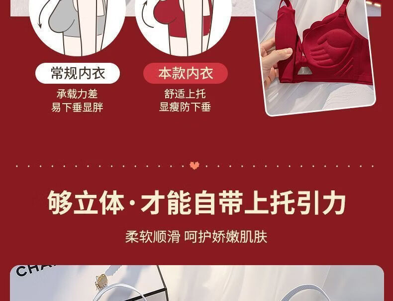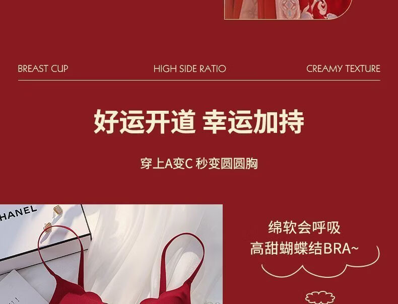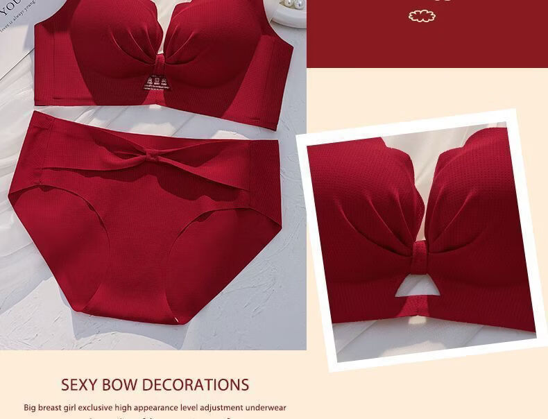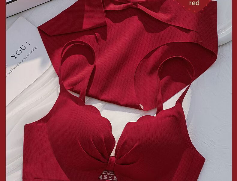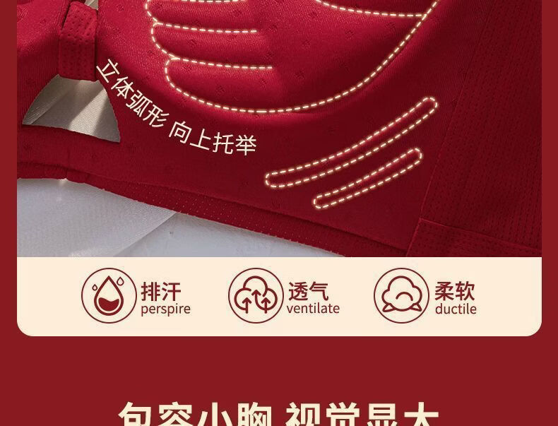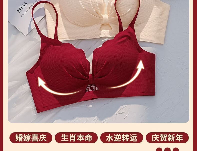 本命年套装红色内衣女小胸聚拢结婚新娘收副乳防下垂龙年内裤文胸 黑色【套装】 85A 38B【聚拢舒适】