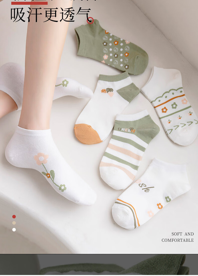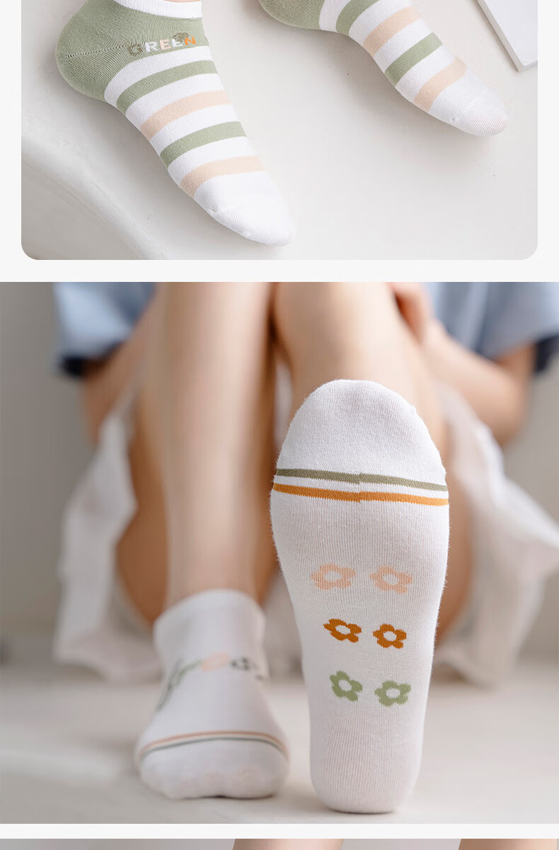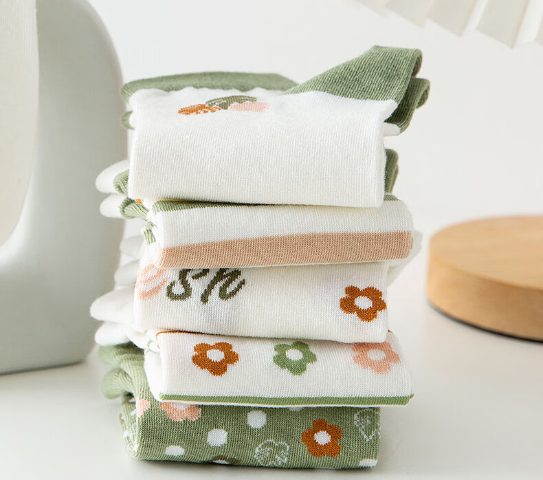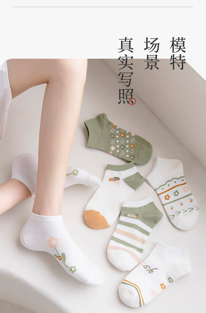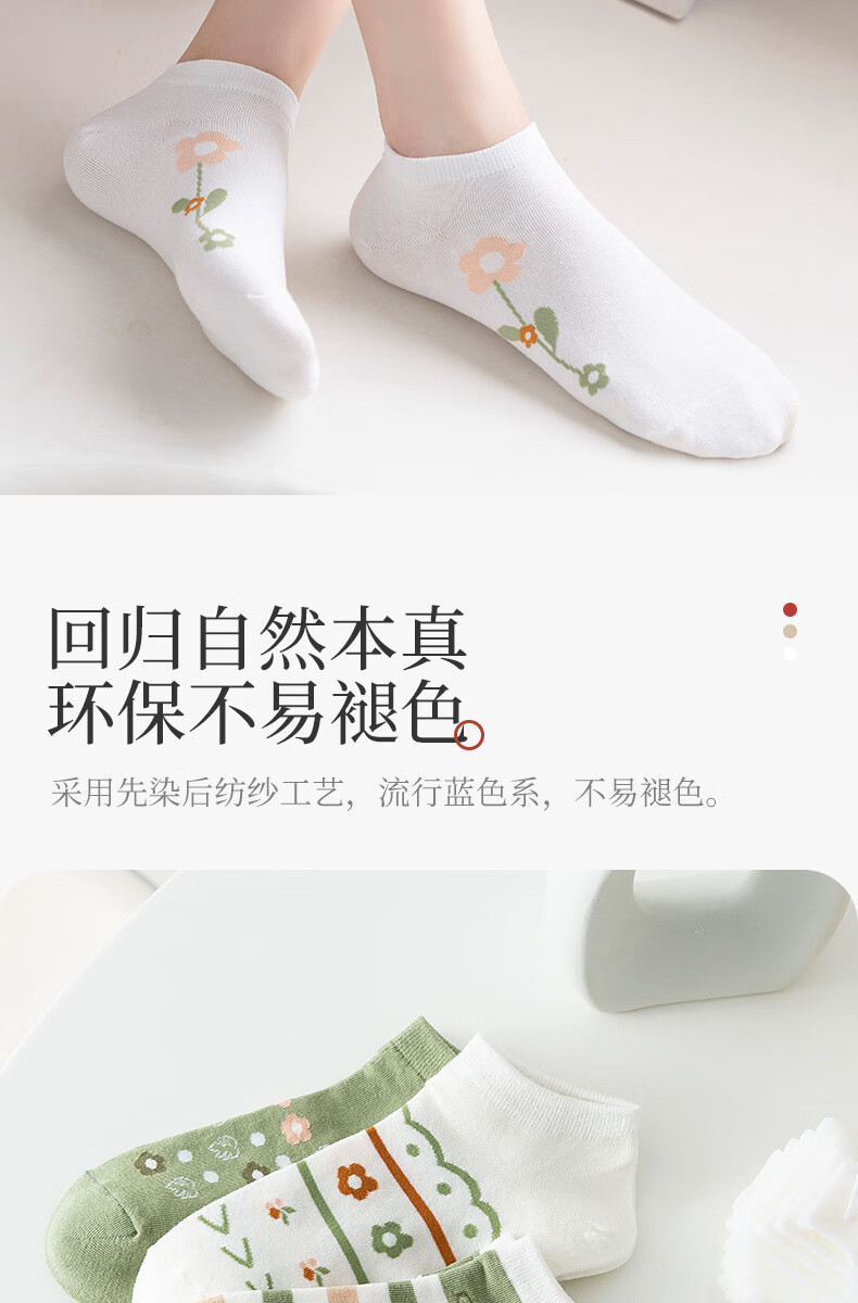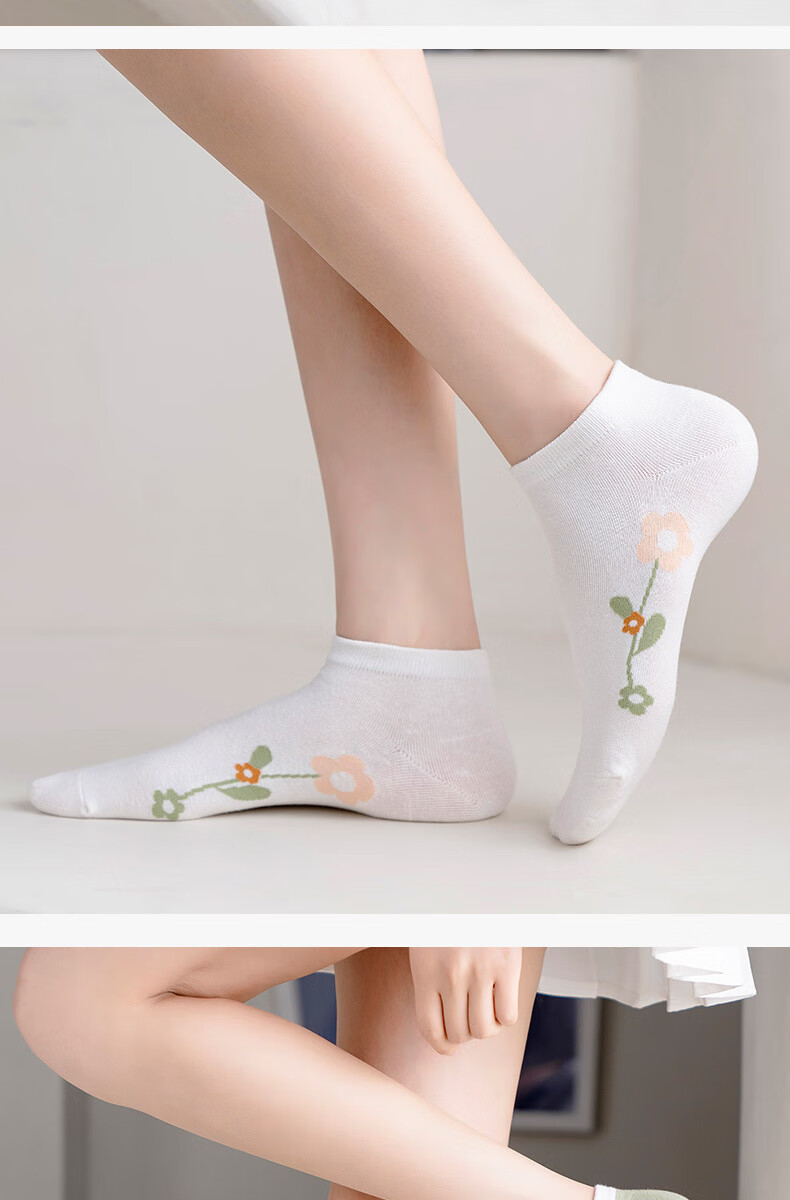 米大爷袜子女春夏季短袜小花款棉袜休闲透气船袜小清新潮流浅口袜 小花款女短袜5双