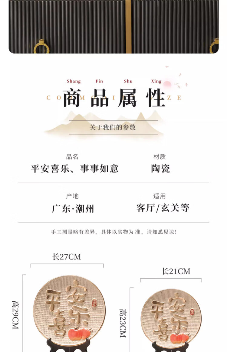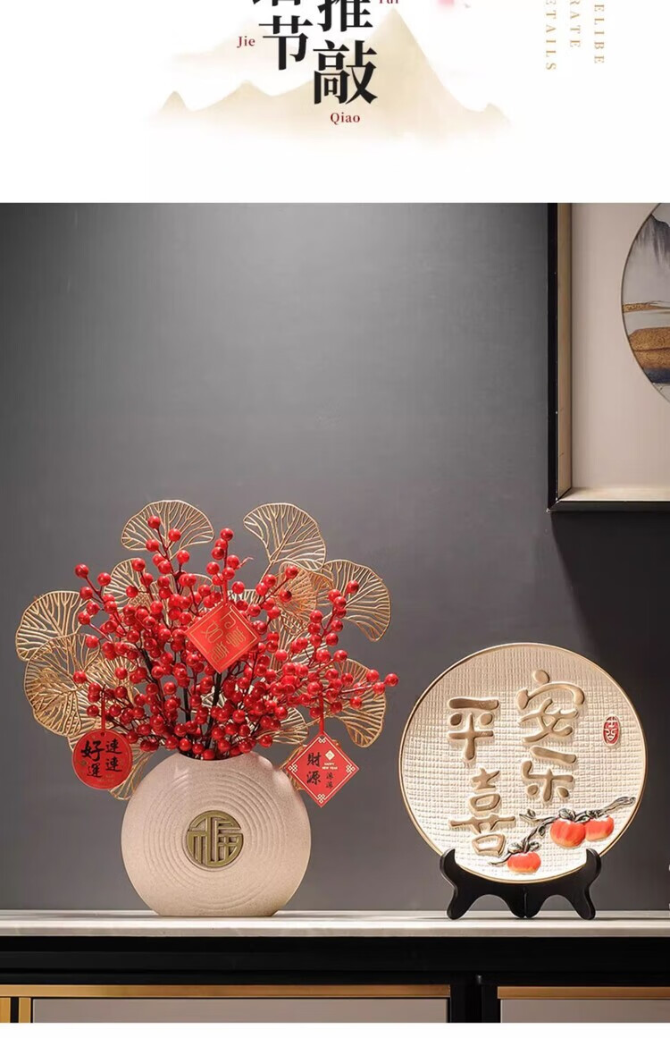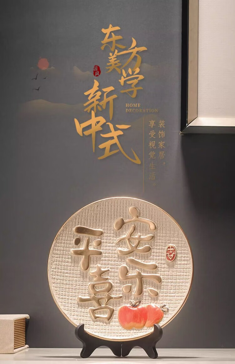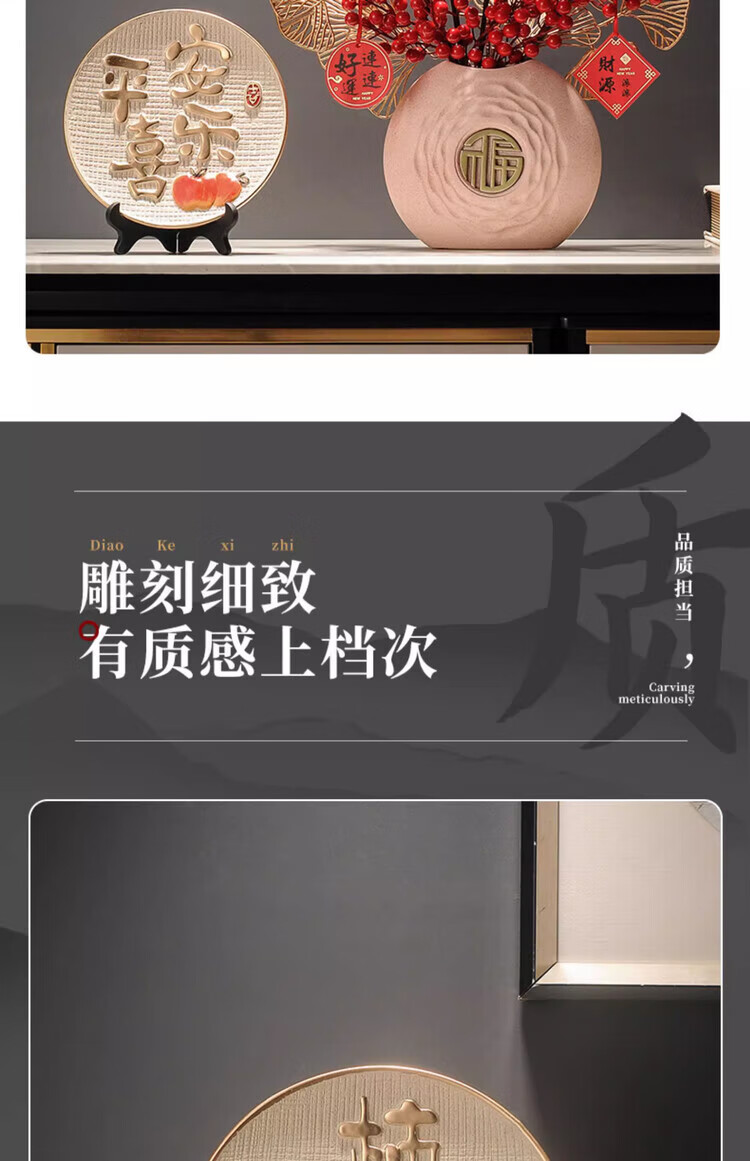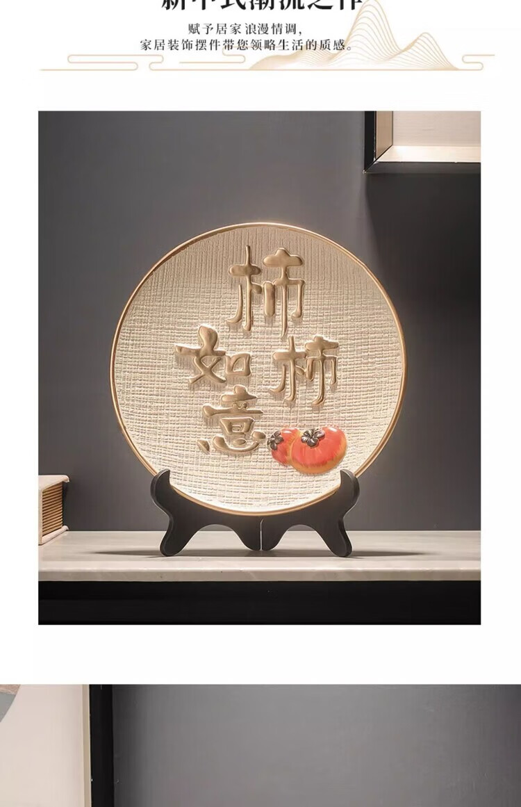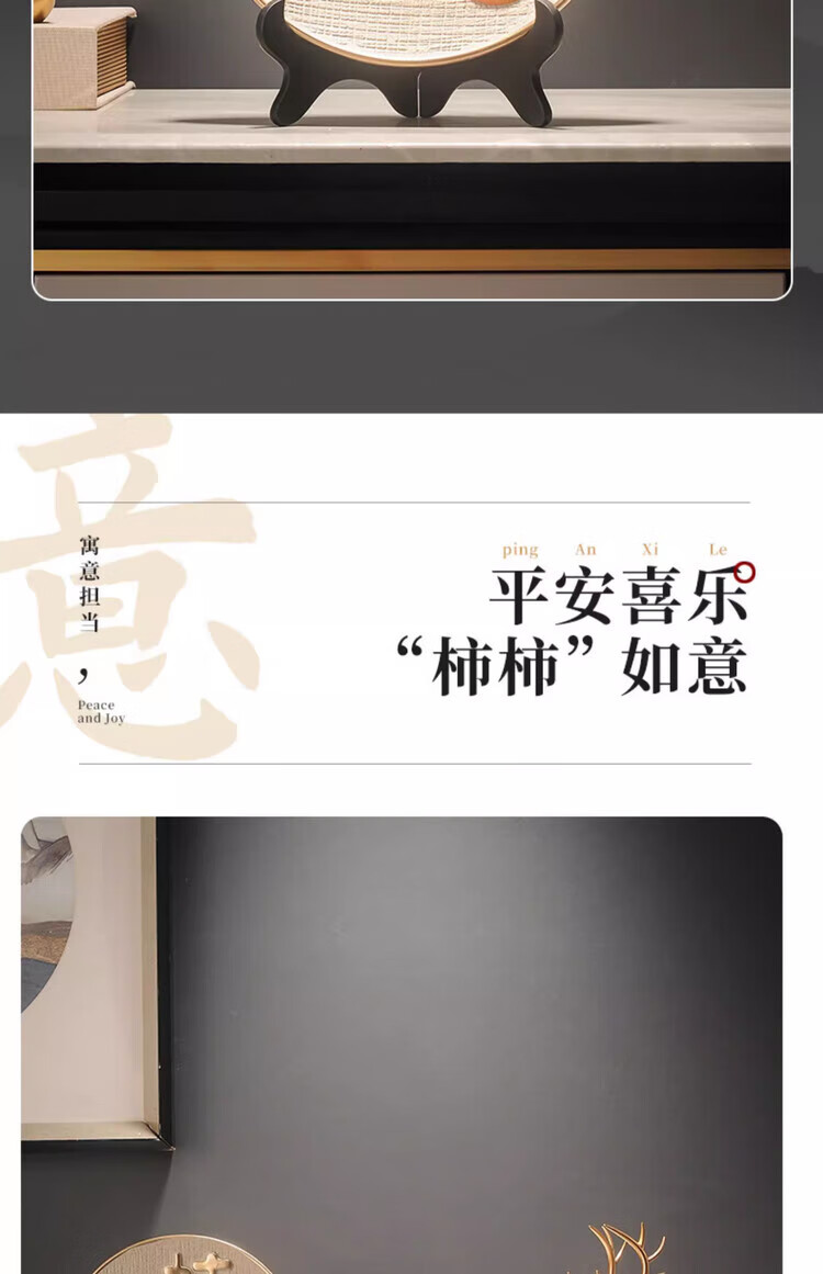OYKTN新中式平安喜乐摆件万事如意乔迁摆件家居玄关电视柜新居礼品摆件 【大号】柿柿如意摆件+赠底座