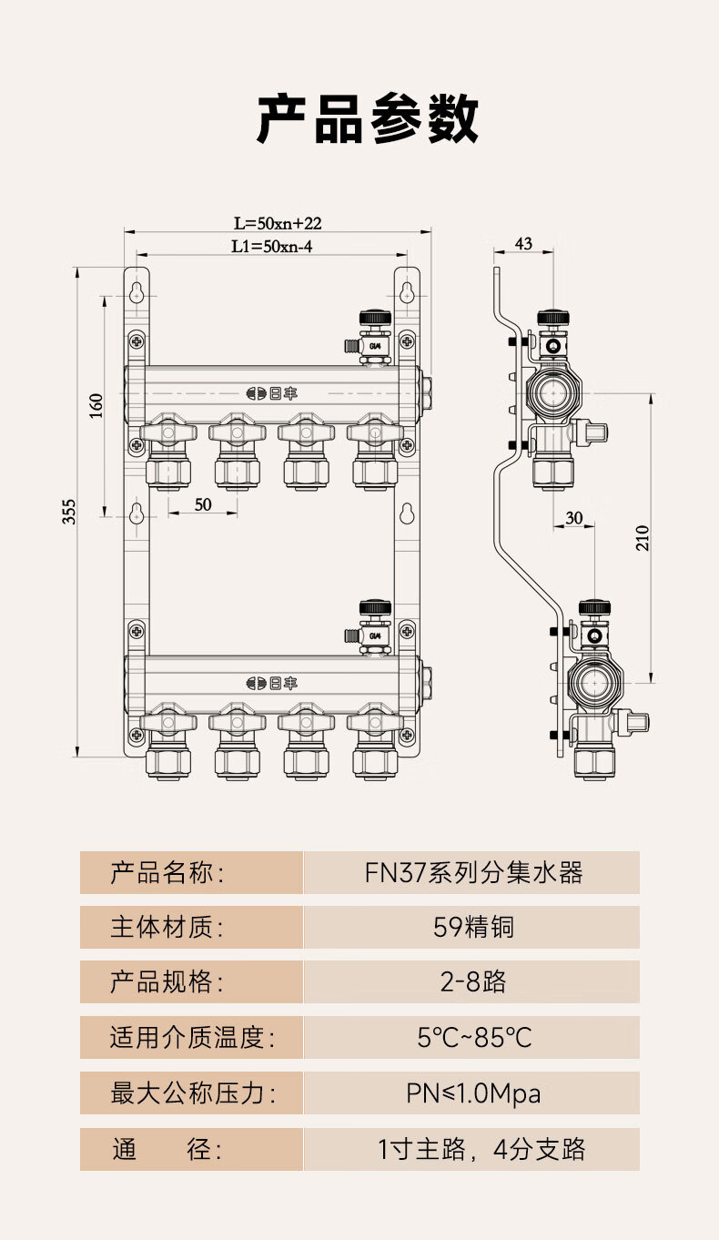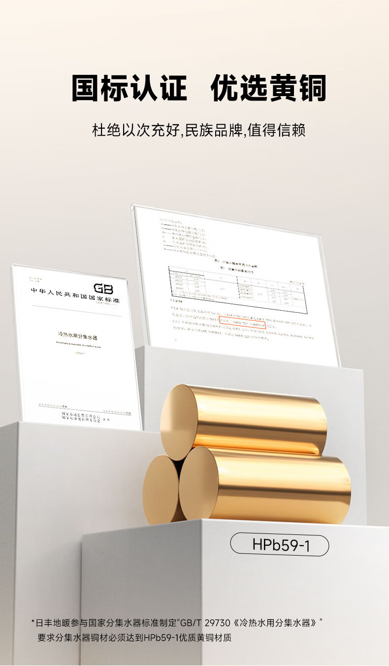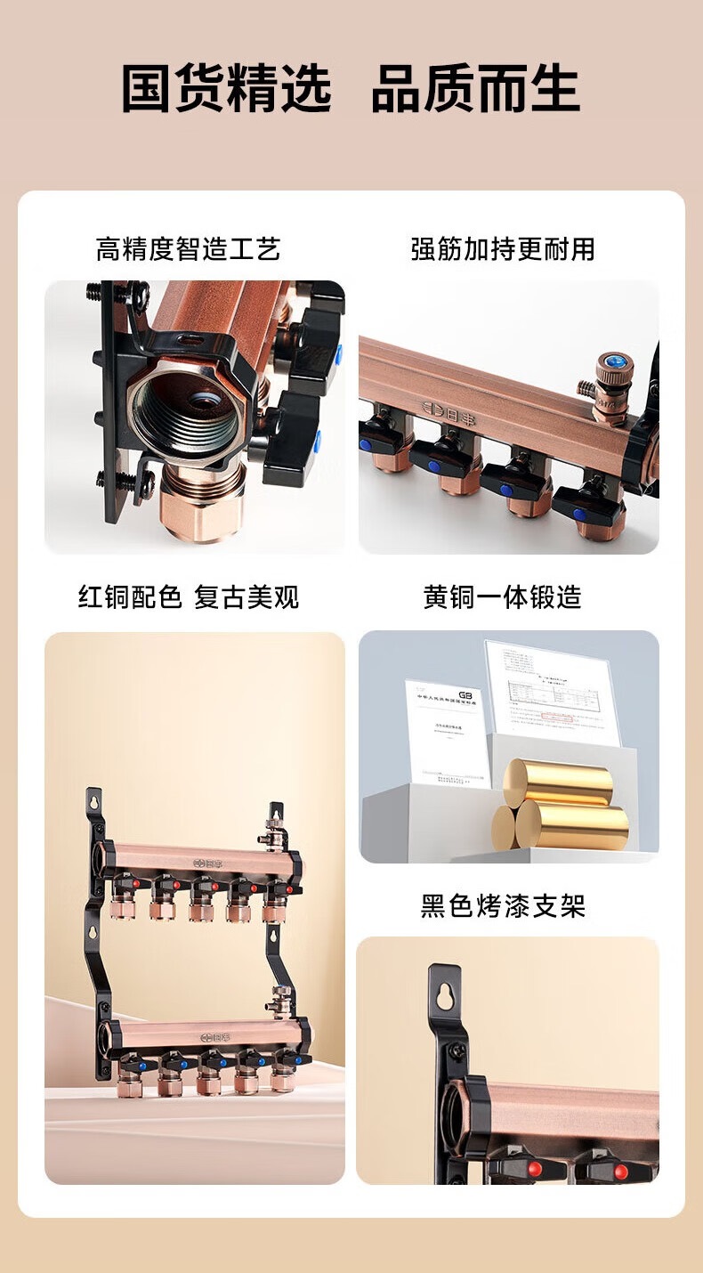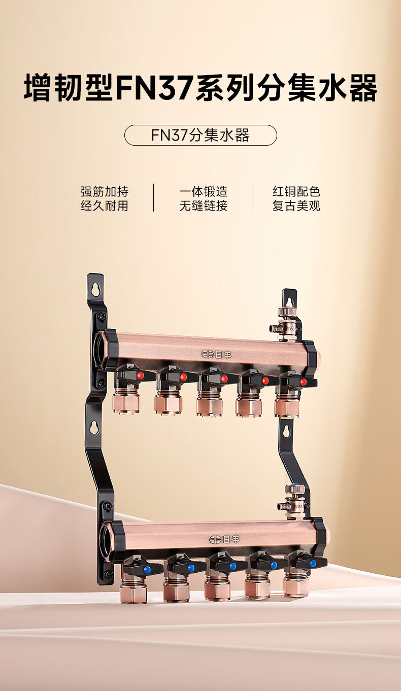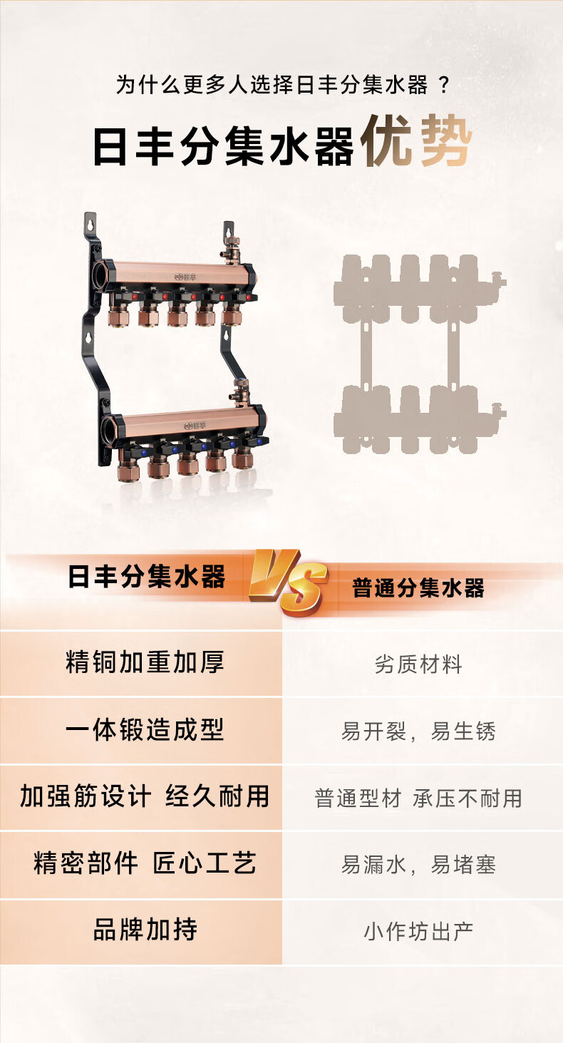 日丰地暖地热集分水器精铜增韧型耐用加厚款 加厚黄铜分水器【4路】
