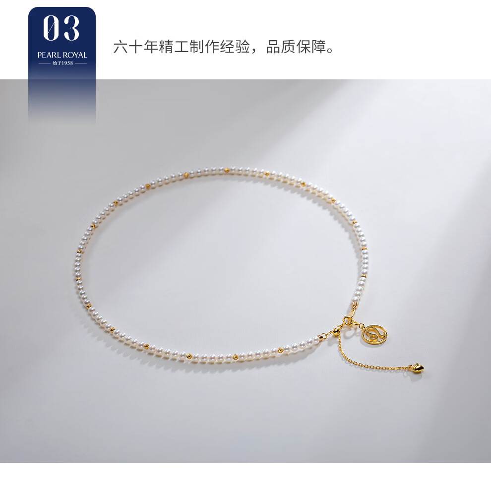 南珠宫绾华925银双层海水珍珠手链强光泽圆形年轻款百搭新年礼物送老婆 金色款 5.5-6.0mm