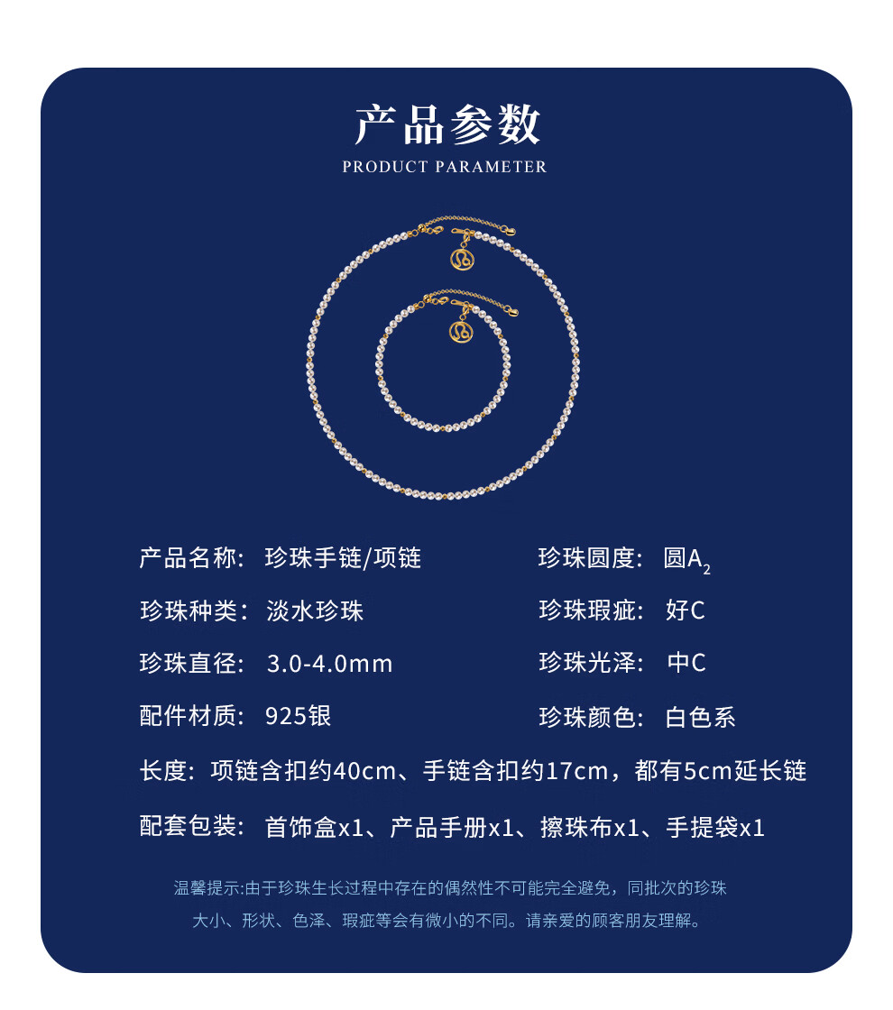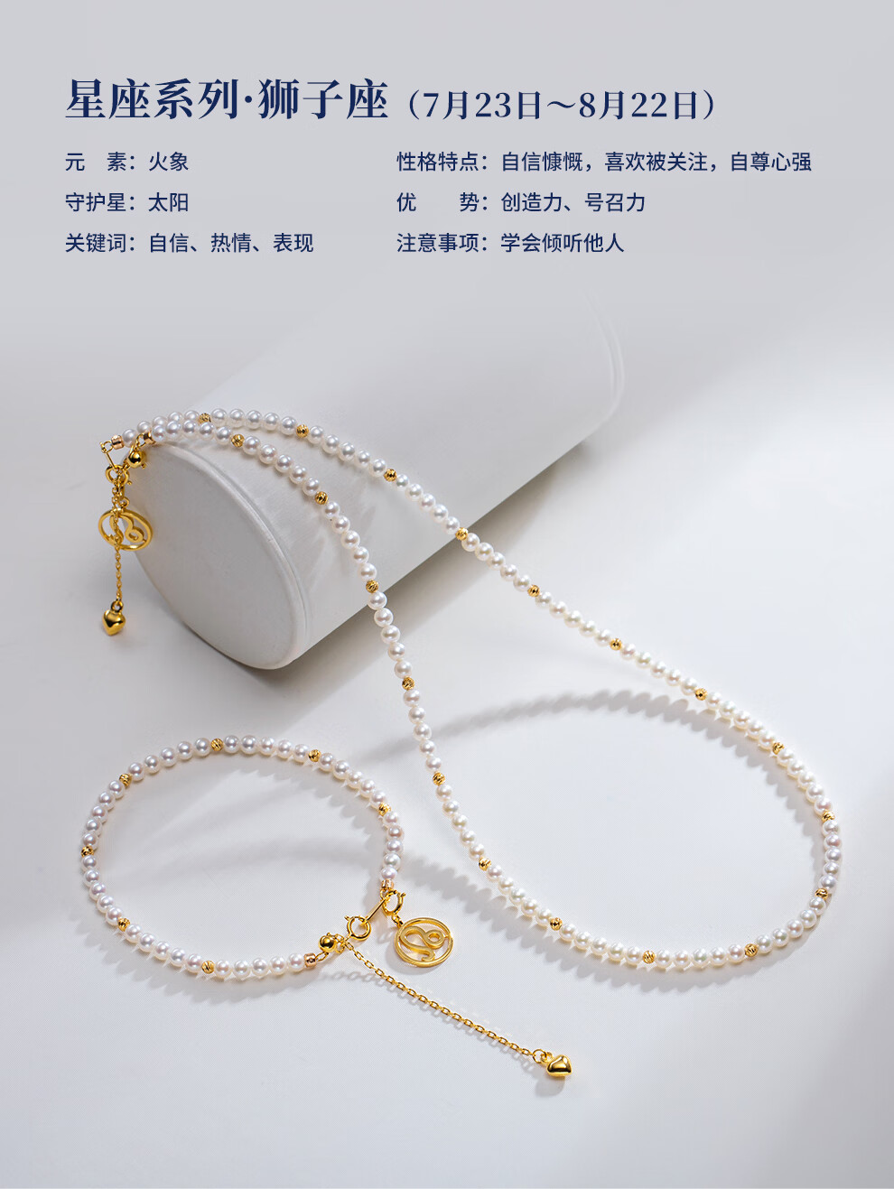 南珠宫星座系列·狮子座淡水珍珠项链手链套装毕业礼生日礼物送女友 珍珠手链 3.0-4.0mm