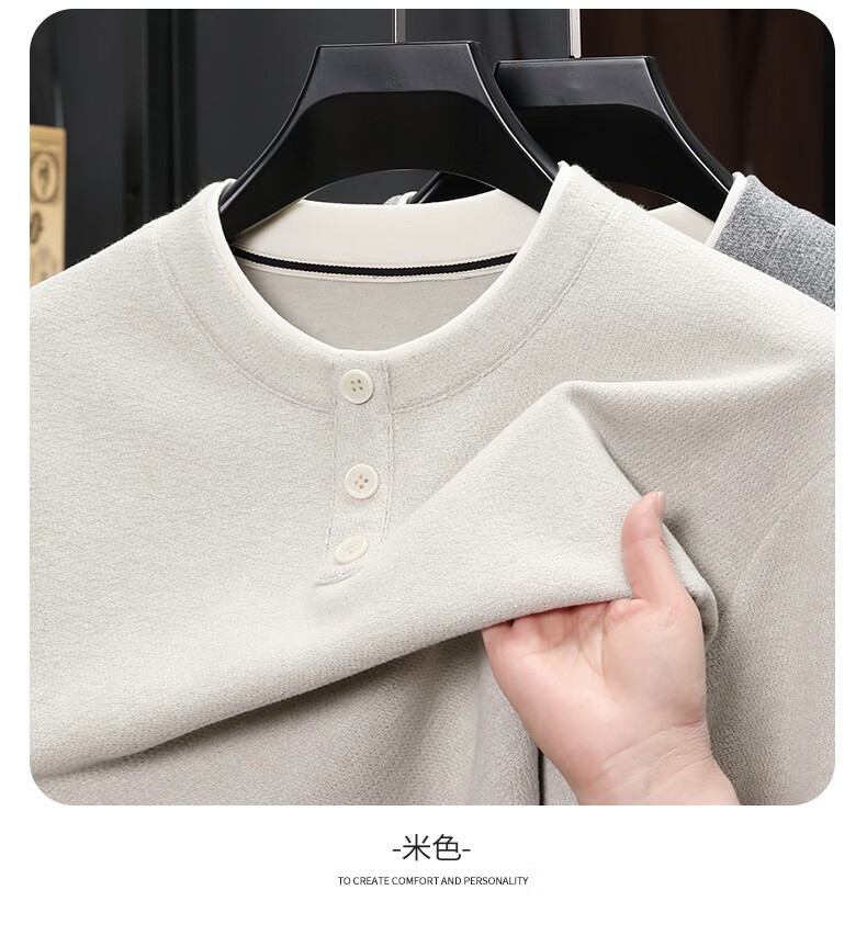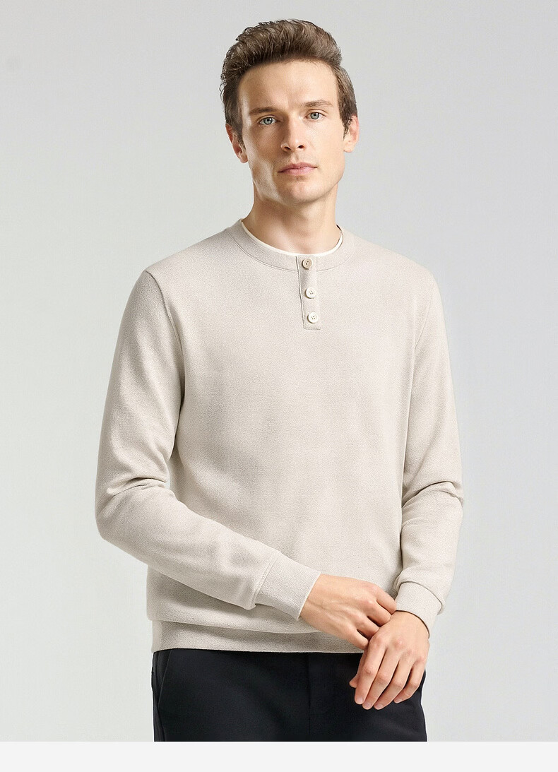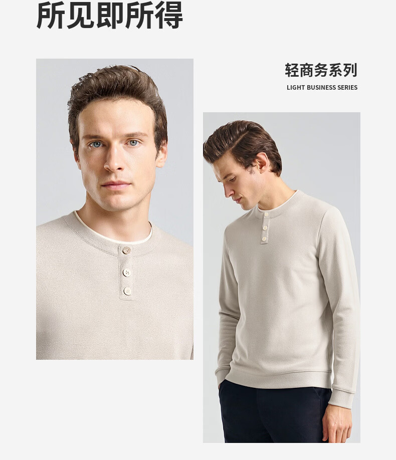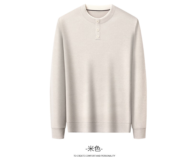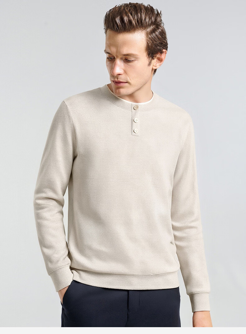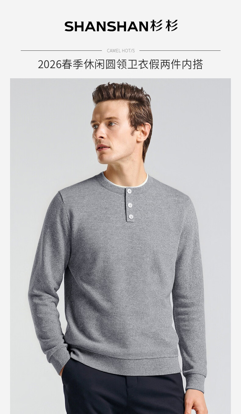 SHANSHAN杉杉长袖T恤男2026春季休闲圆领卫衣男士假两件内搭透气舒适上衣 米色 M /170