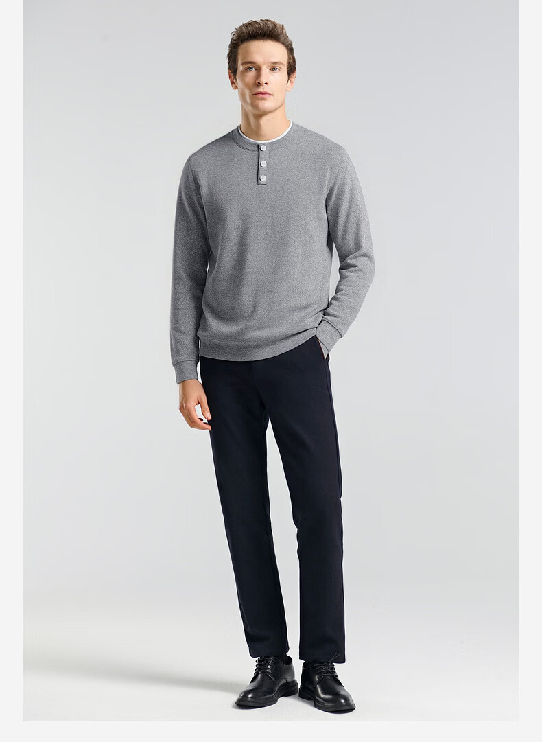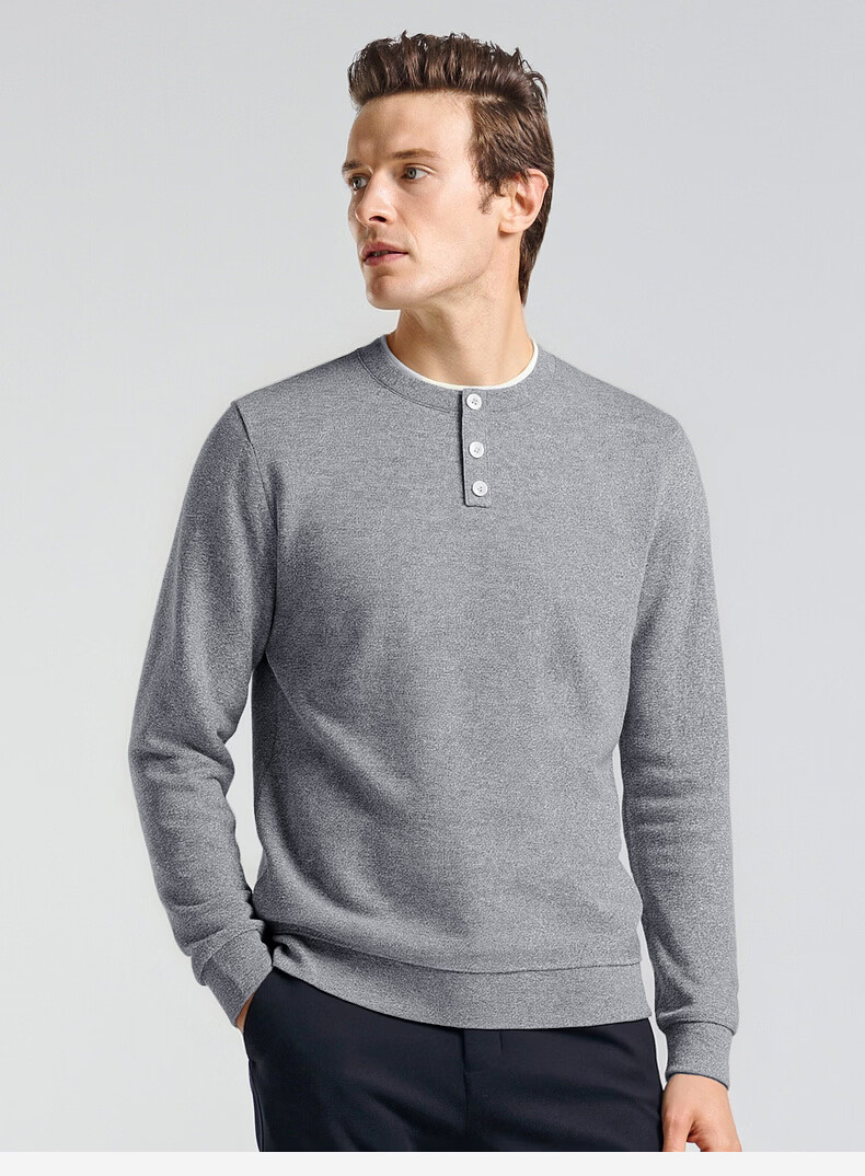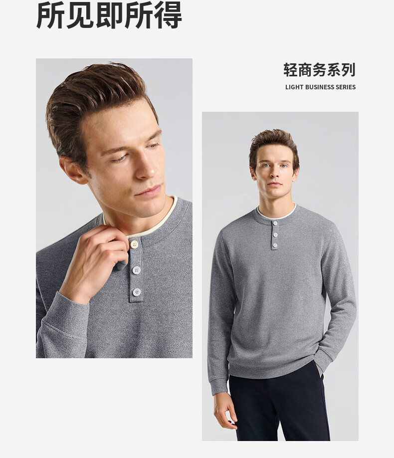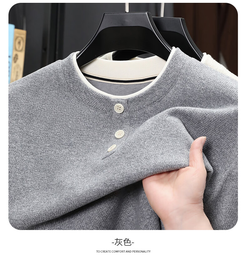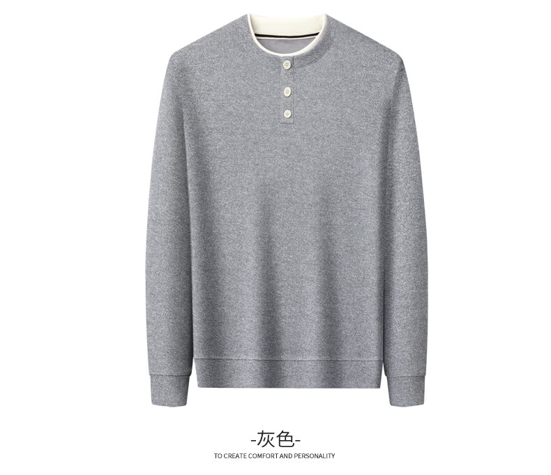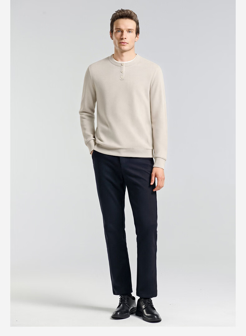 SHANSHAN杉杉长袖T恤男2026春季休闲圆领卫衣男士假两件内搭透气舒适上衣 米色 M /170