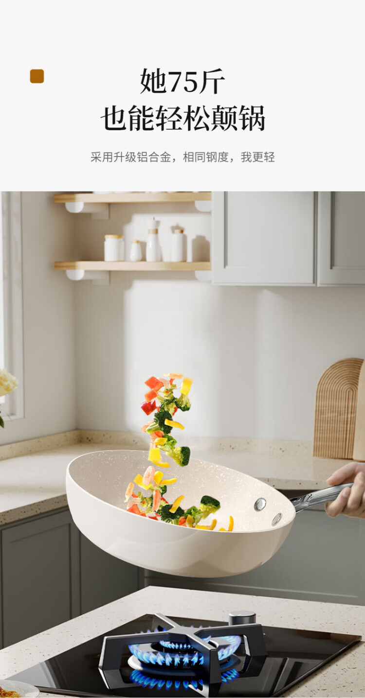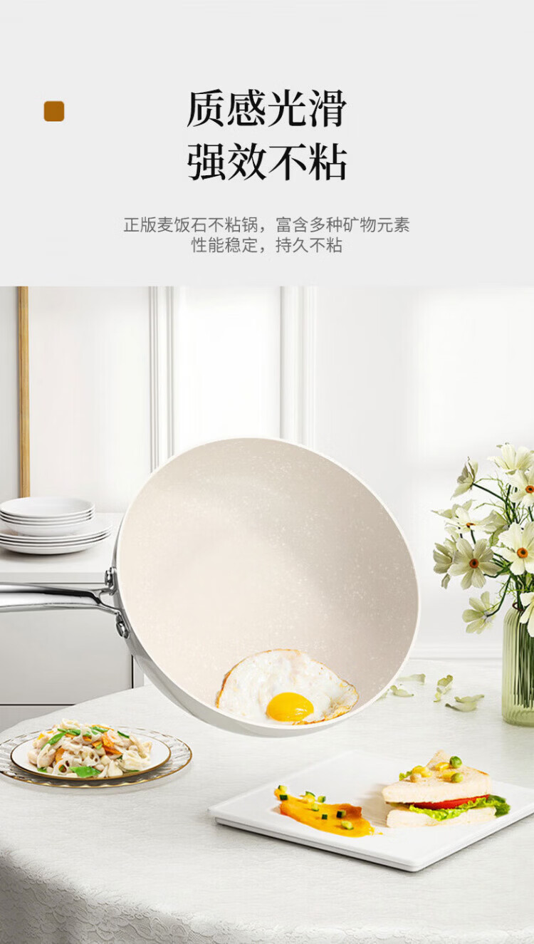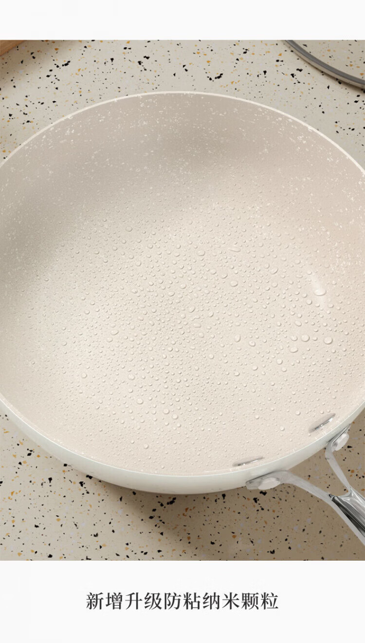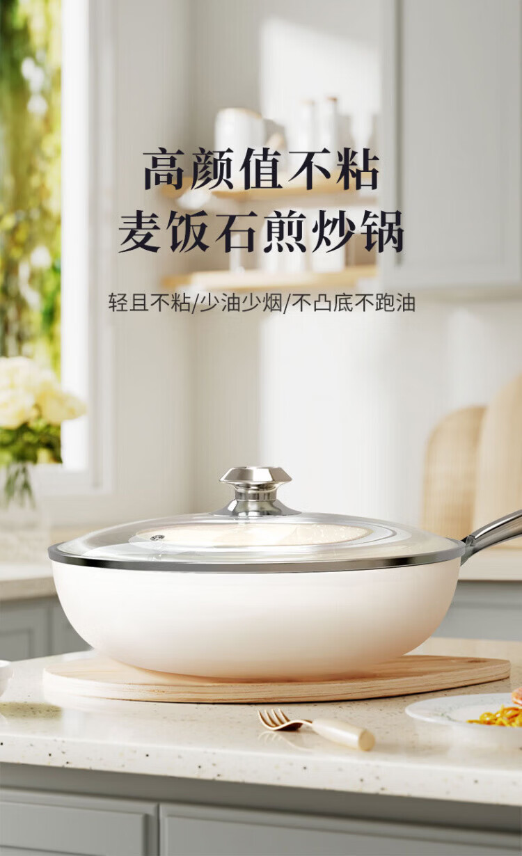OCMOGO日本品牌炒锅家用不粘锅贝瓷炒菜锅麦饭石平底深煎锅电磁燃气灶通 淡绿色炒锅【带盖】 28cm